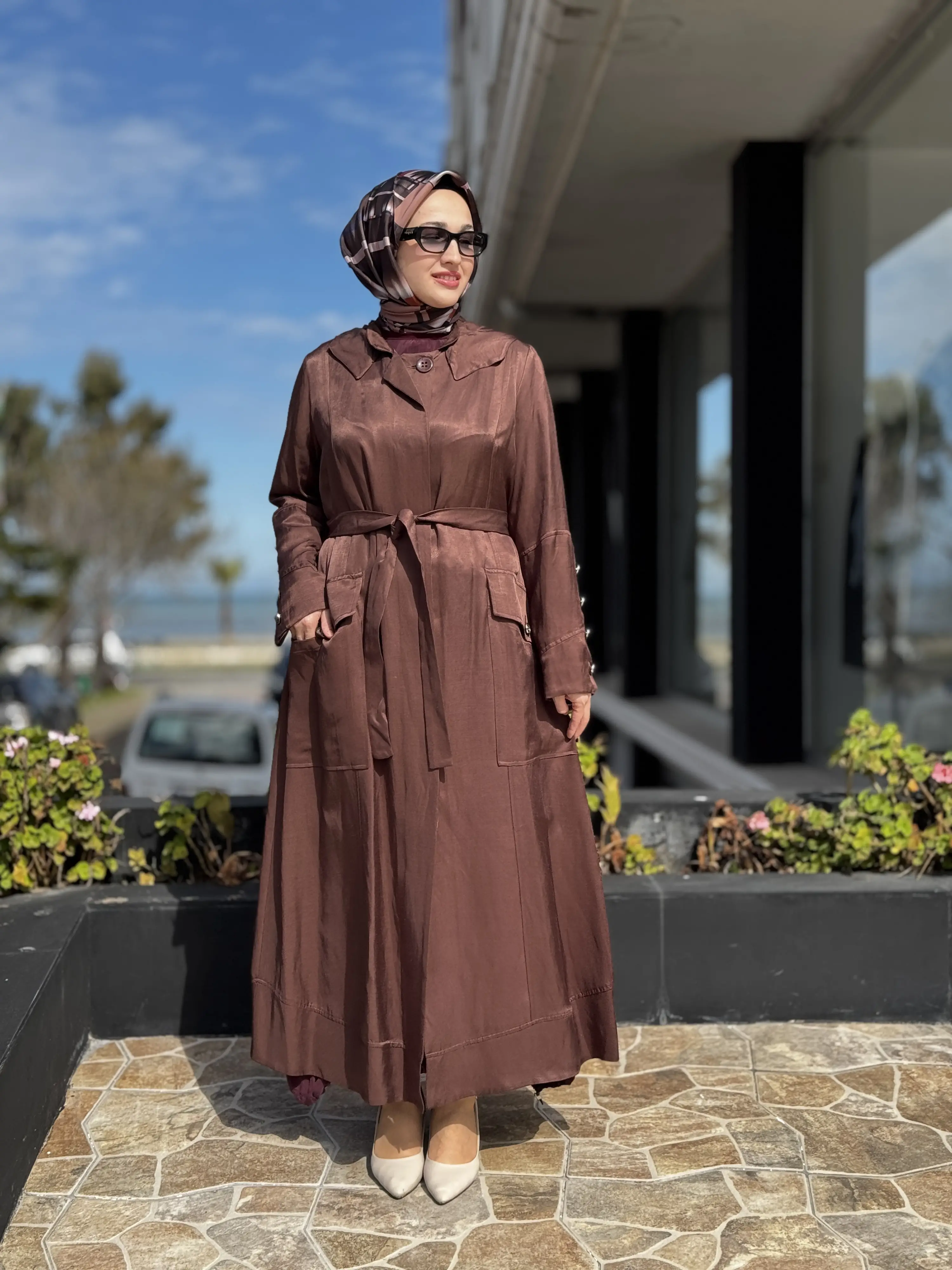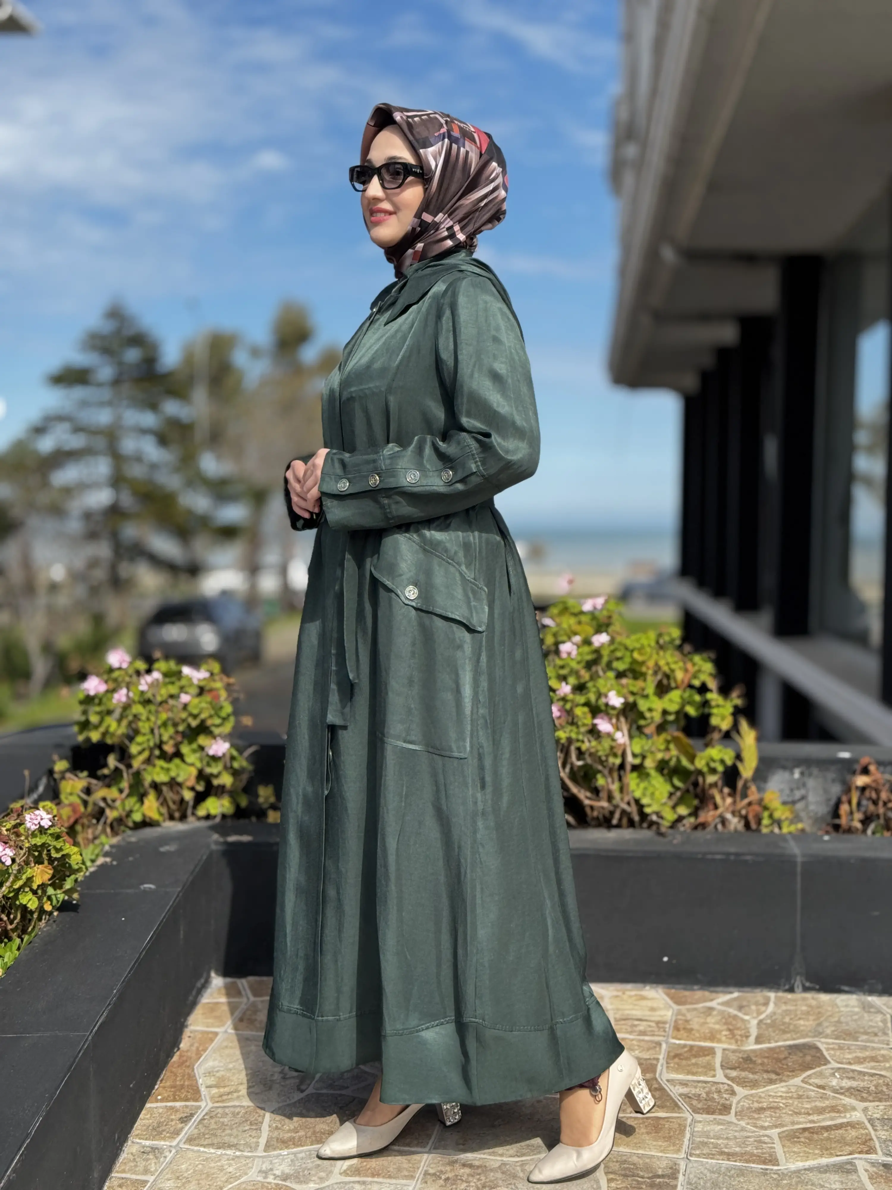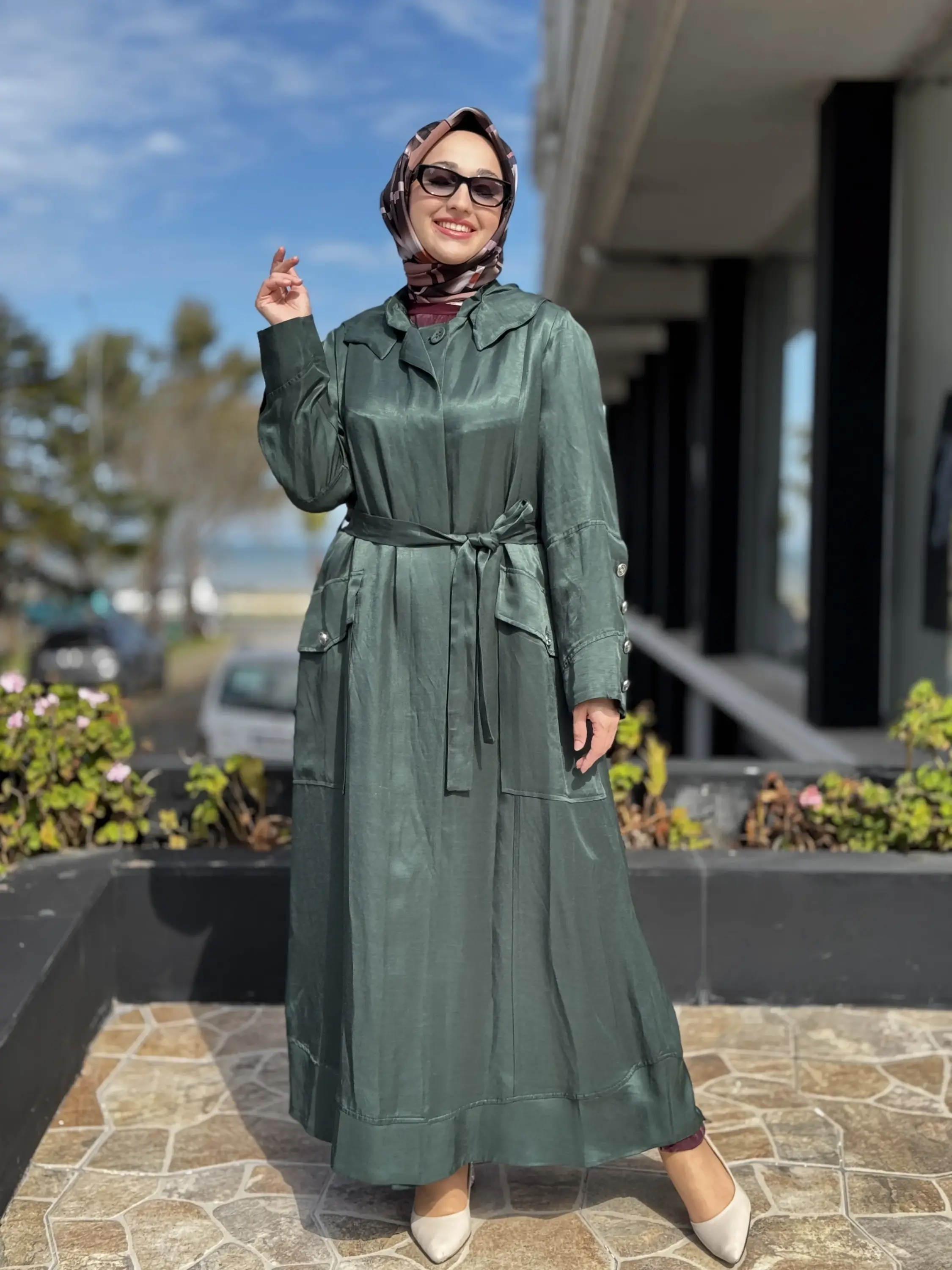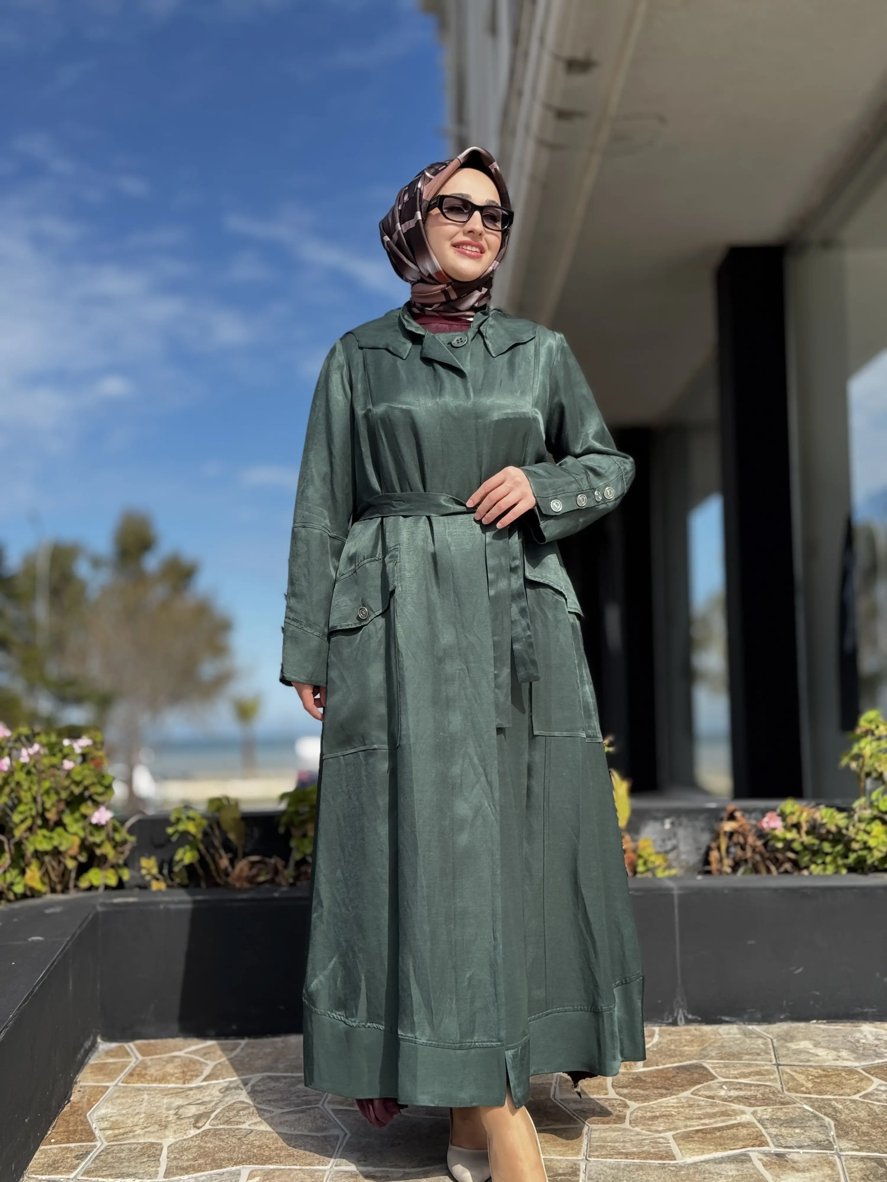 KUŞAKLIDIR VE KOLU METALİK DÜĞME DETAYLIDIR