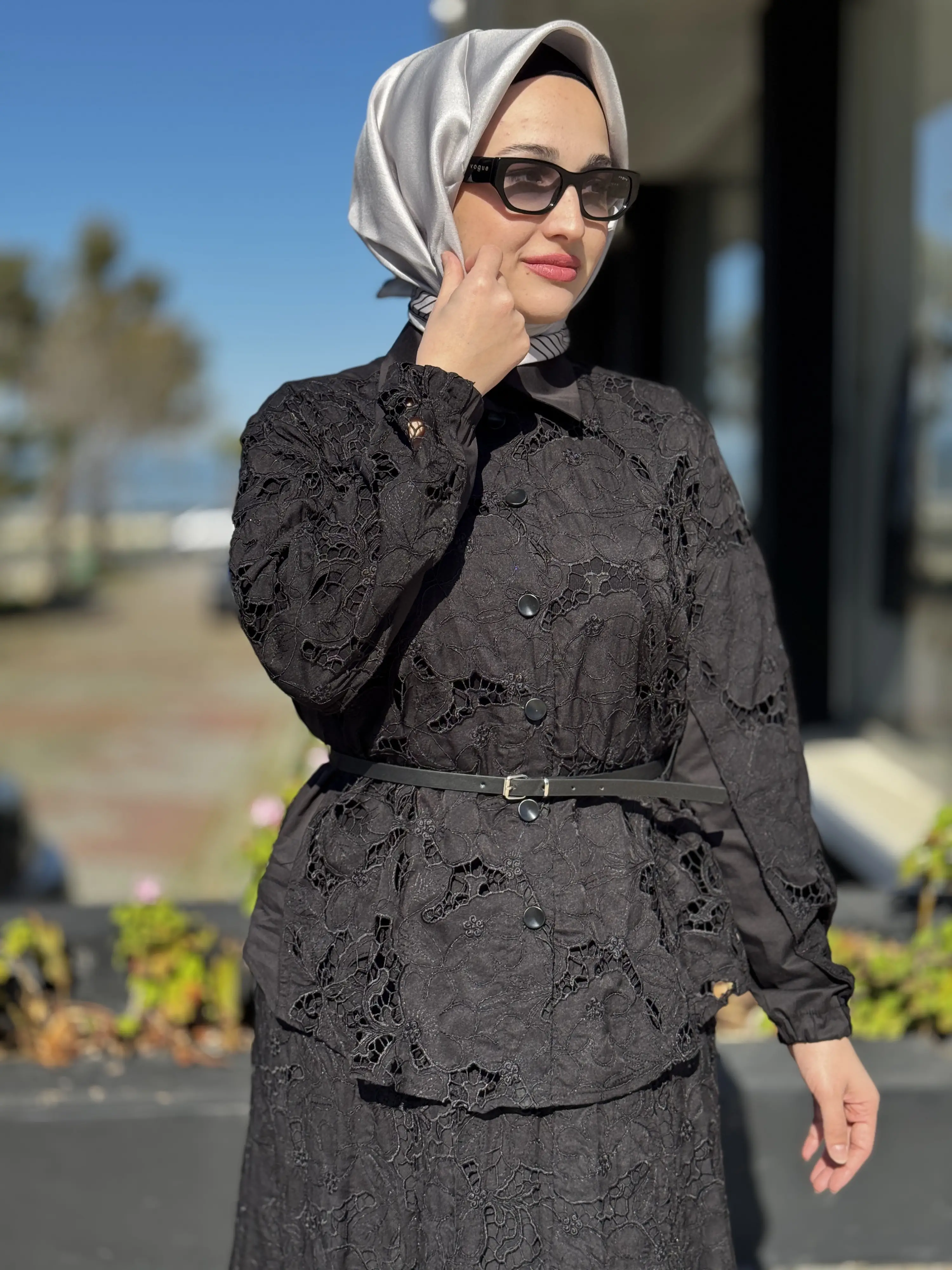 ÜRÜN ŞIK GÜPÜRLÜ CEKET BLUZ ETEK TAKIMDIR