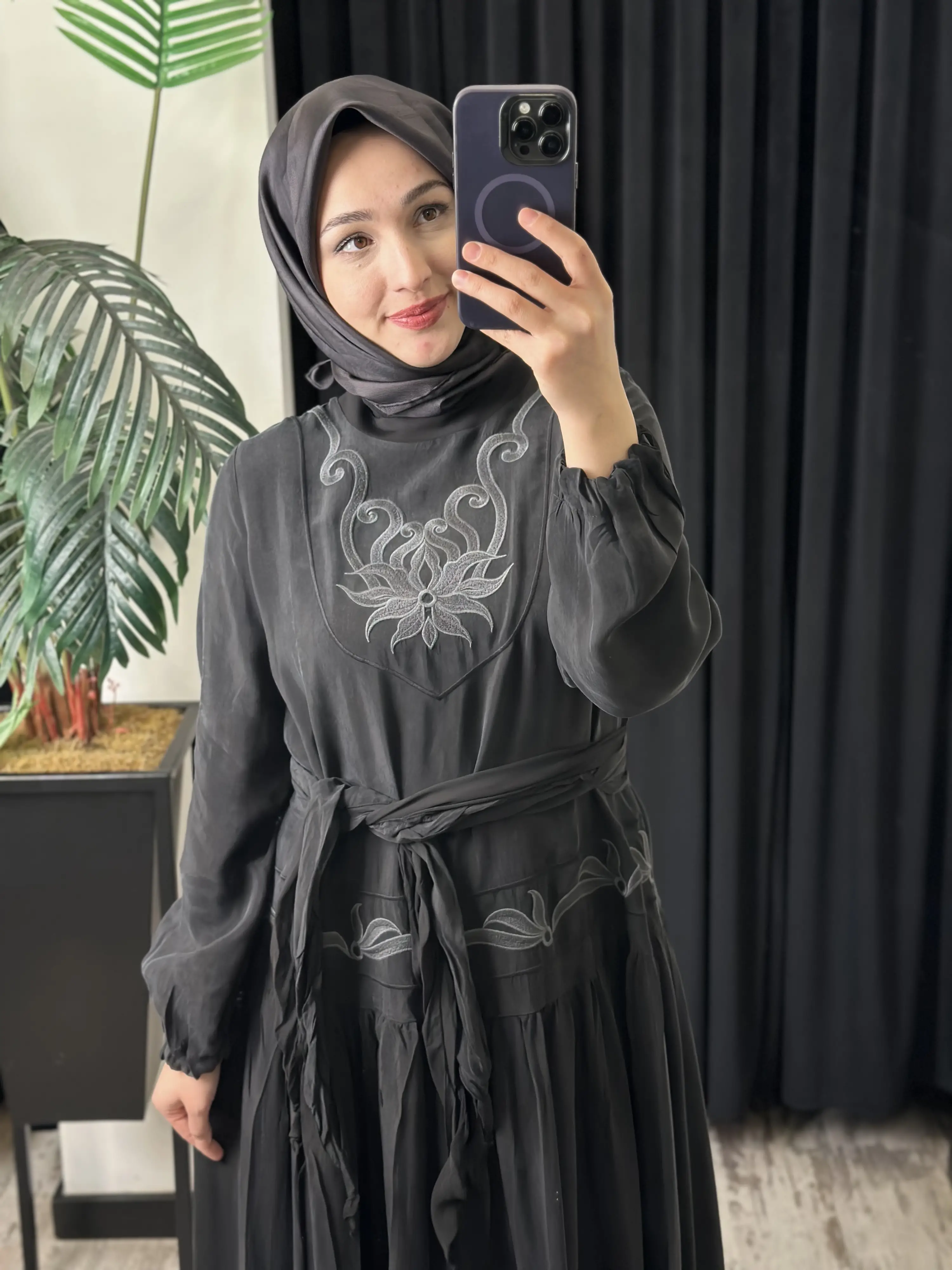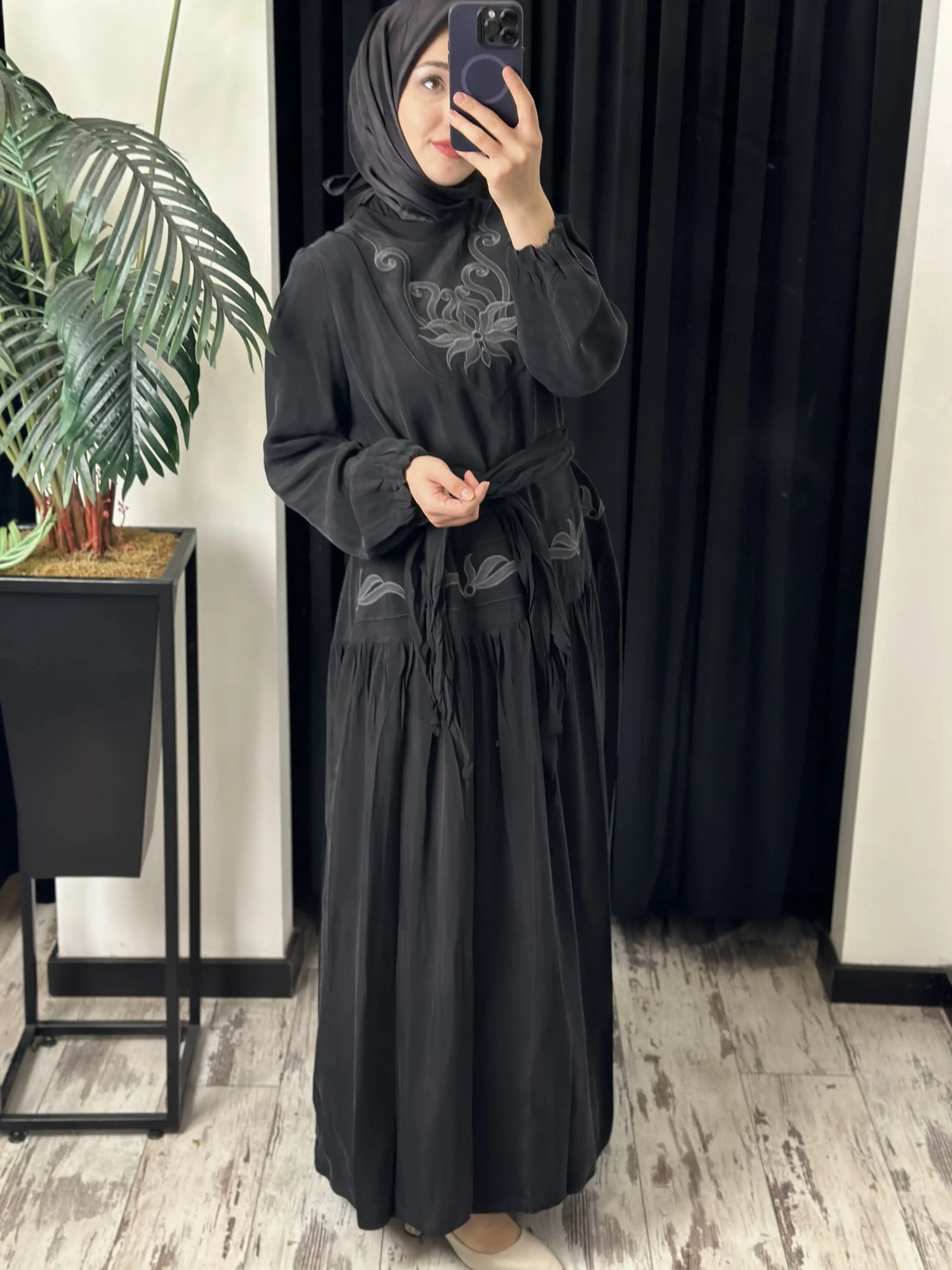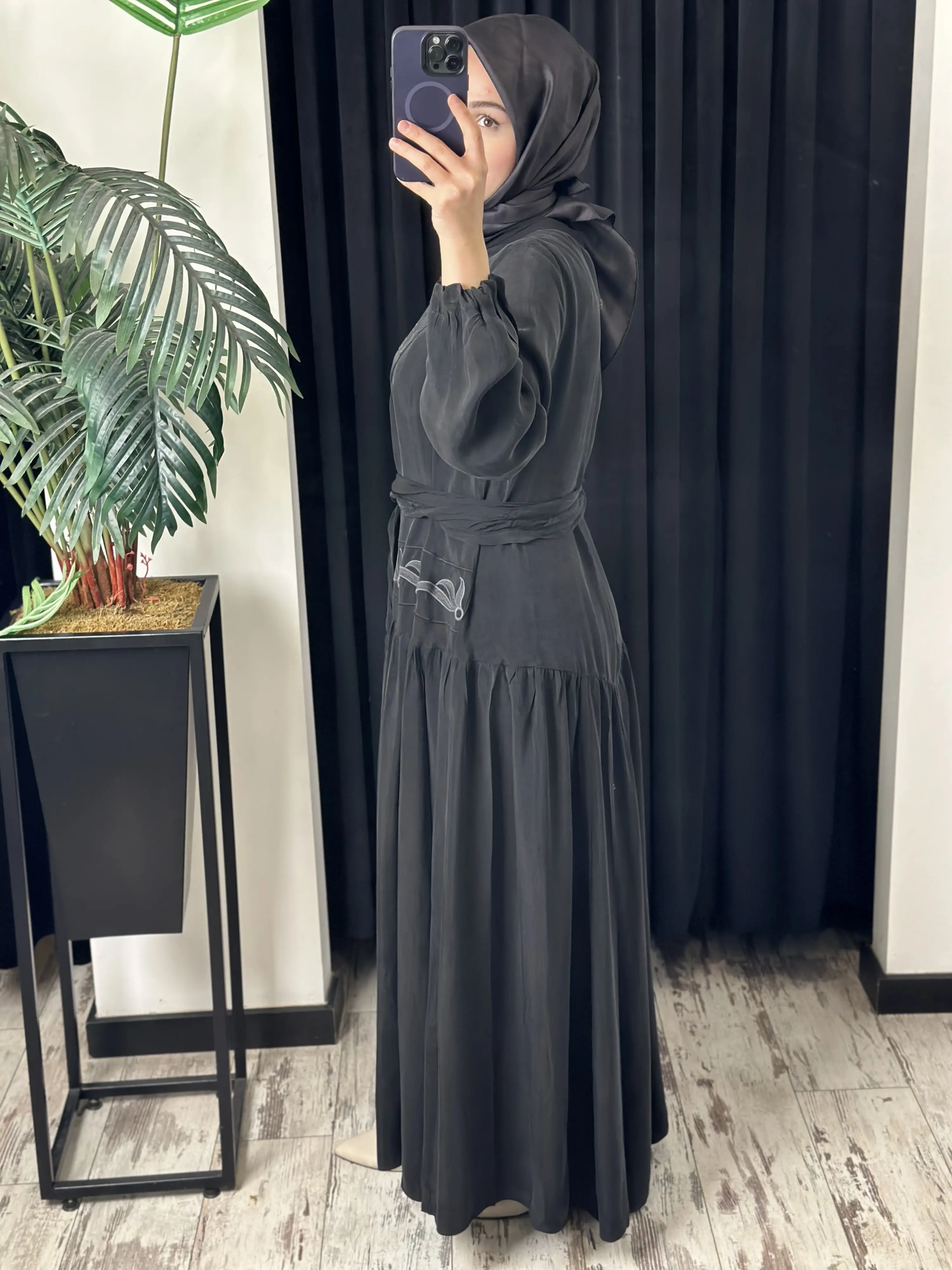 ÜRÜN NAKIŞ DETAYLI KUPRA İPEK ELBİSEDİR