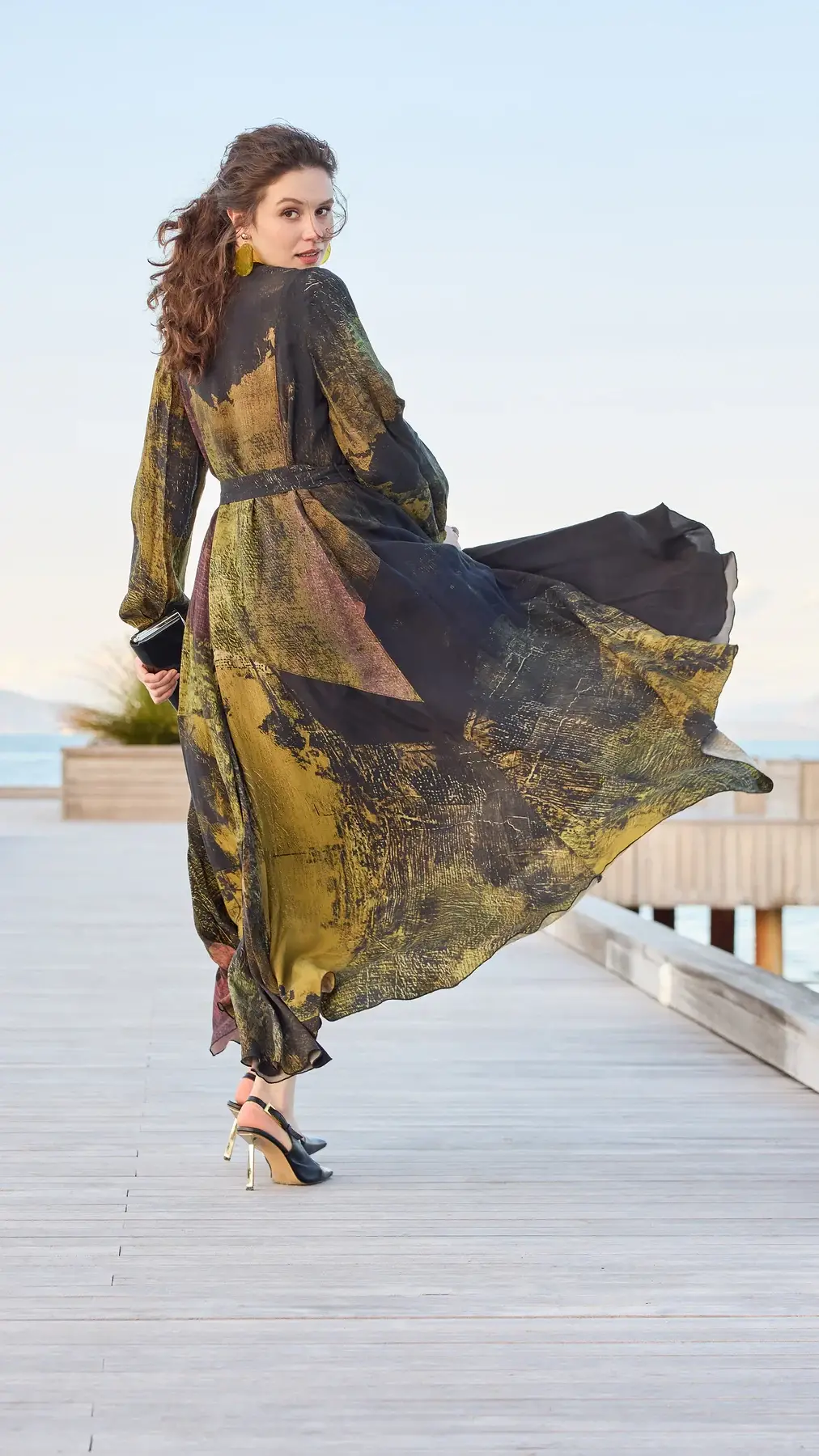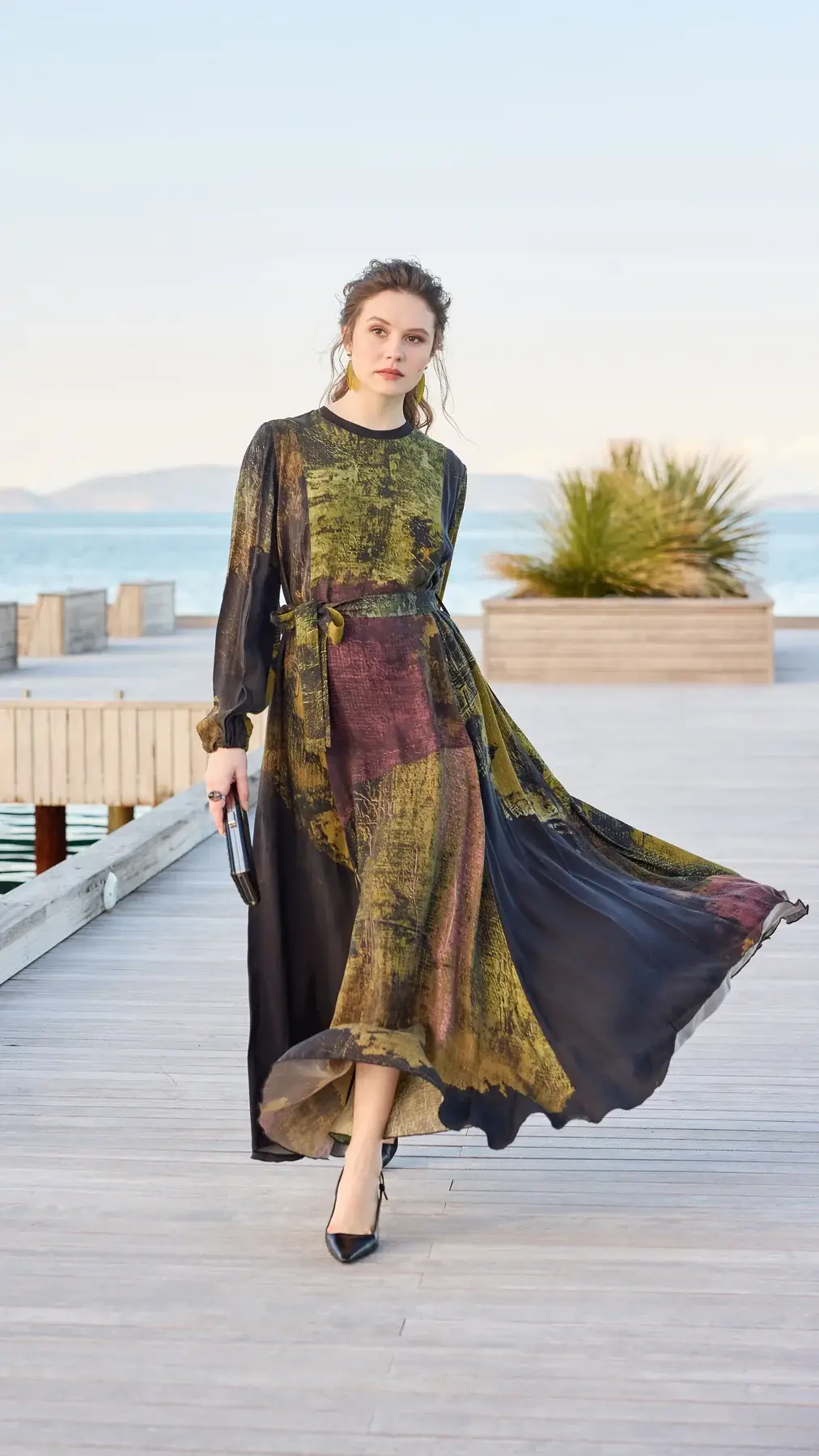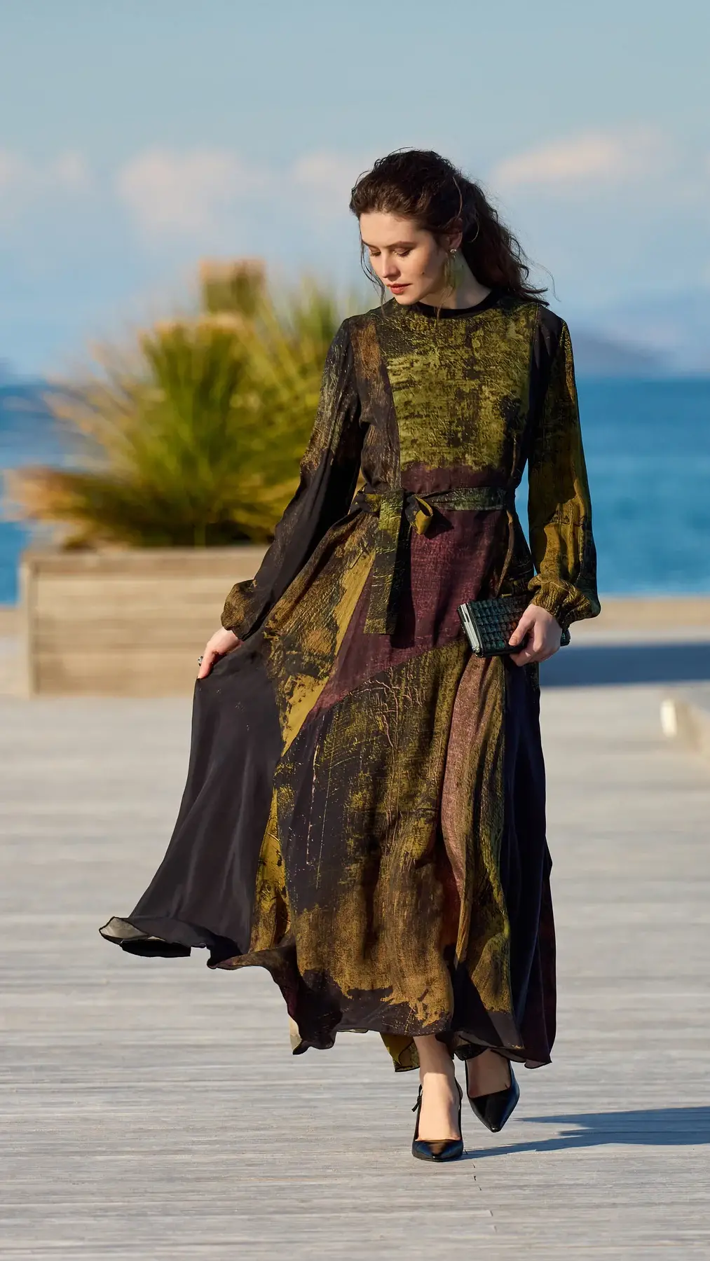 Misswhence Parça Detaylı Desenli Cupra İpek Elbise 39842D