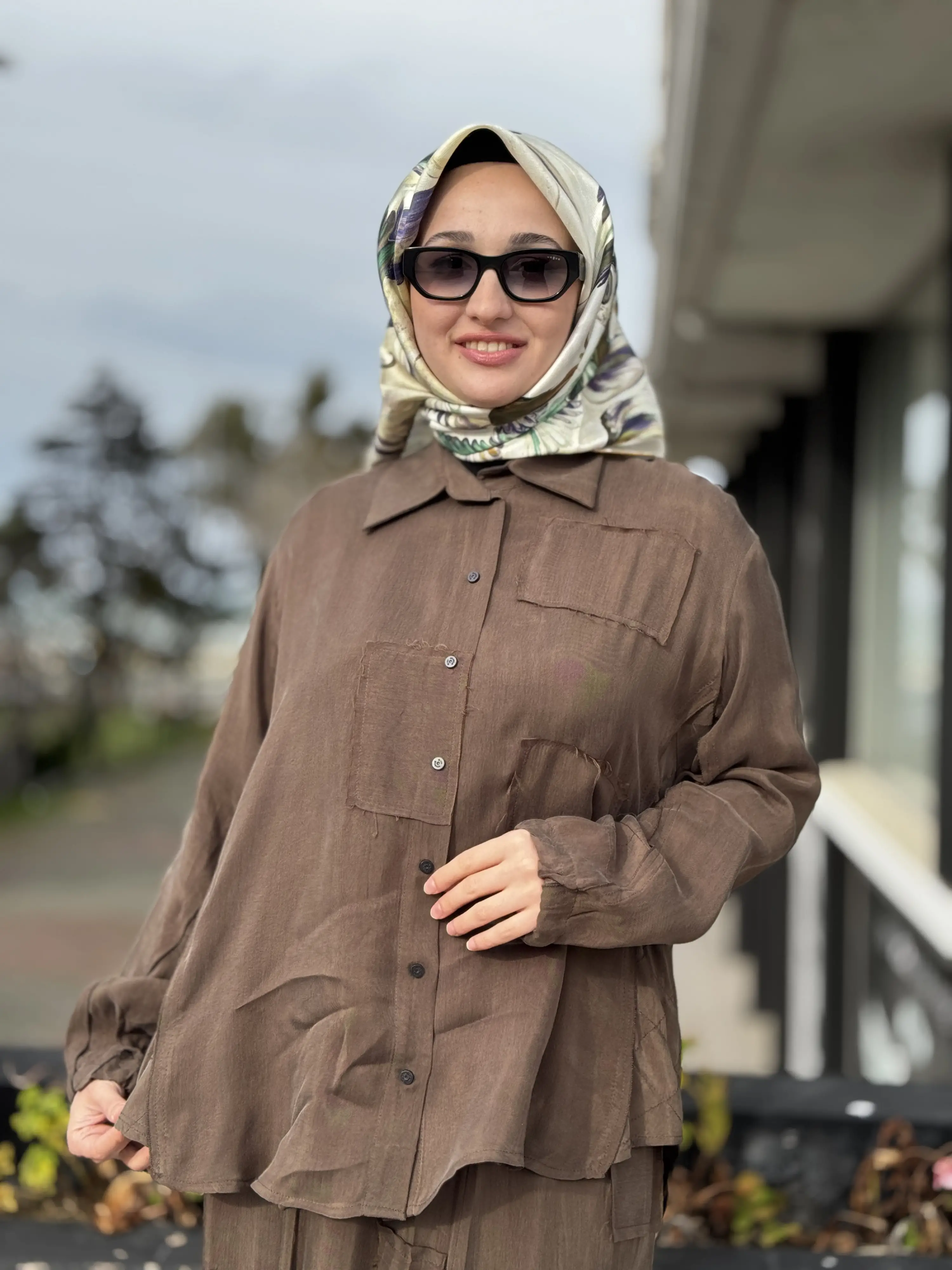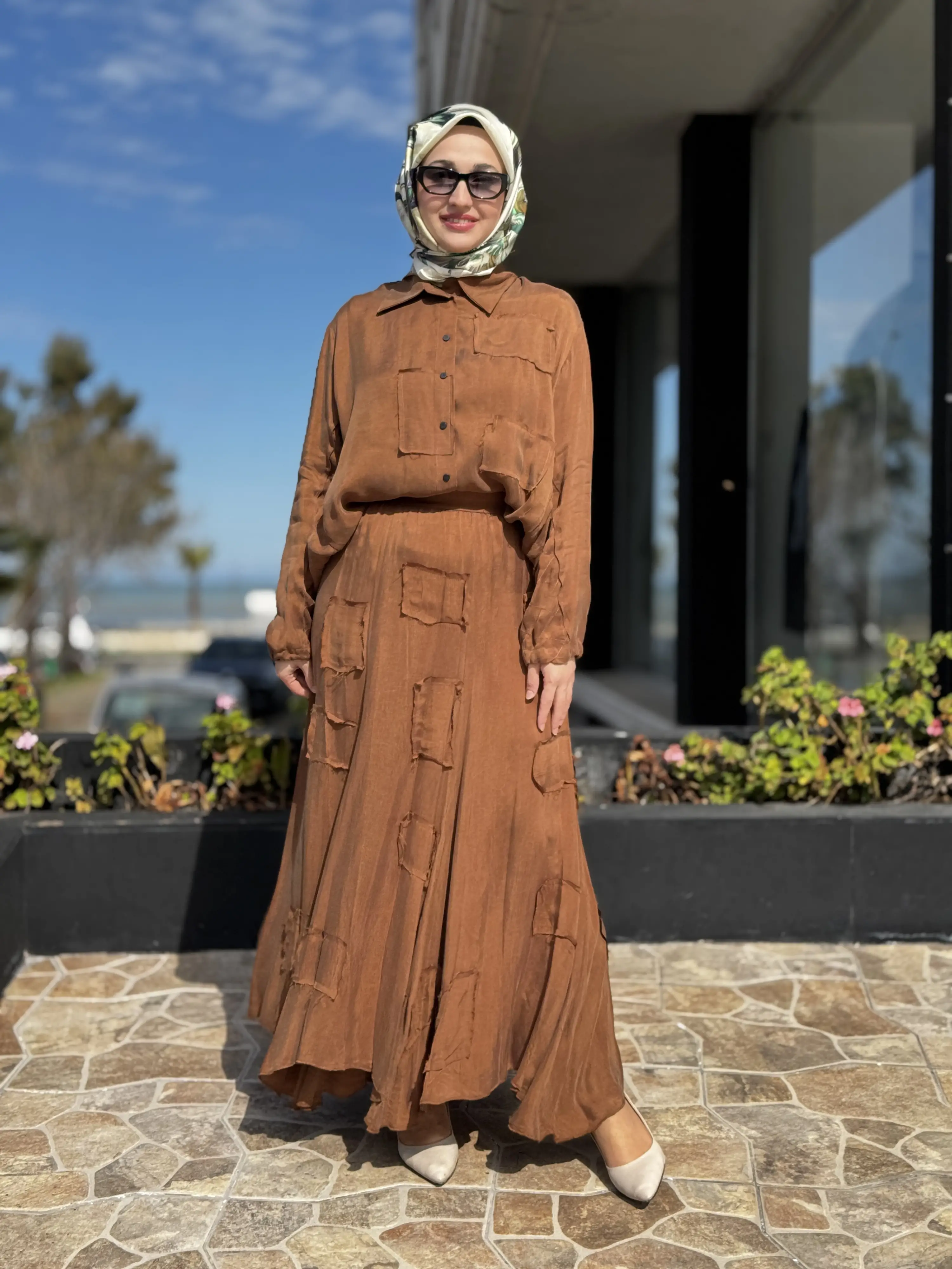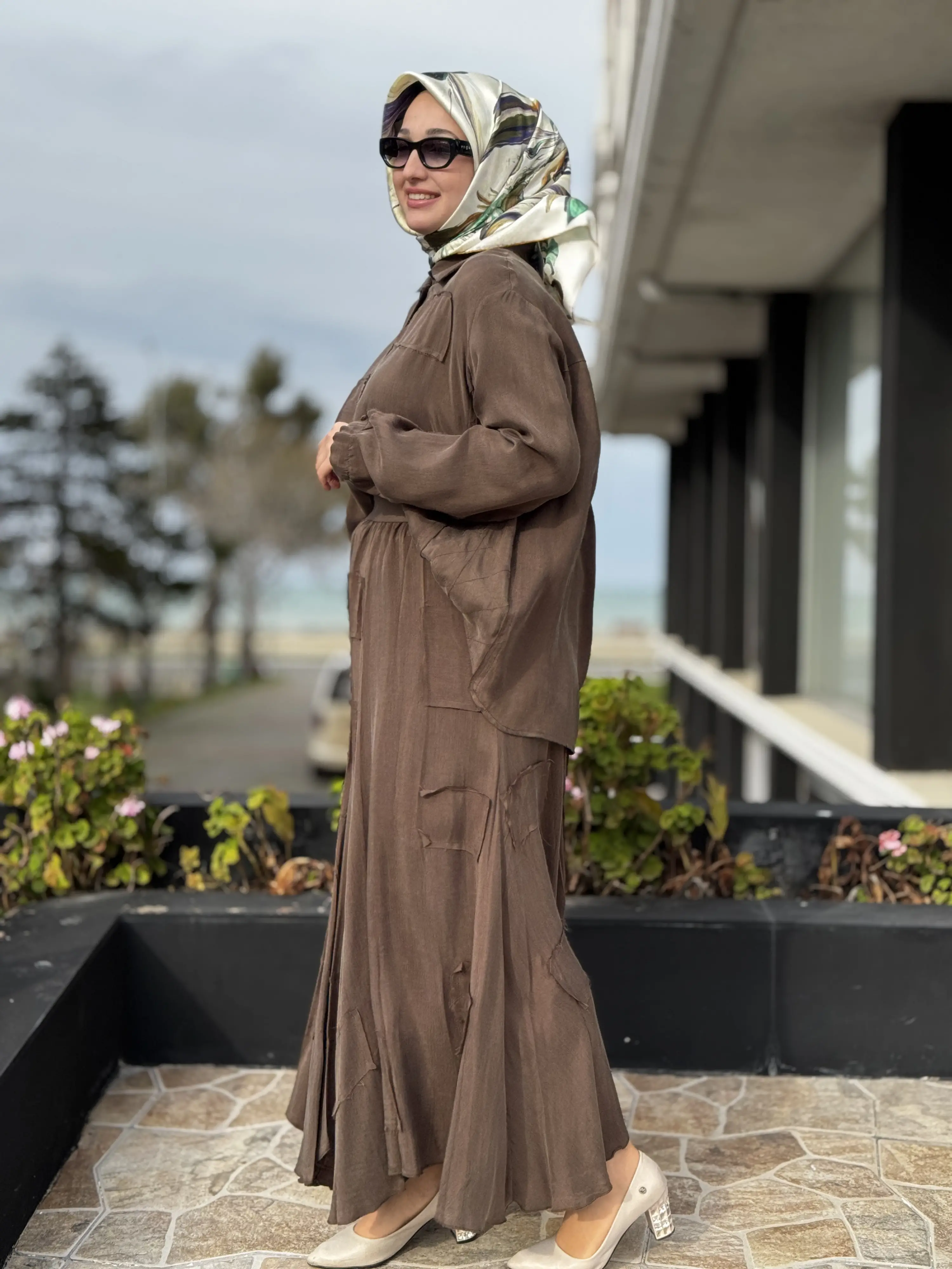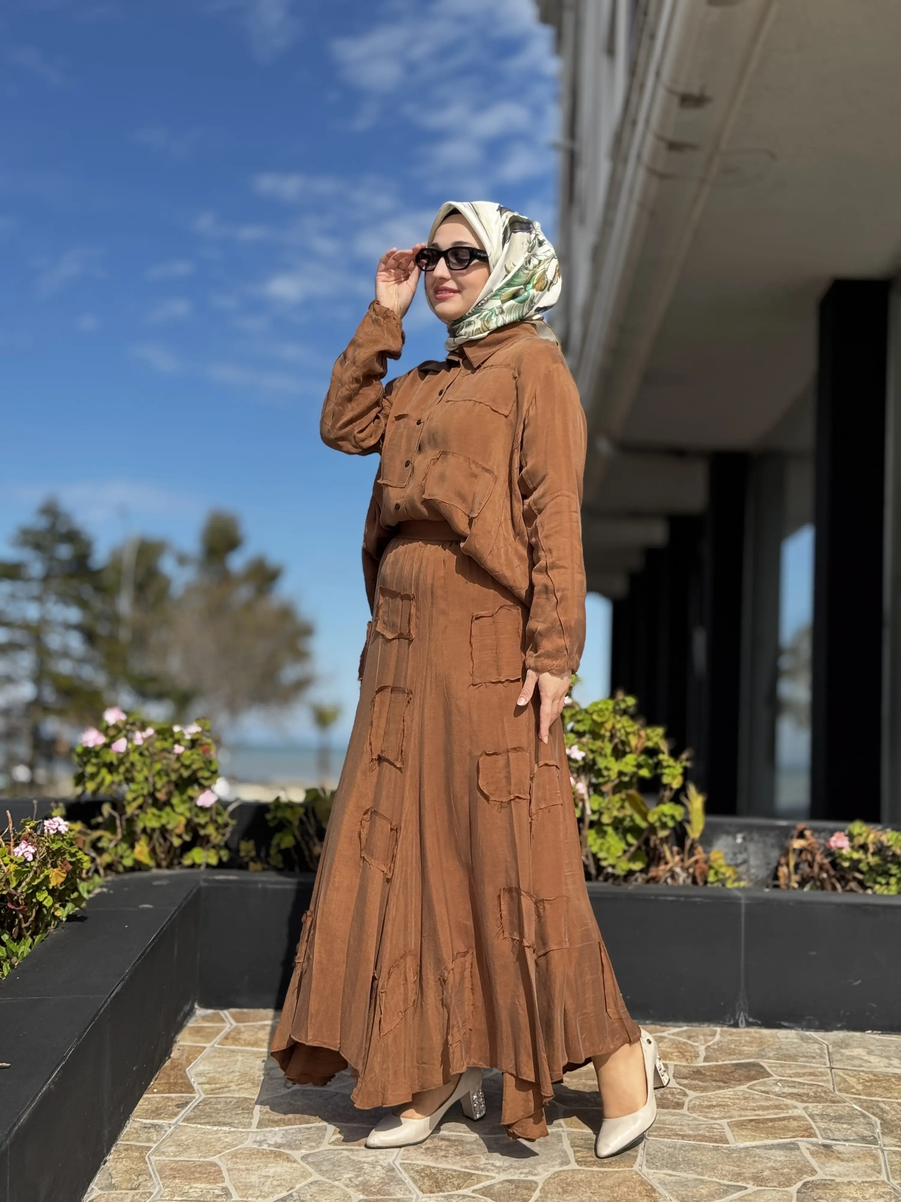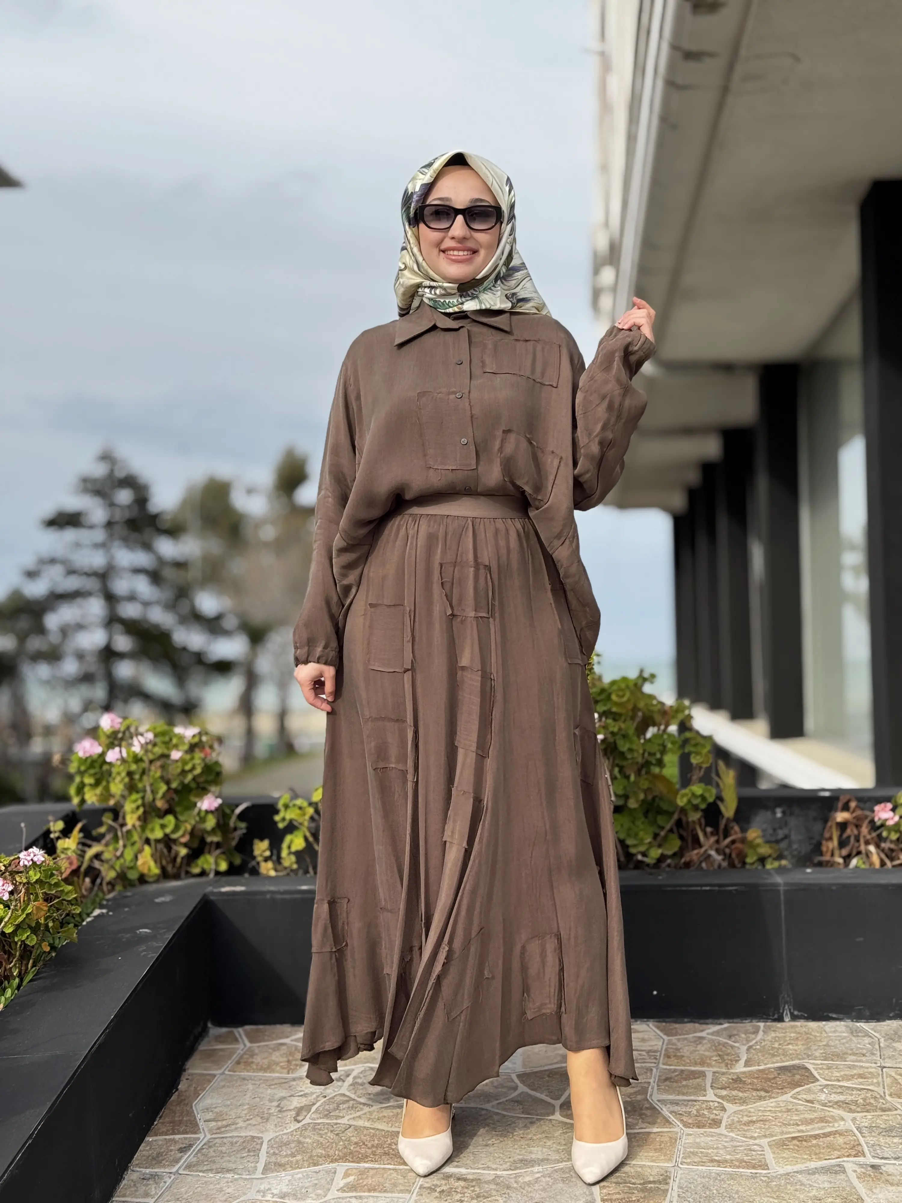 Misswhence Parça Kumaş Kombinli Cupra İpek Gömlek Etek Takım 39304