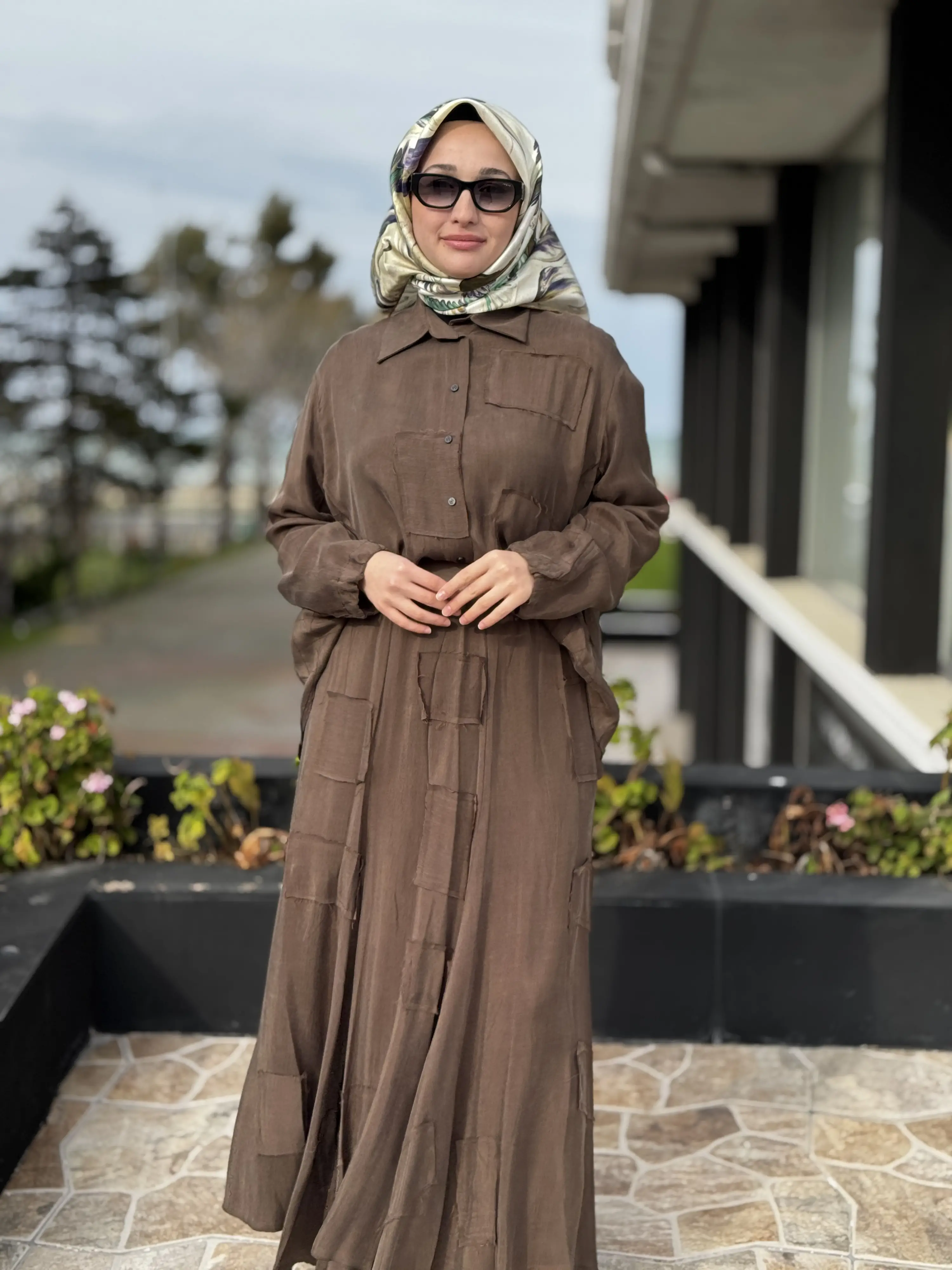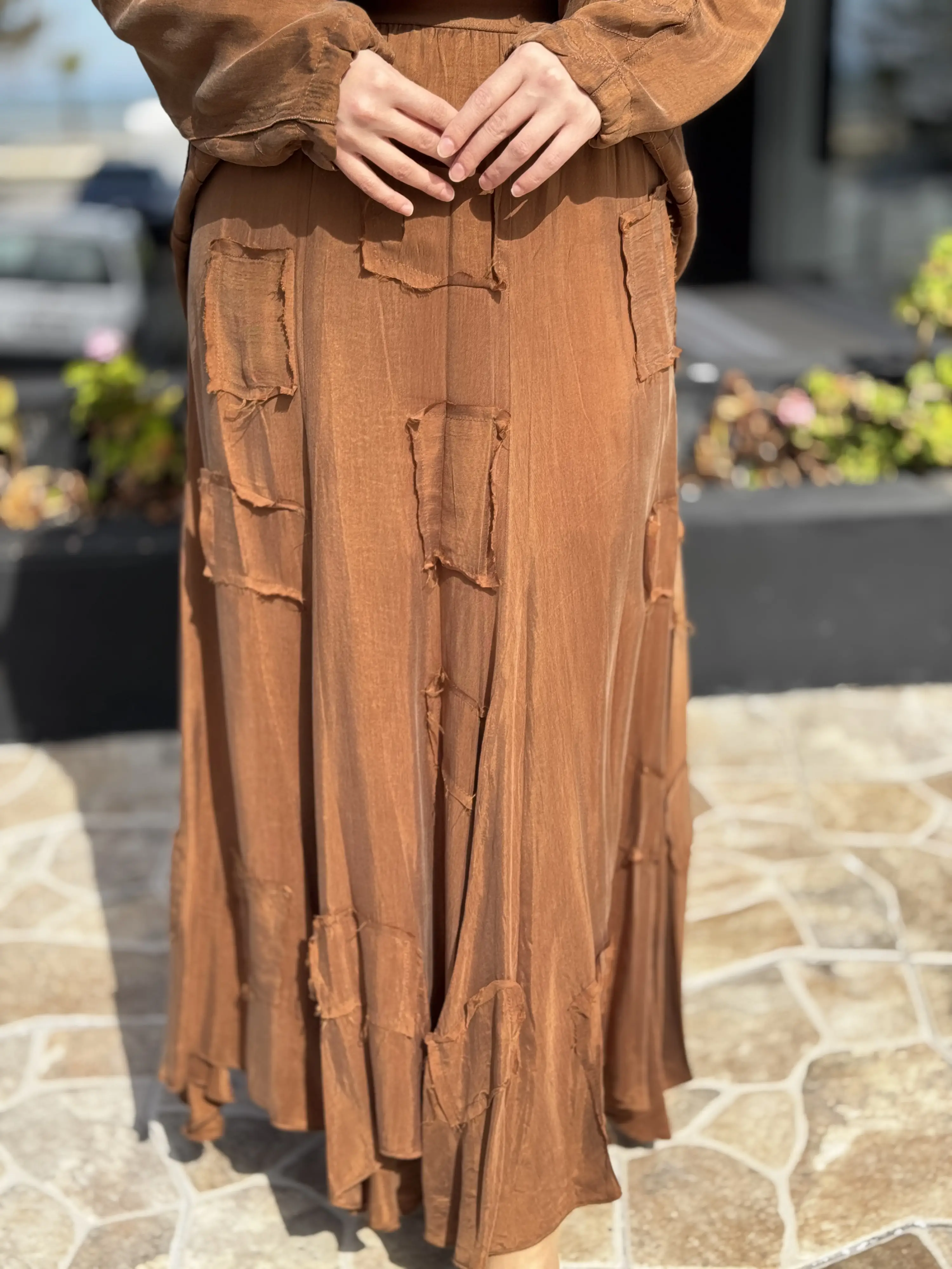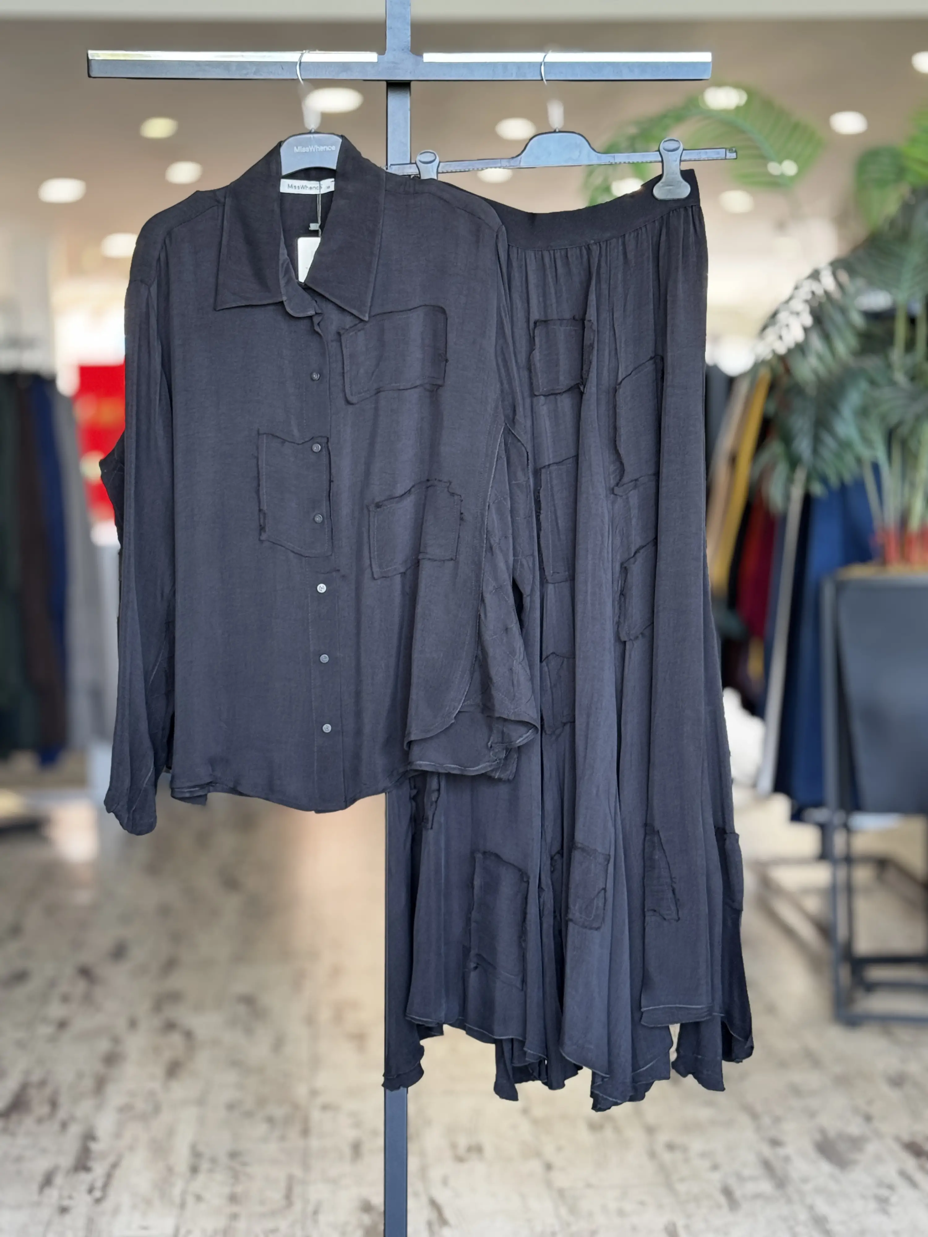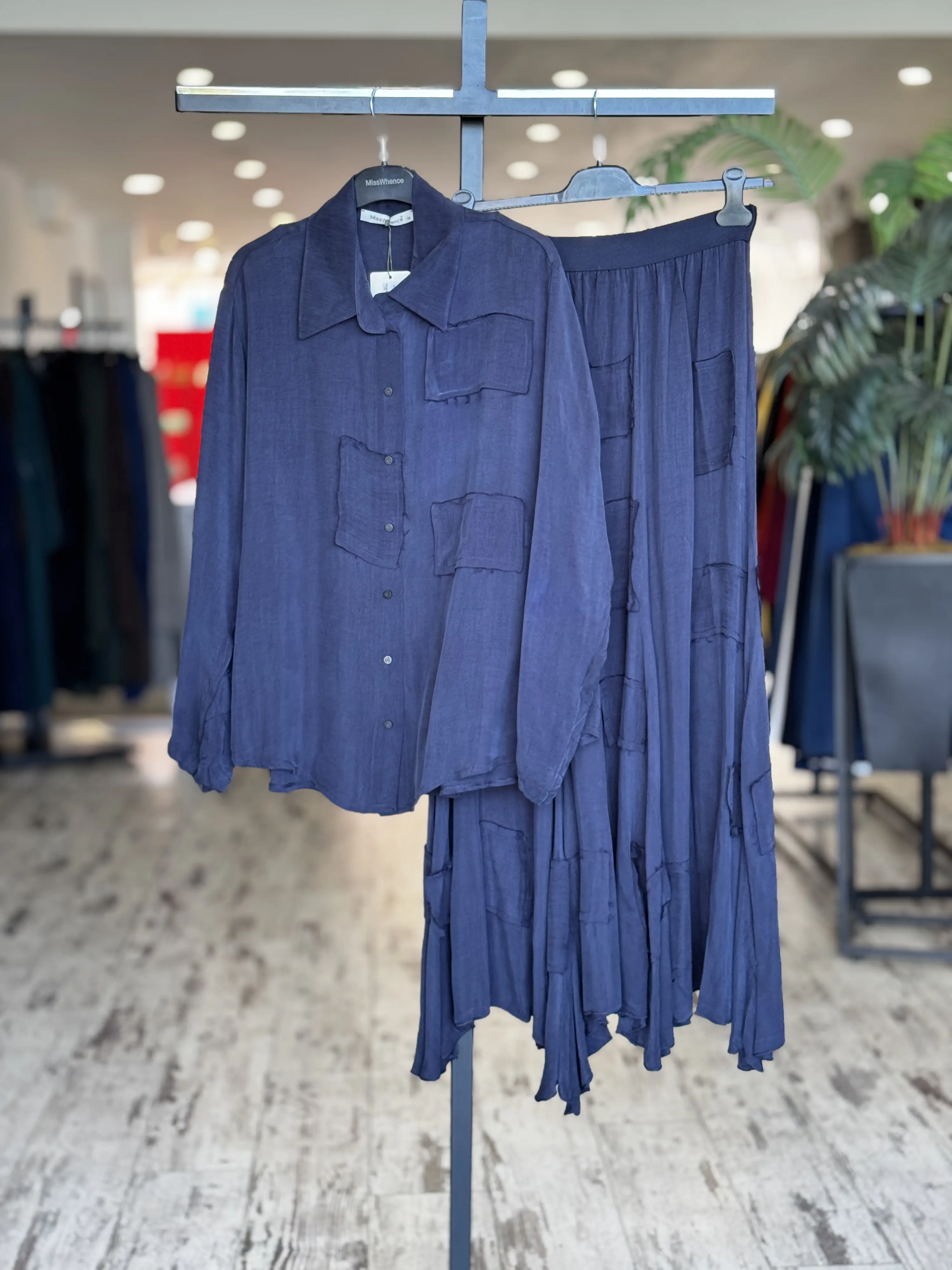 Misswhence Parça Kumaş Kombinli Cupra İpek Gömlek Etek Takım 39304