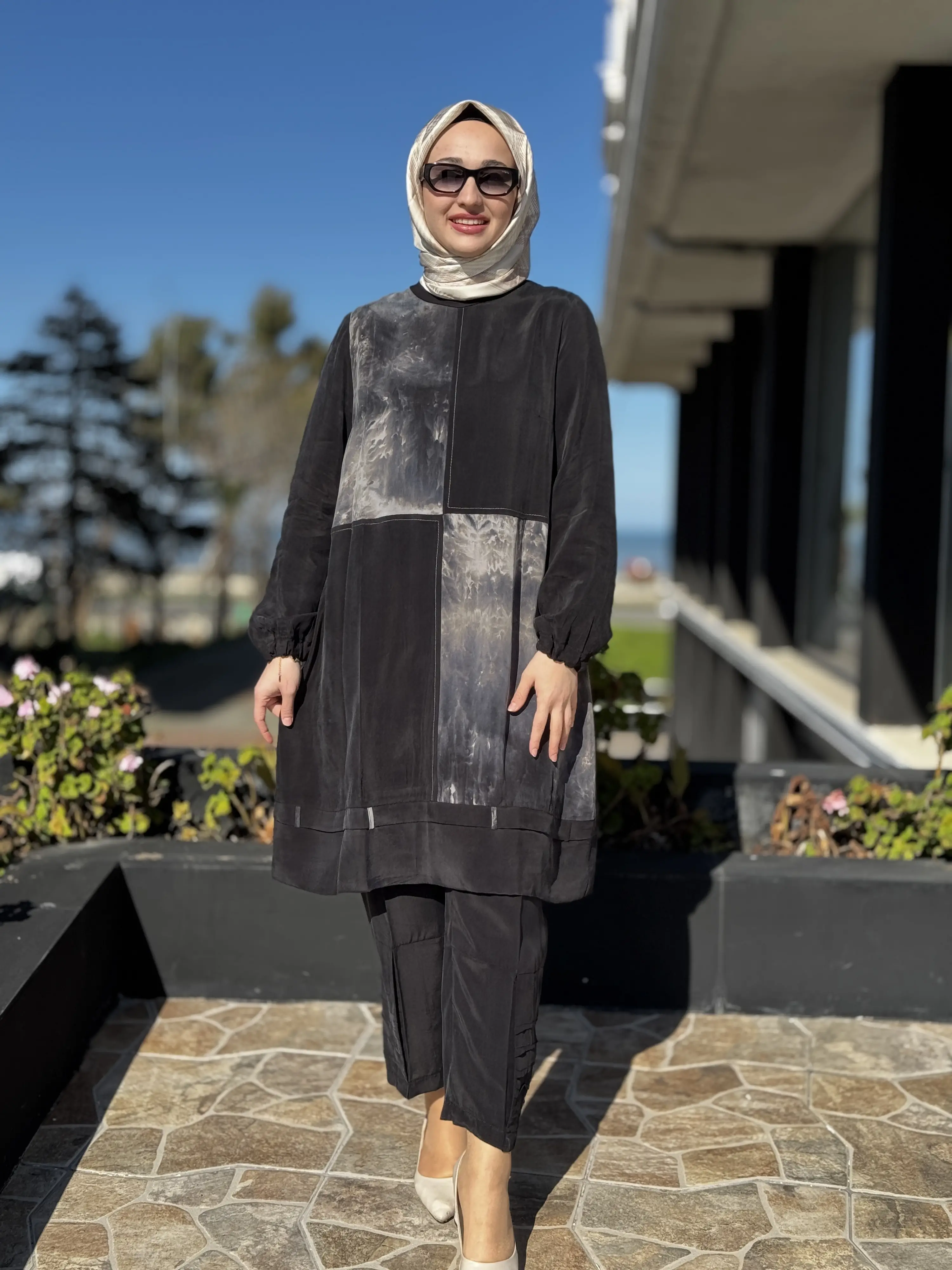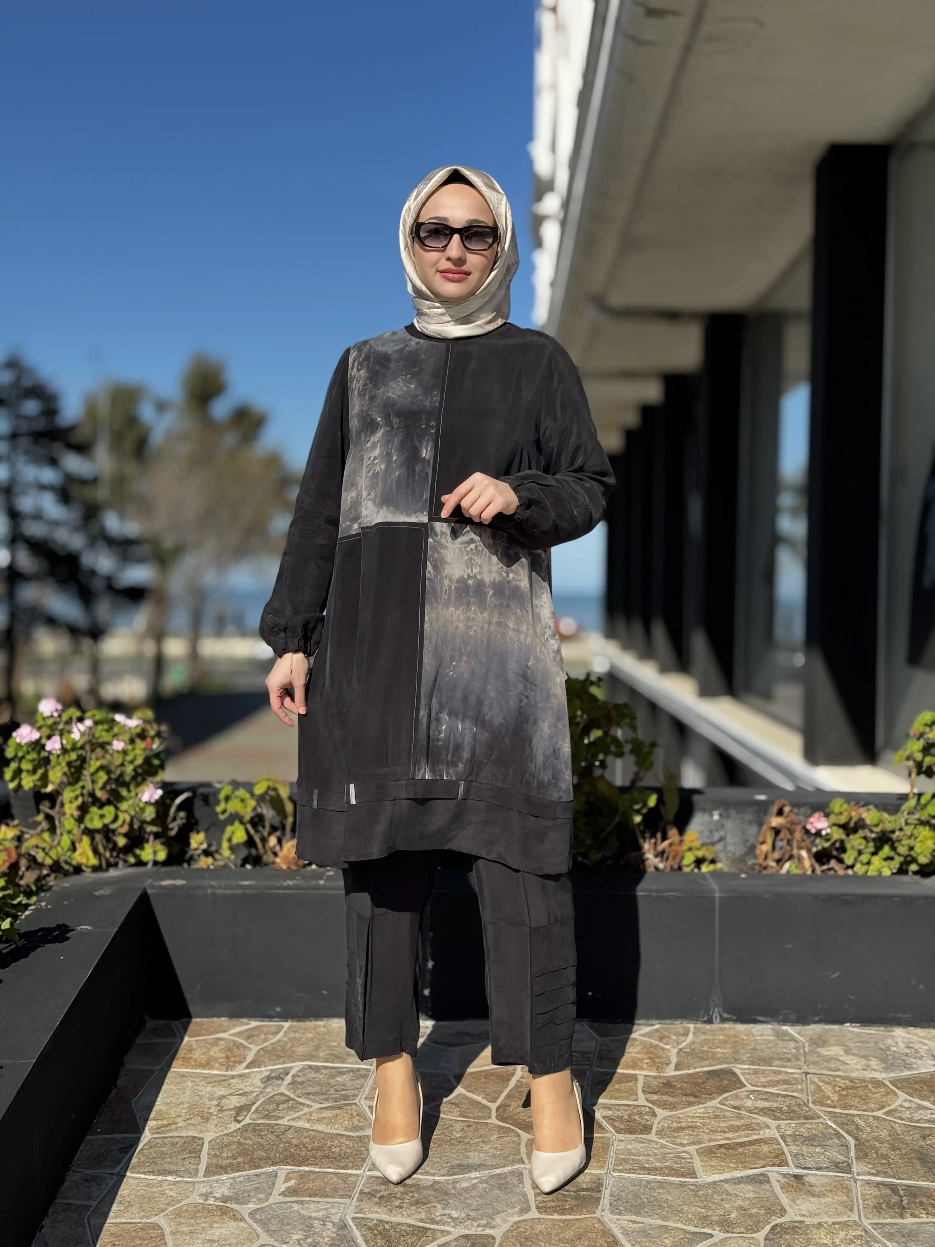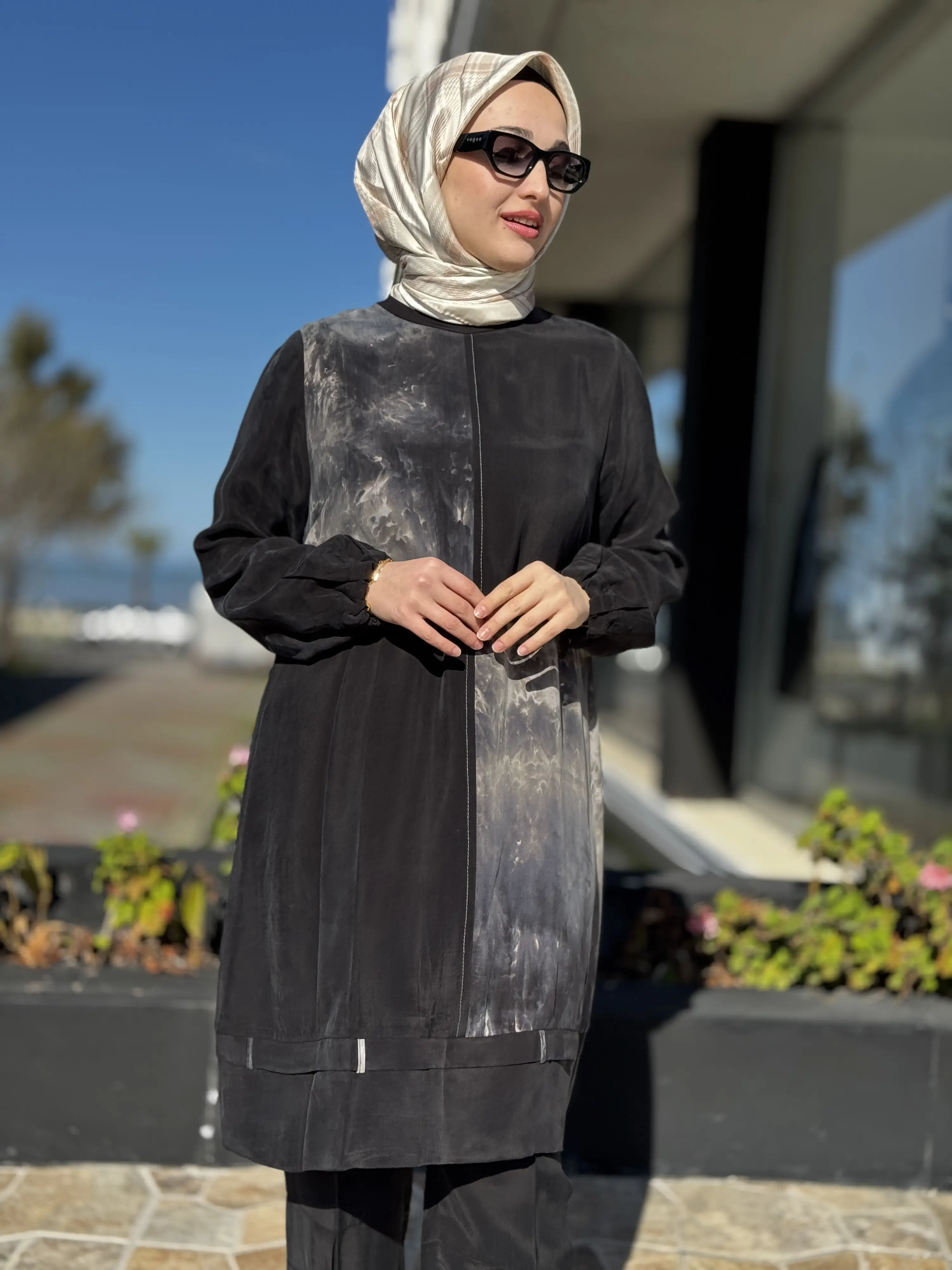 Misswhence Spor Dikiş Detaylı Batik Desenli Cupra İpek Tunik 39005