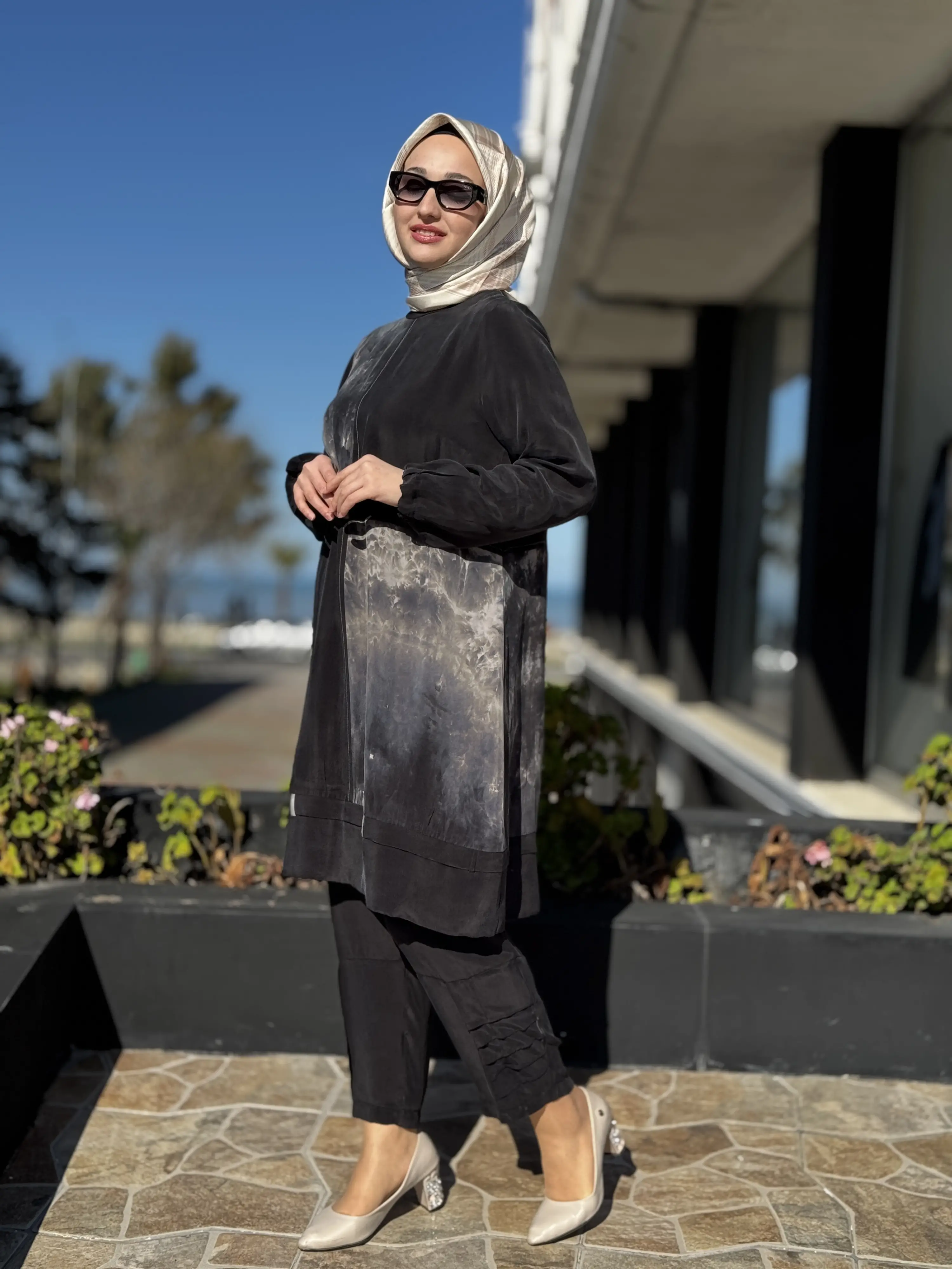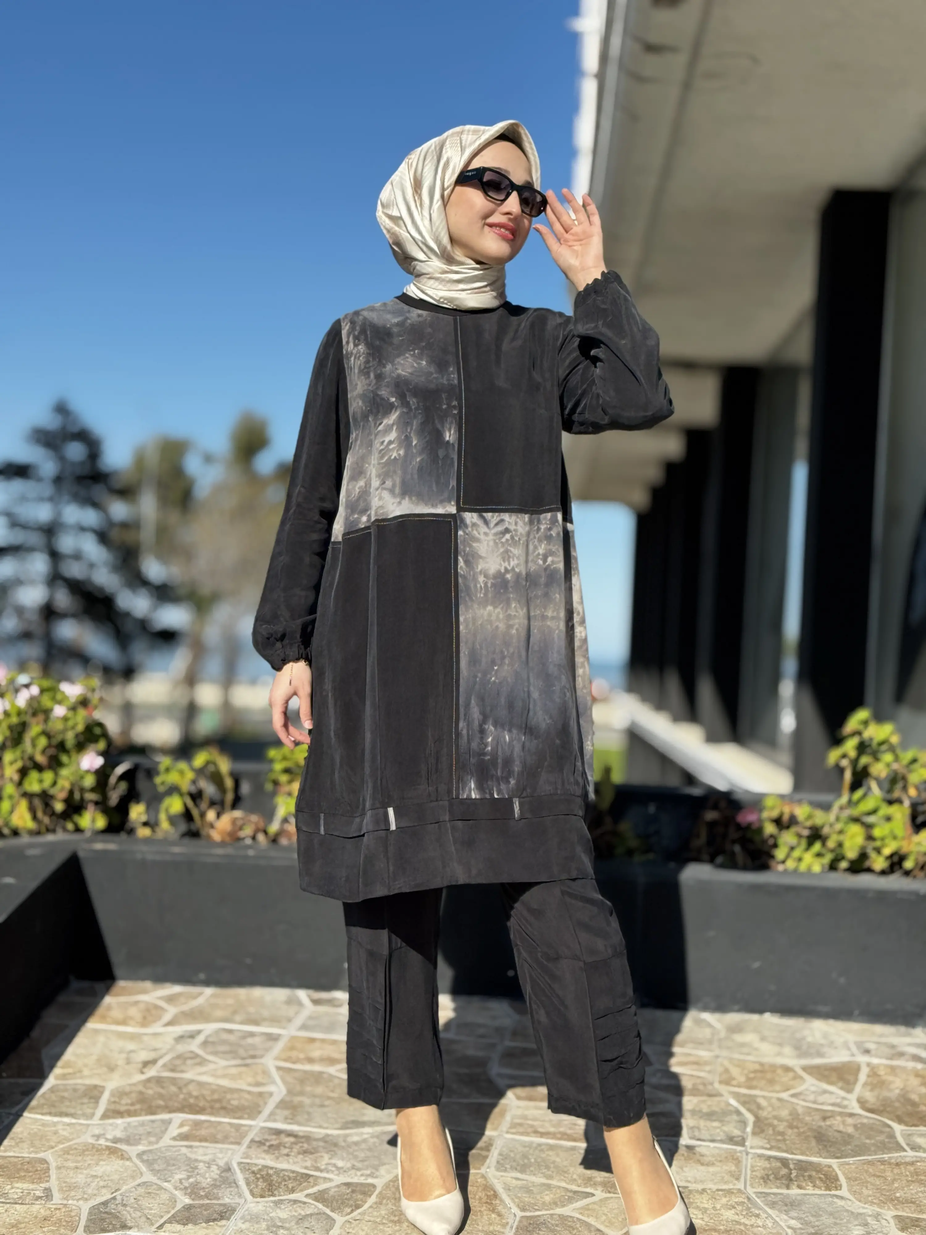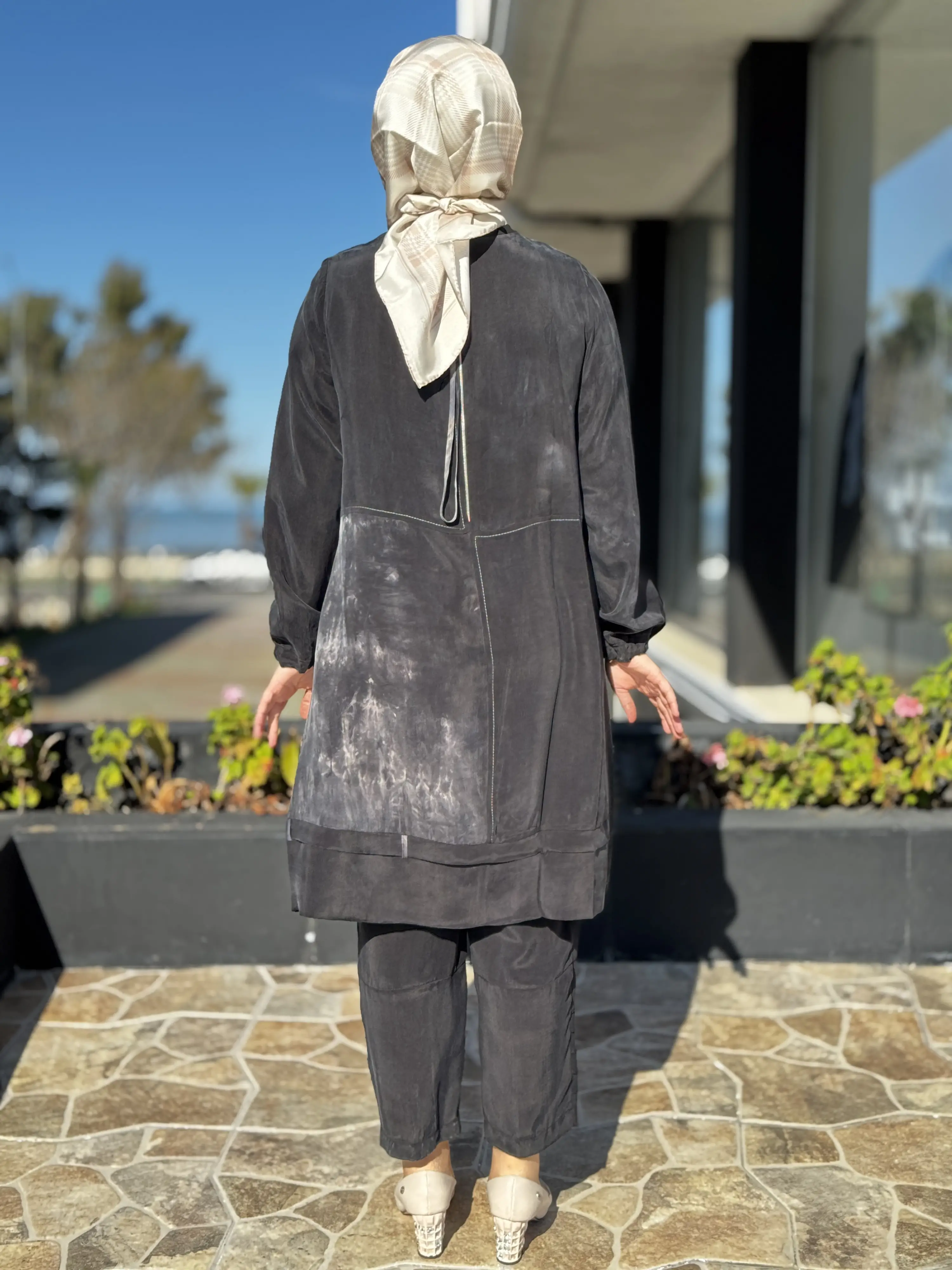 Misswhence Spor Dikiş Detaylı Batik Desenli Cupra İpek Tunik 39005