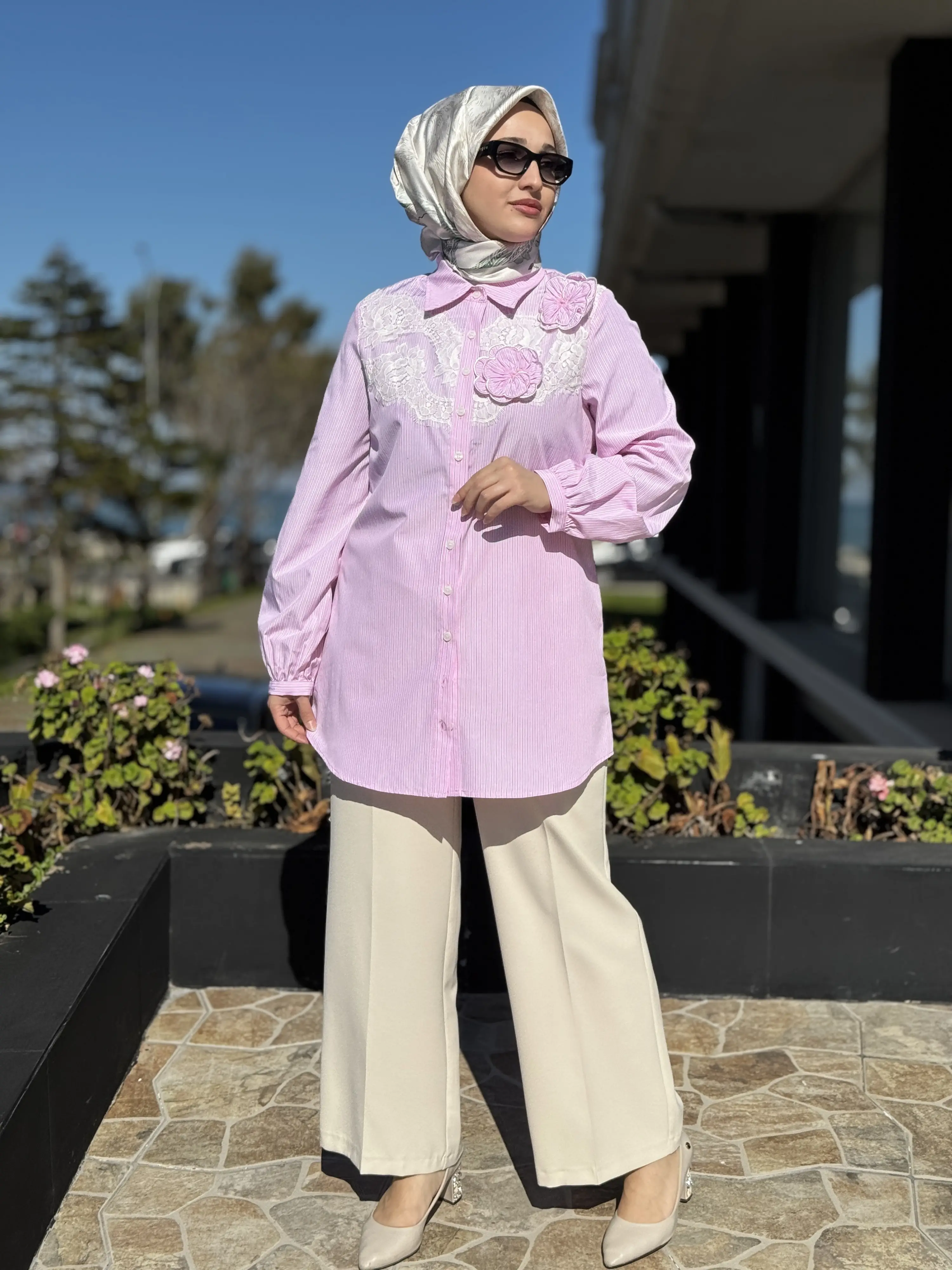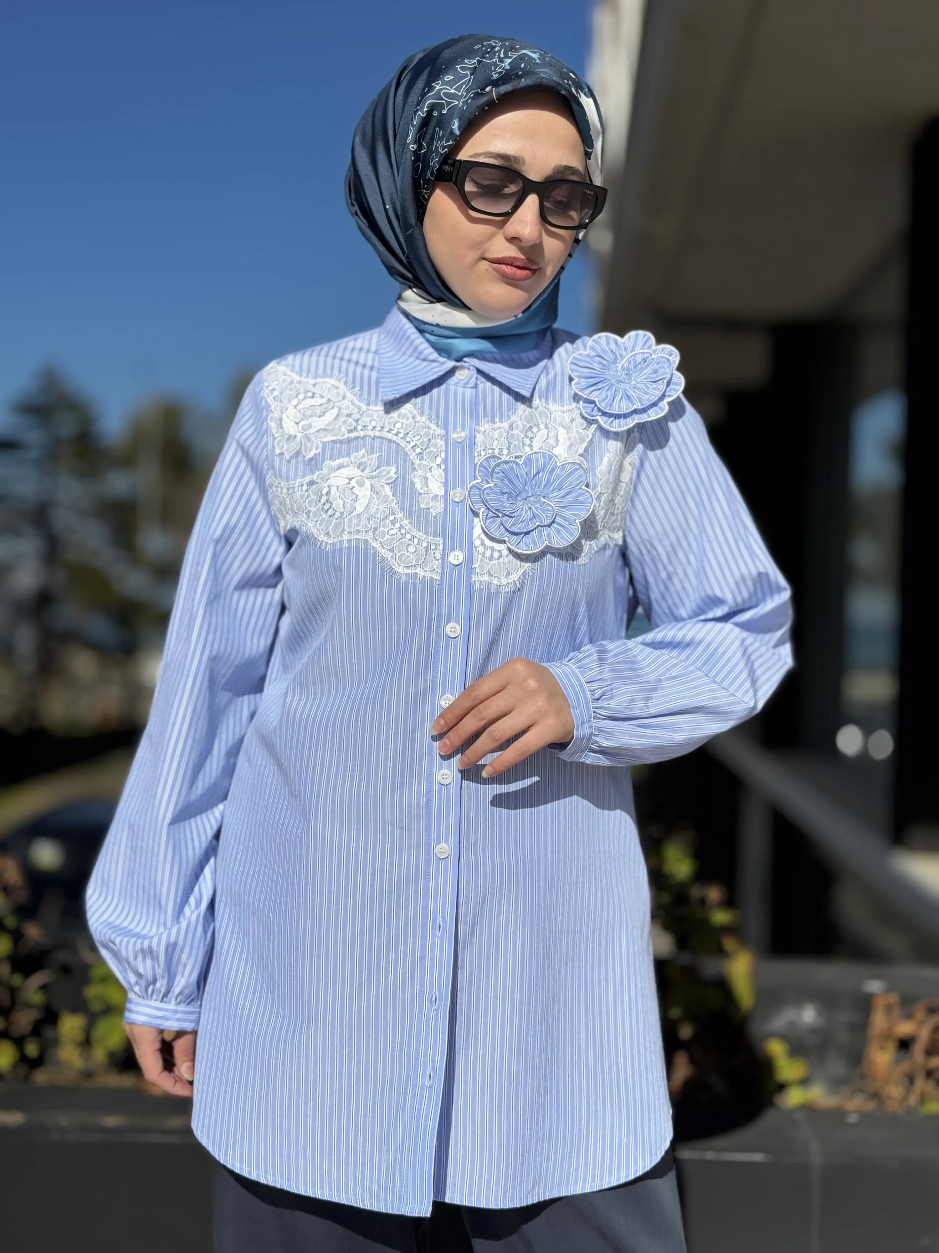 YAKASI ÇİÇEK VE GÜPÜR DETAYLIDIR