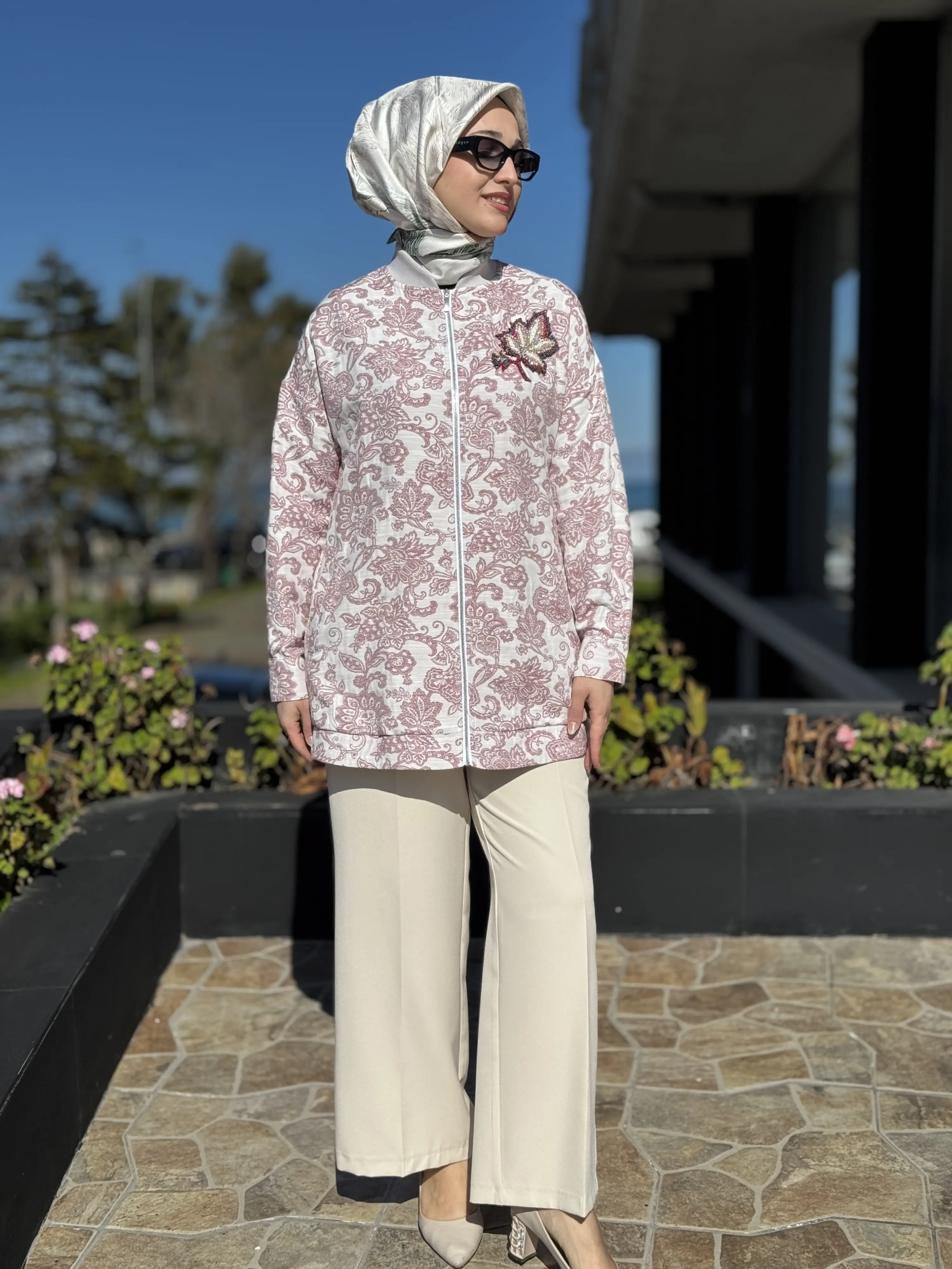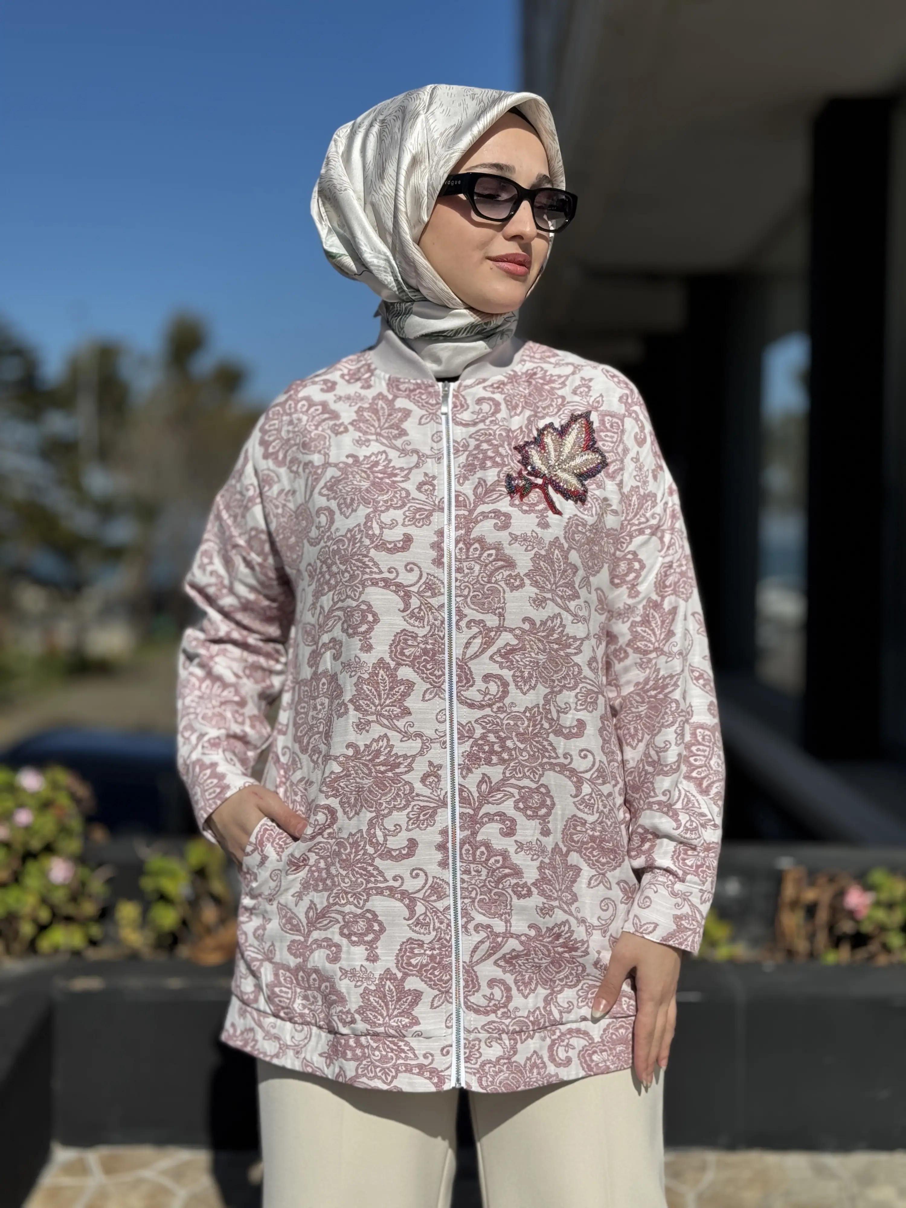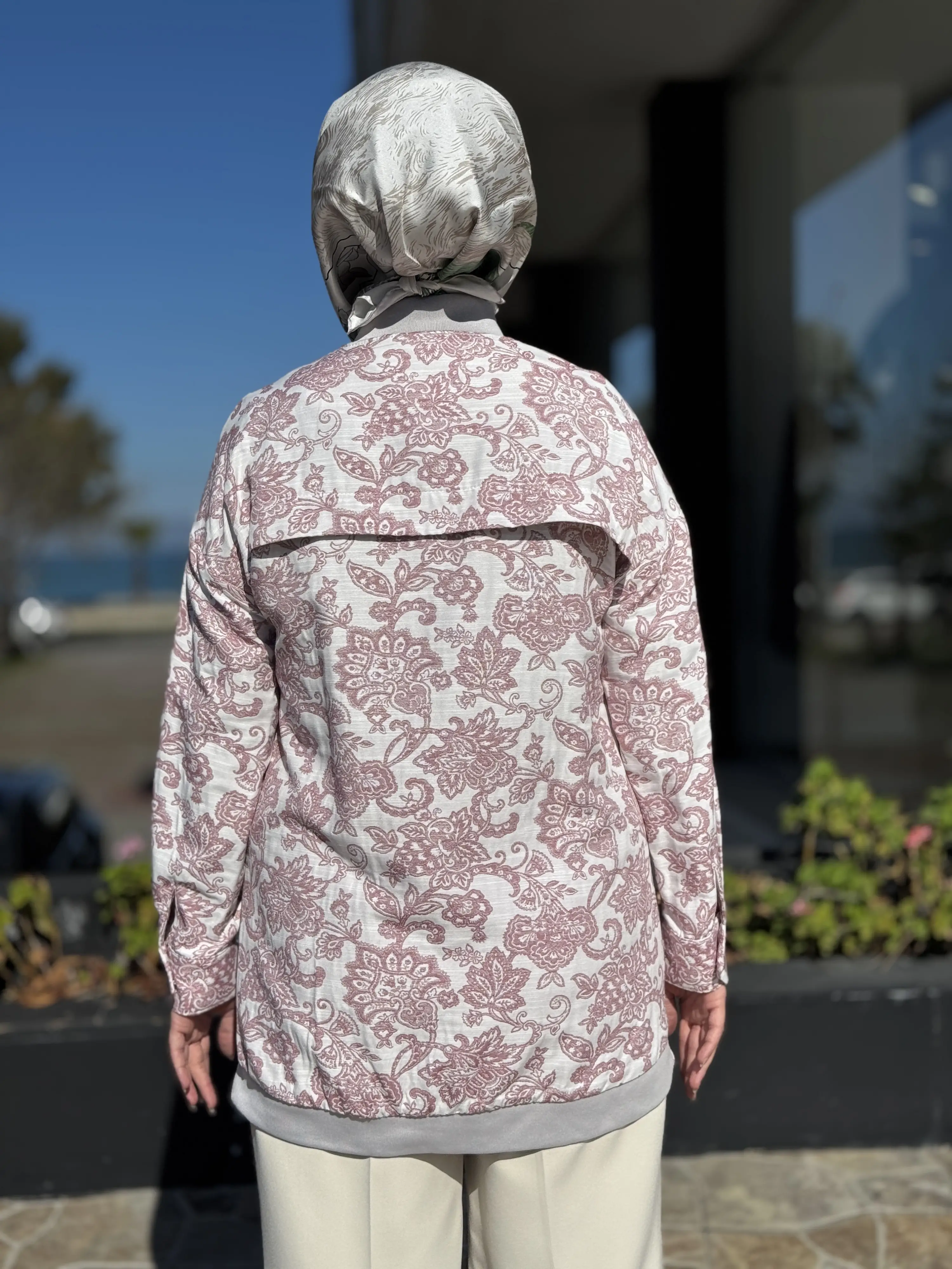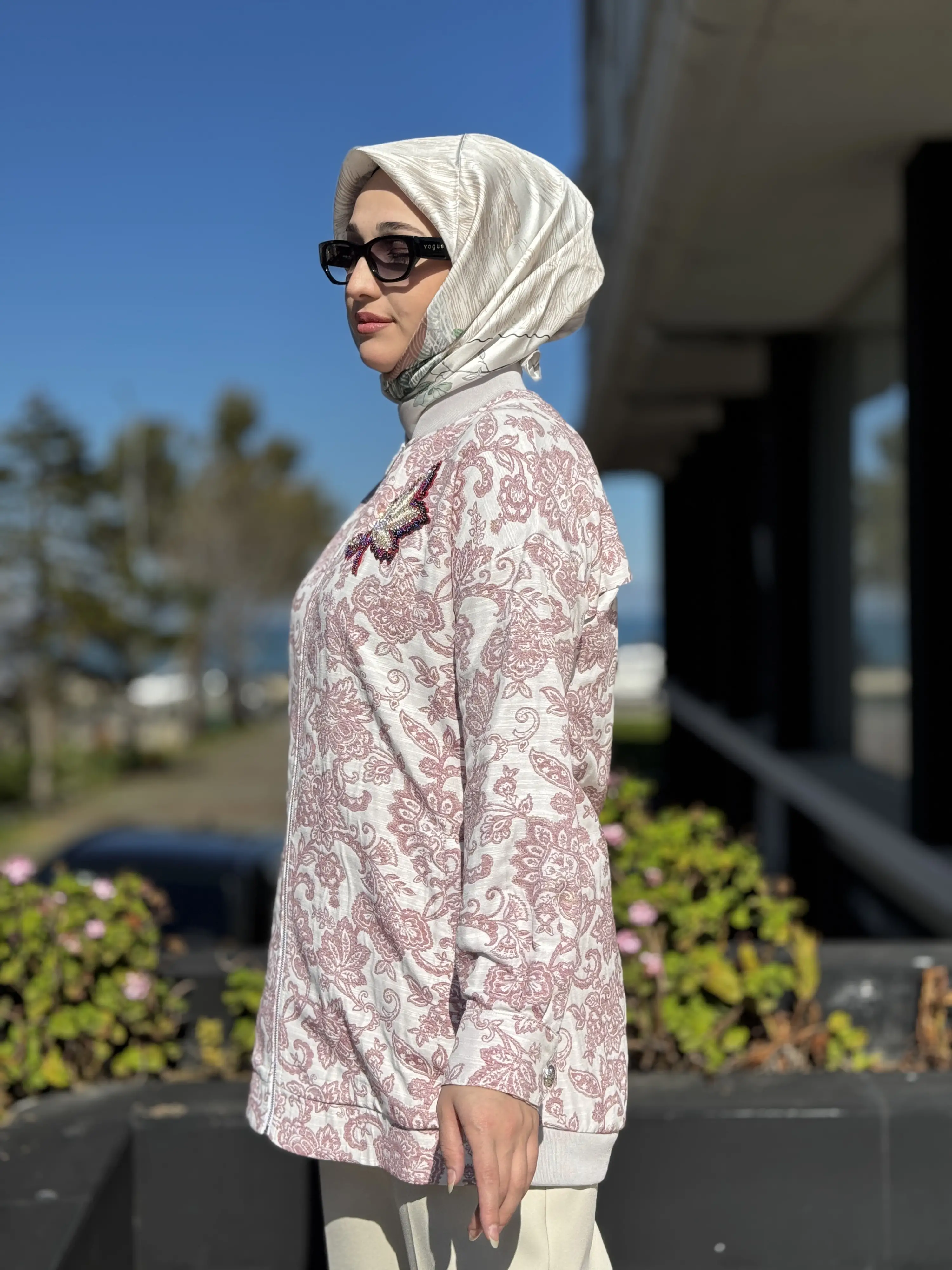 Kayra Yakası Boncuk İşlemeli Etnik Desenli Bumber Ceket
