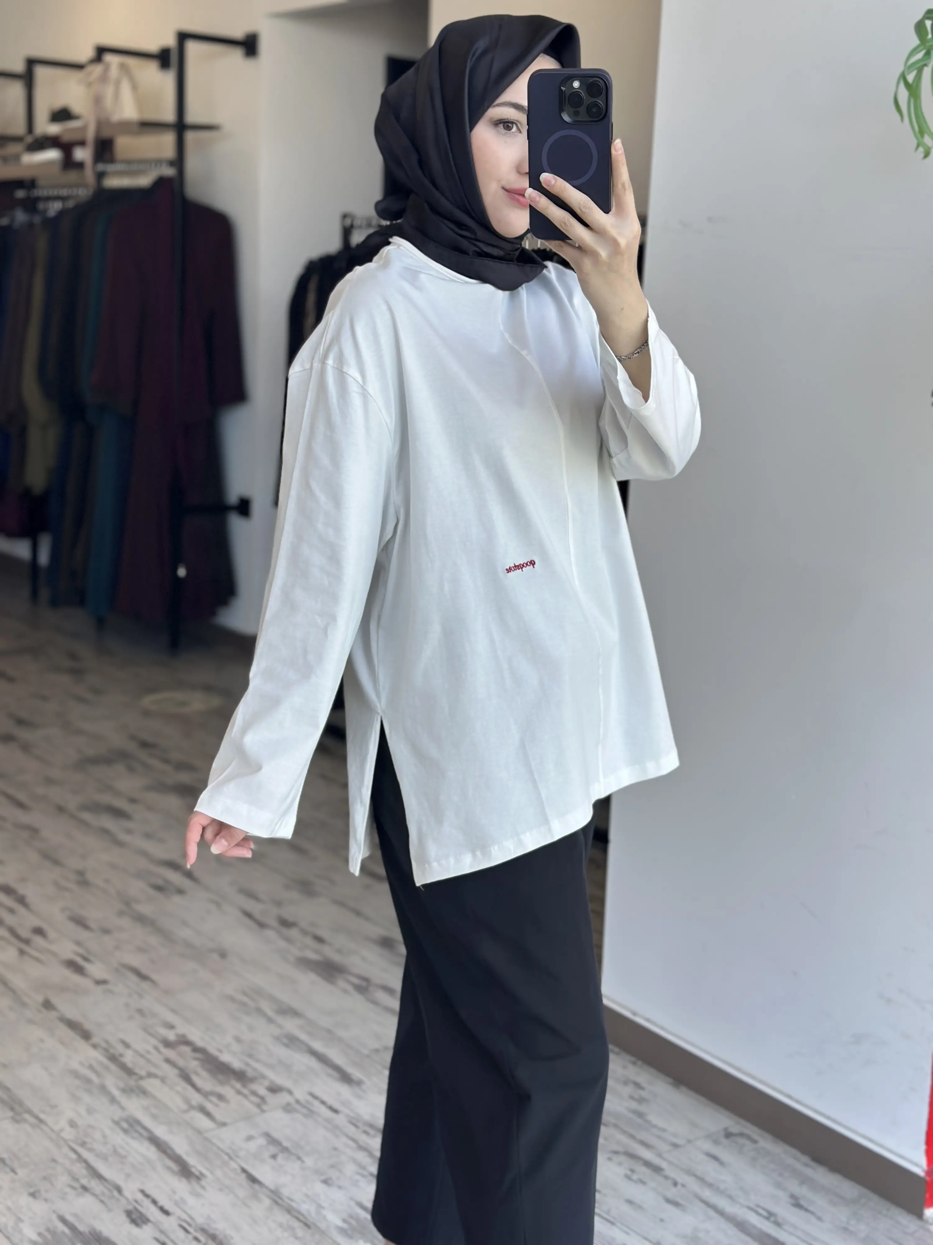 QooQ Store Nakışlı Basic Coton Penye Sweat 26SS216