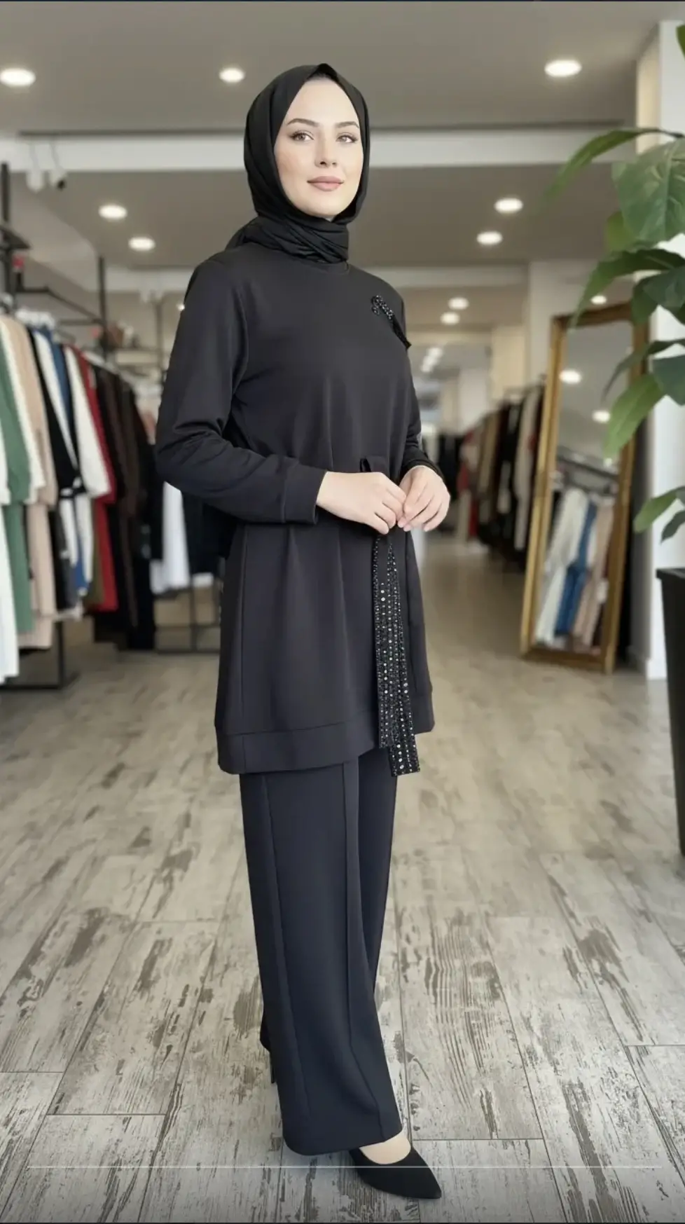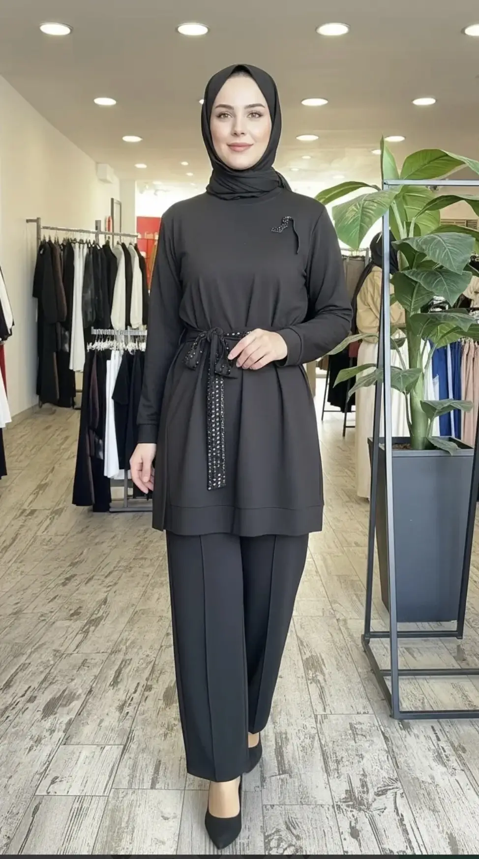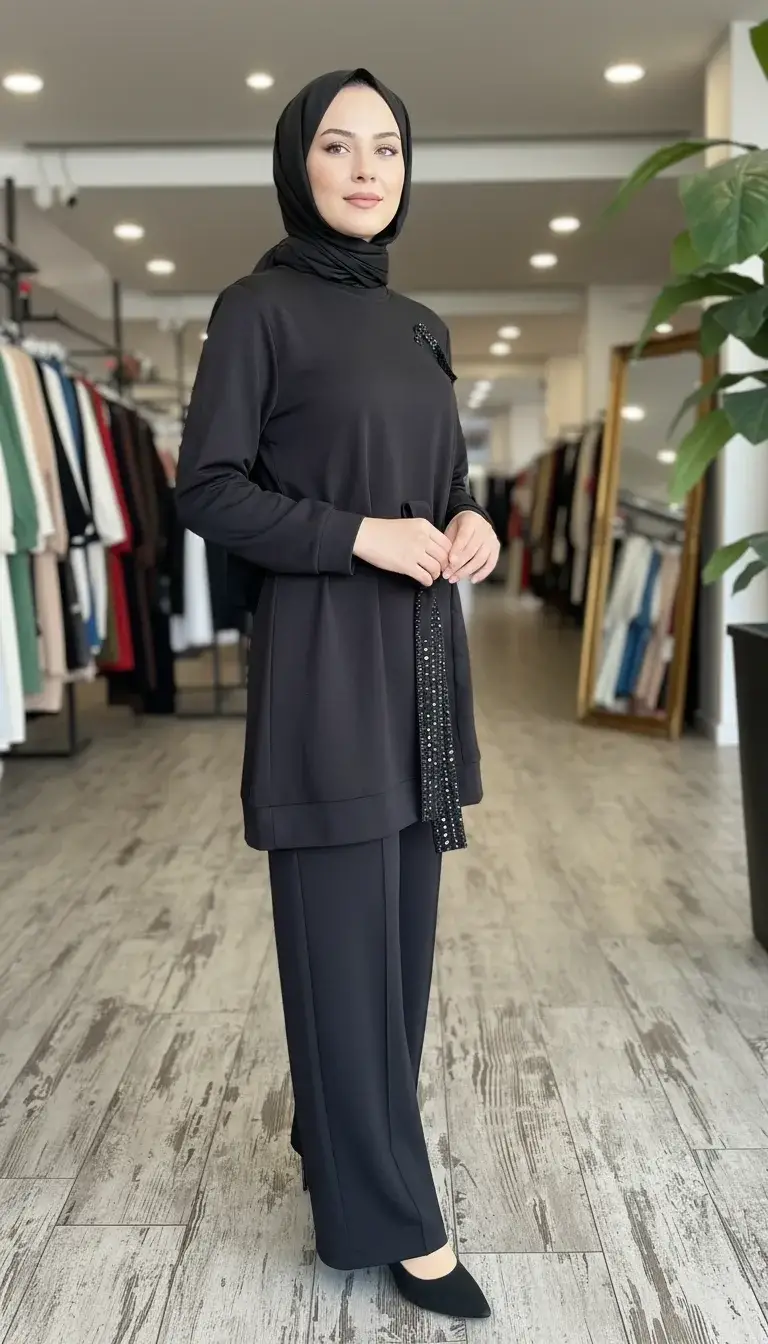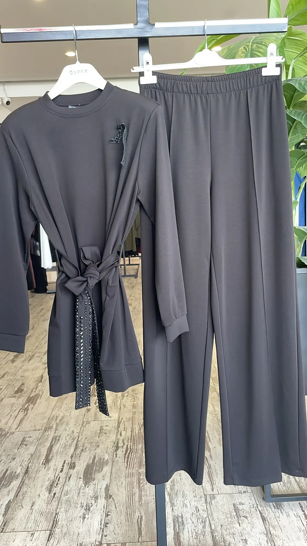 Qupra Kuşağı Boncuk Detaylı Modal Tunik Pantolon Takım WAD12126