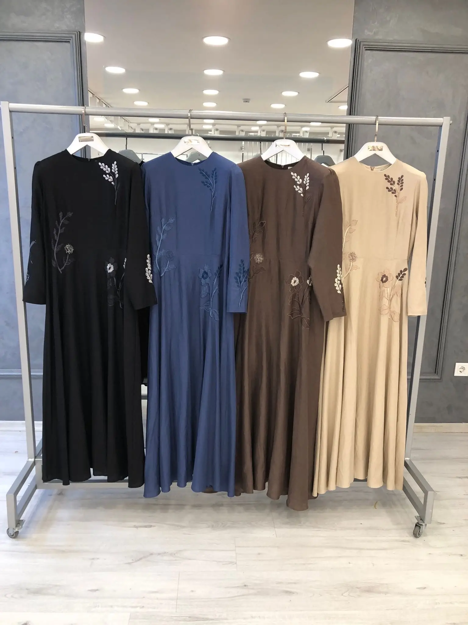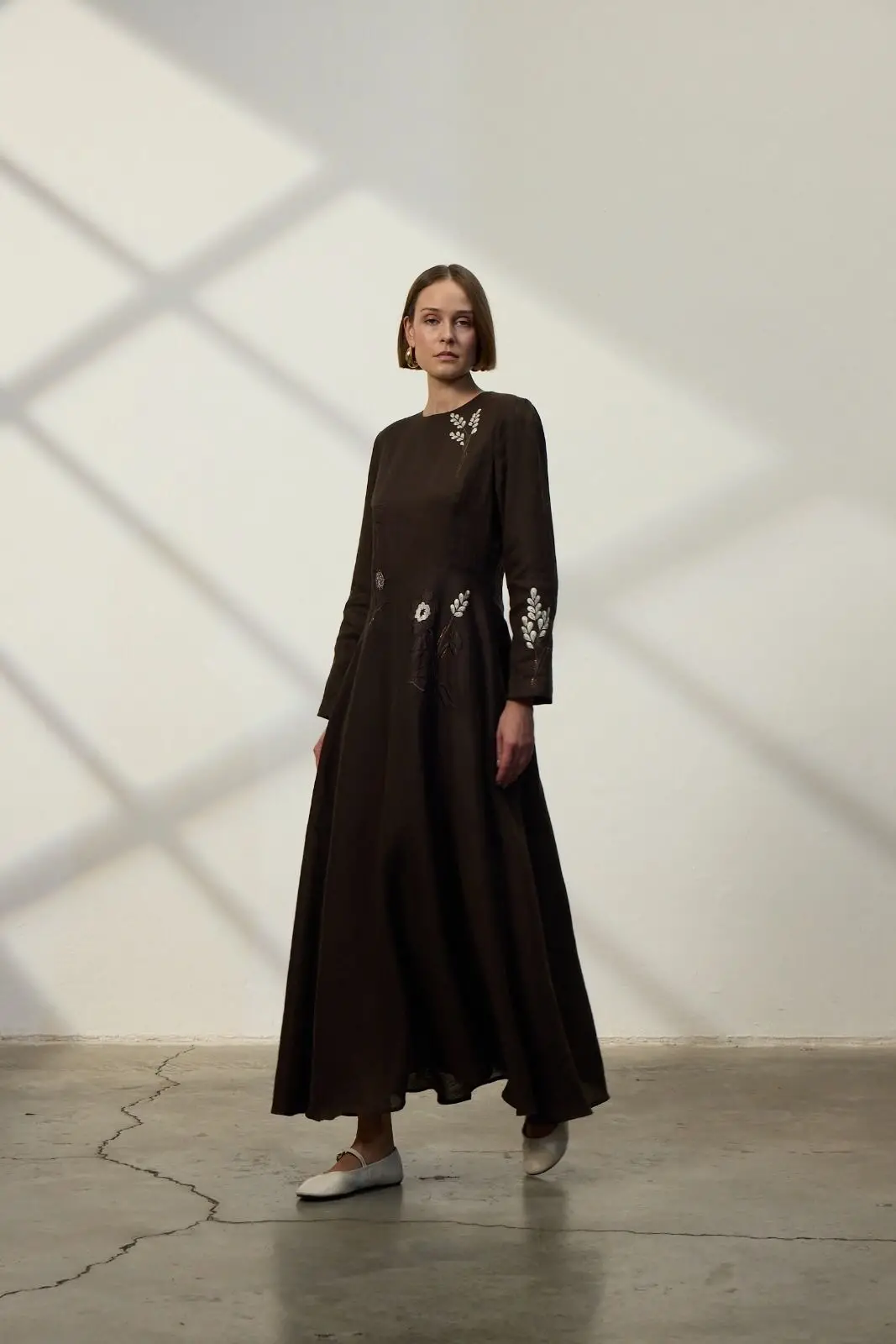 Qupra Nakış Detaylı Volanlı Keten Elbise WAD1528