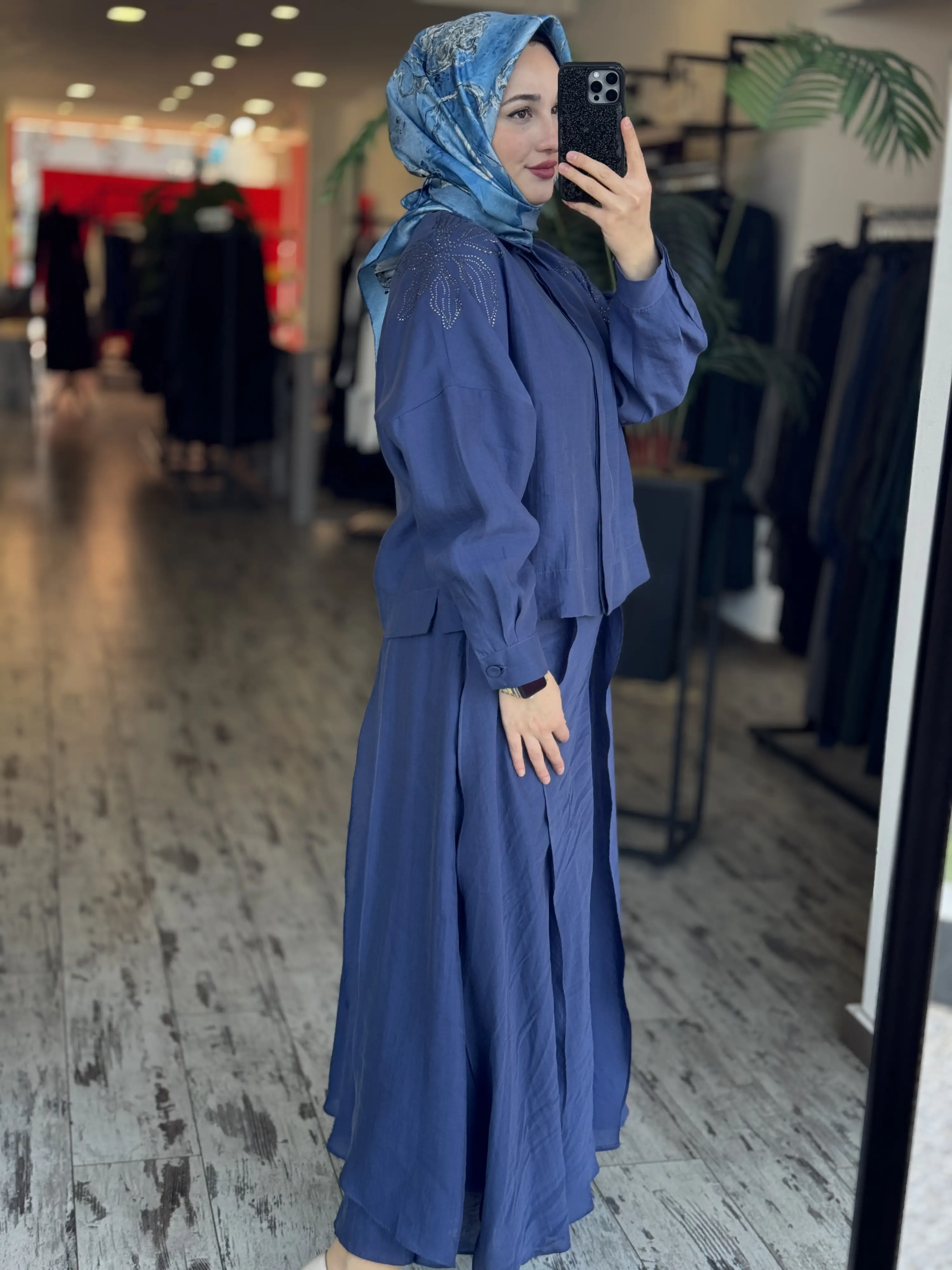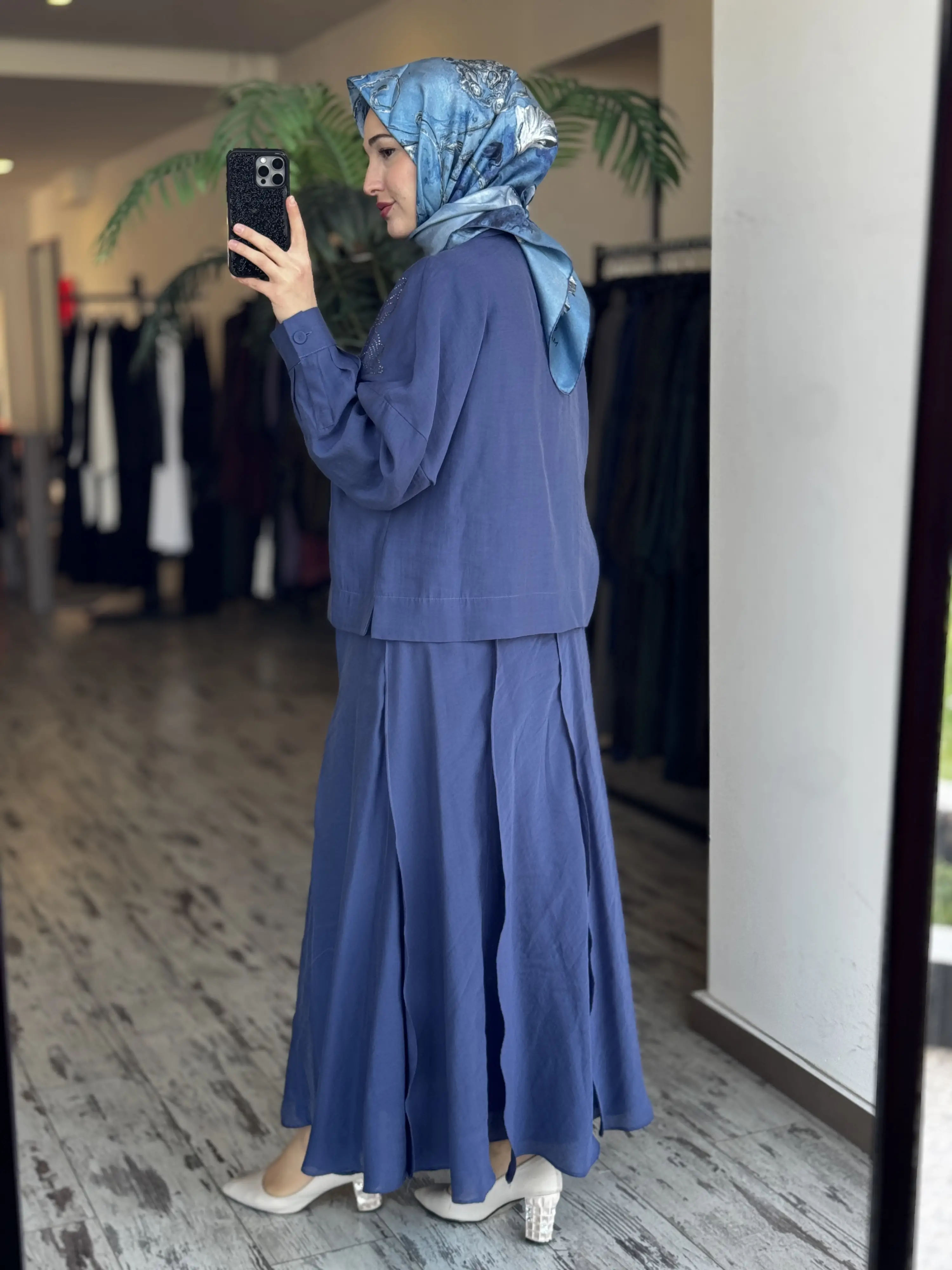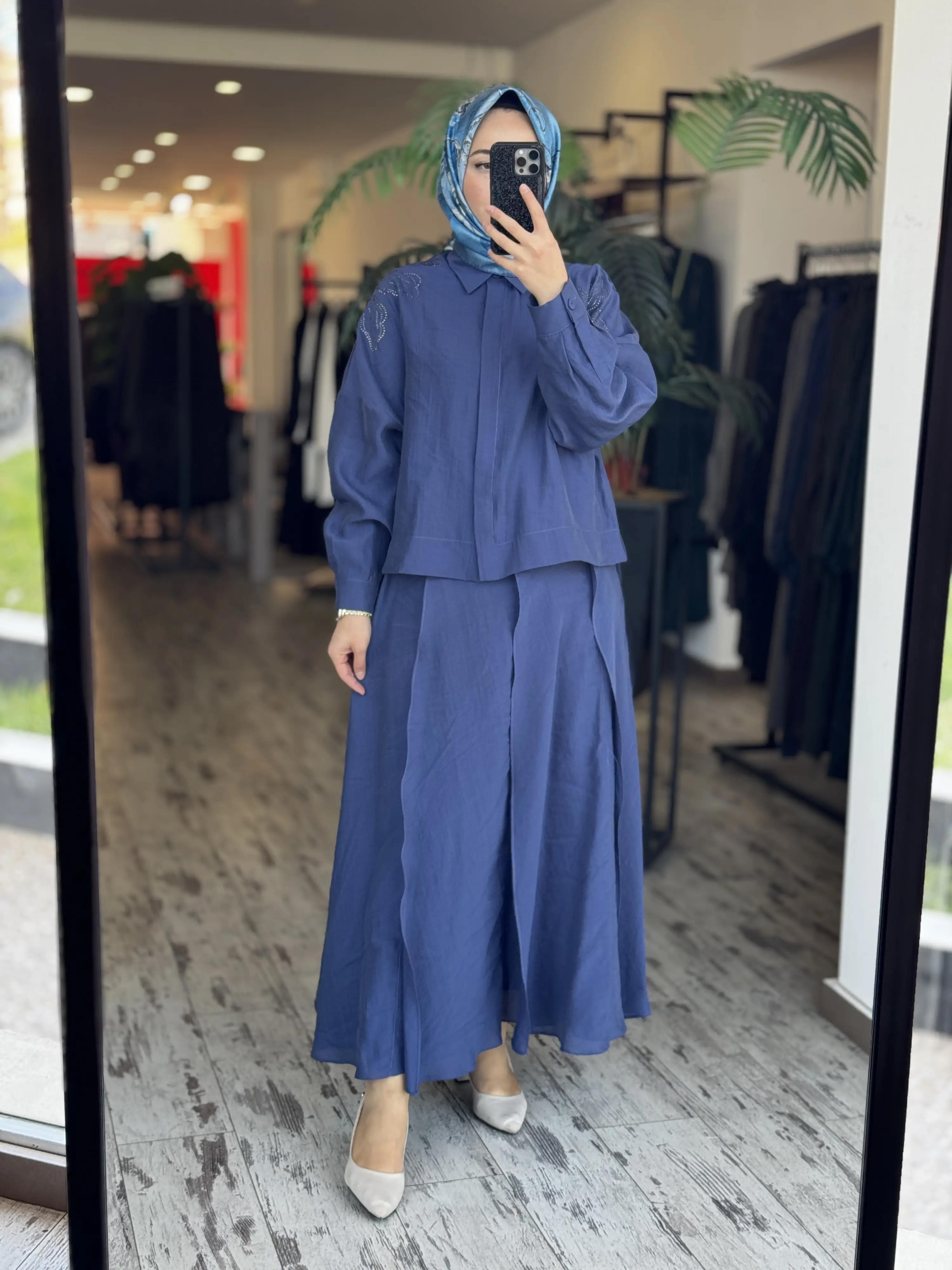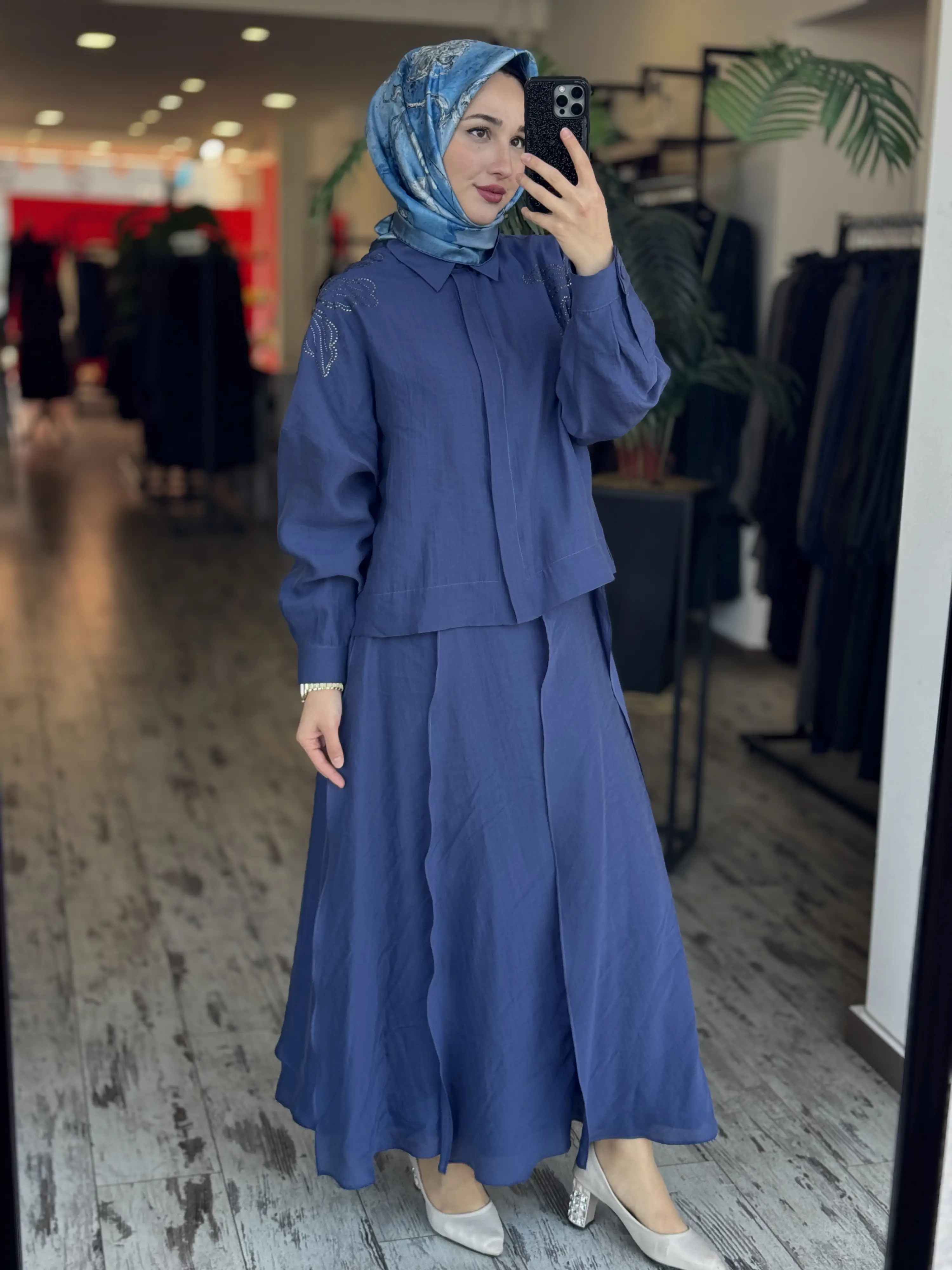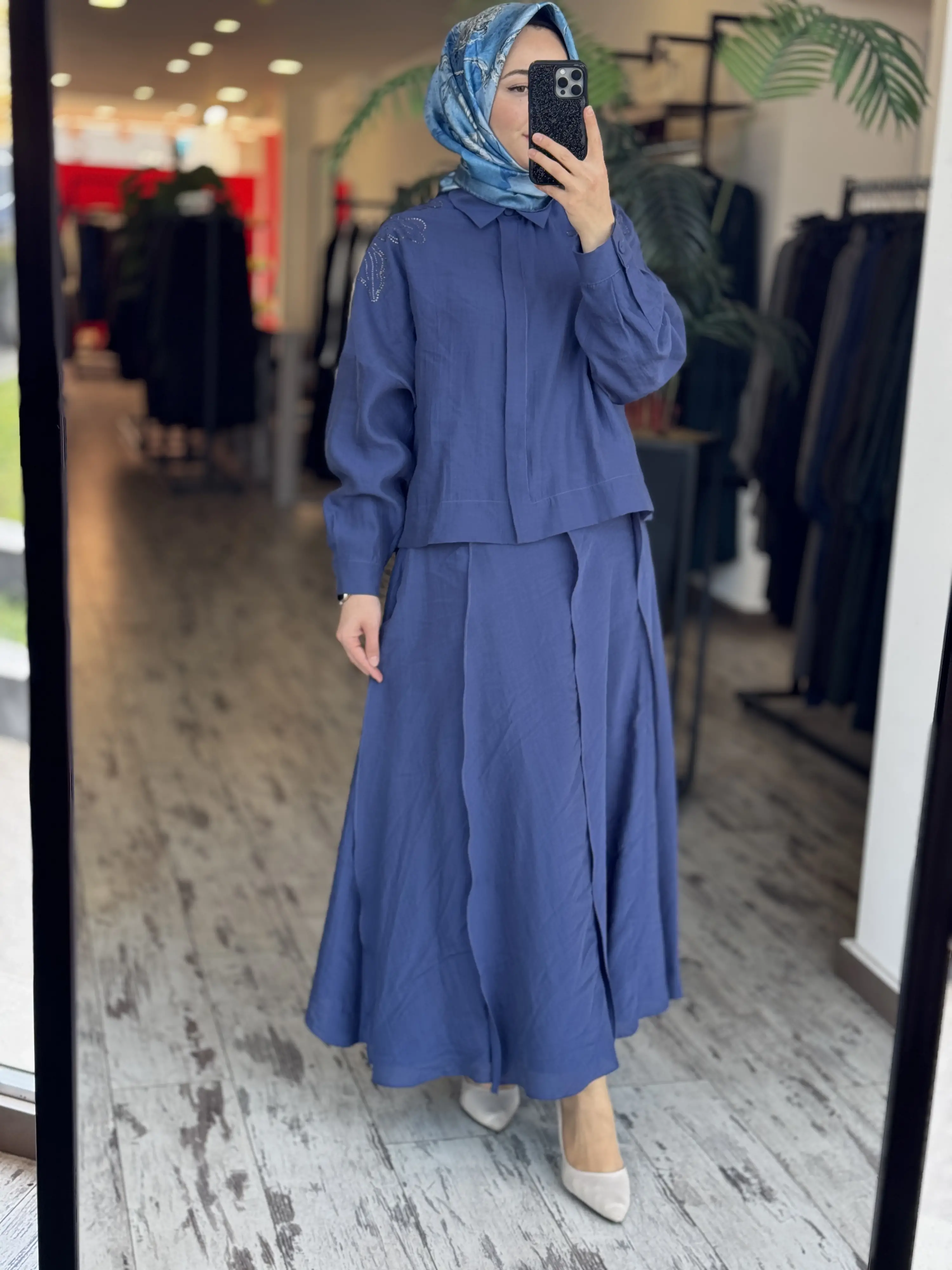 Qupra Omuzu Taşlı Parça Deteyalı Gömlek Etek Takım WAD1270