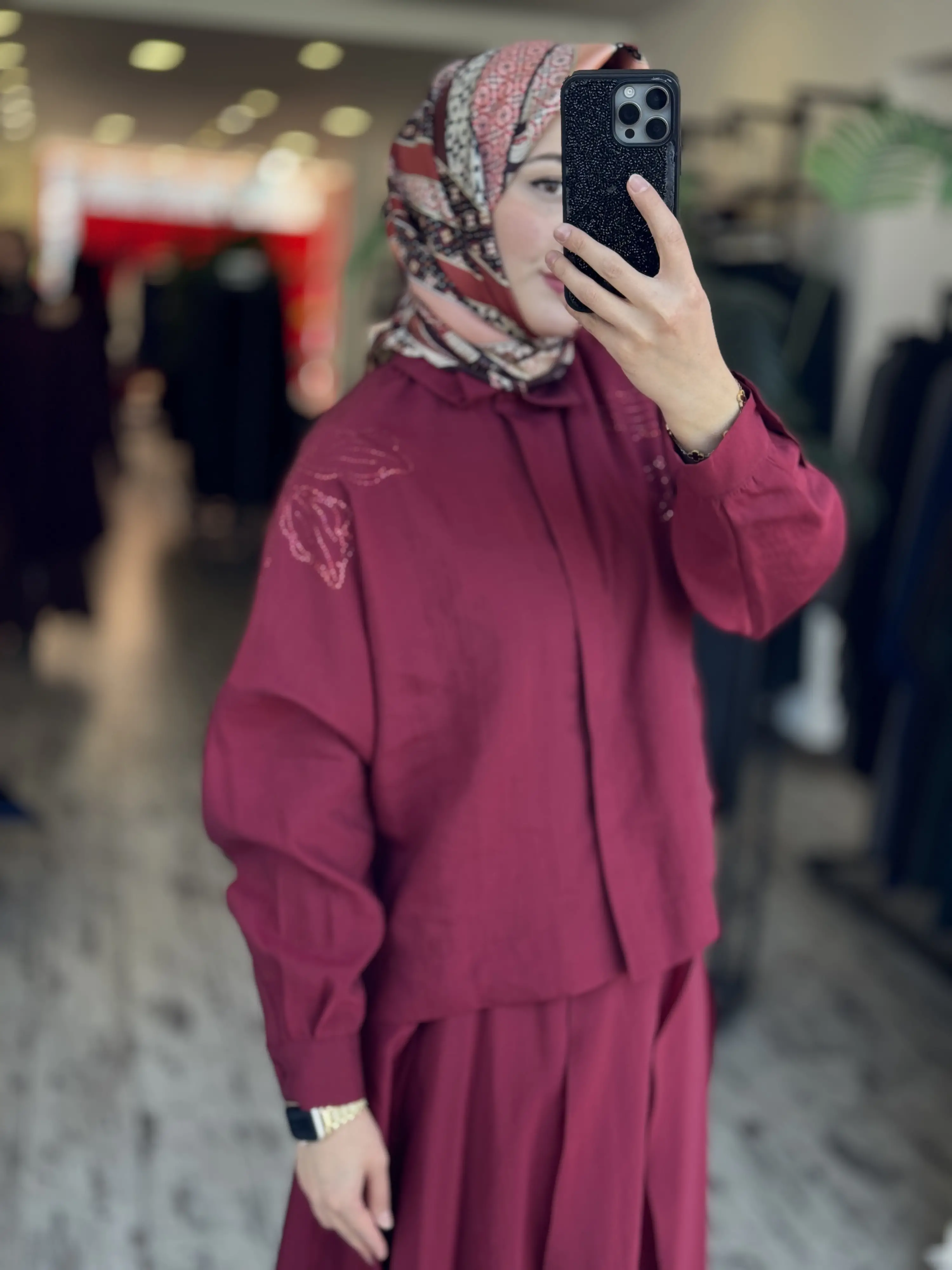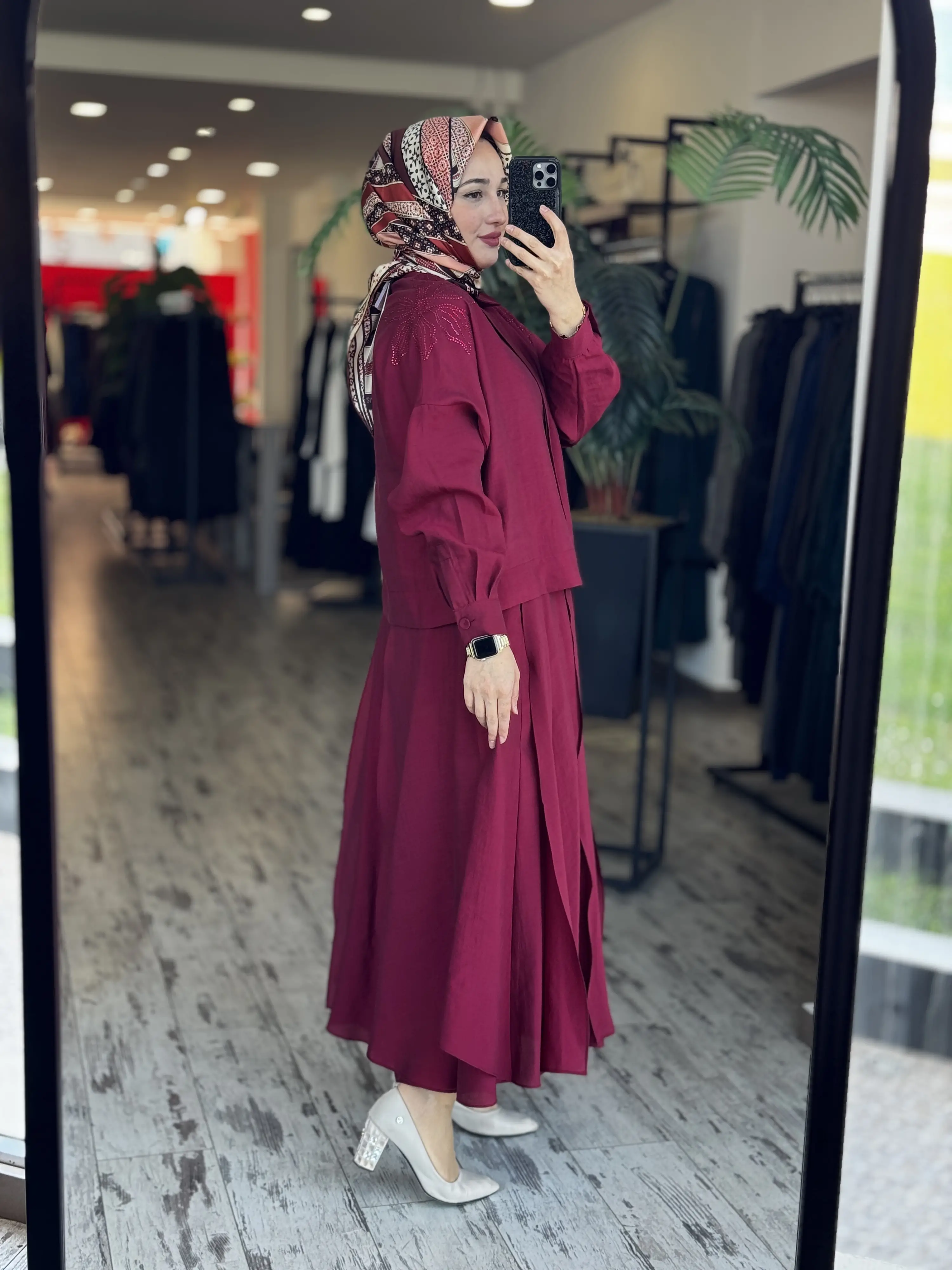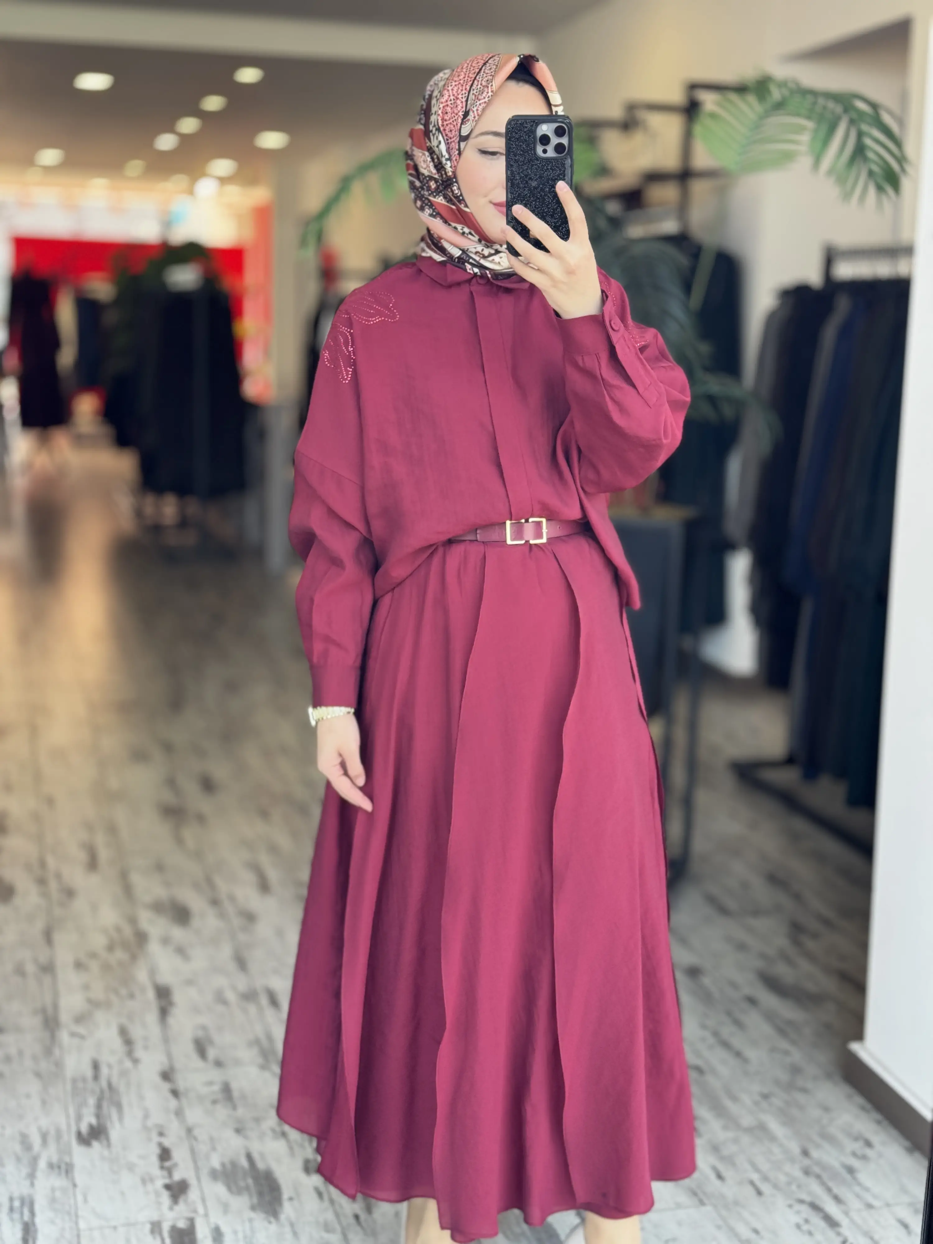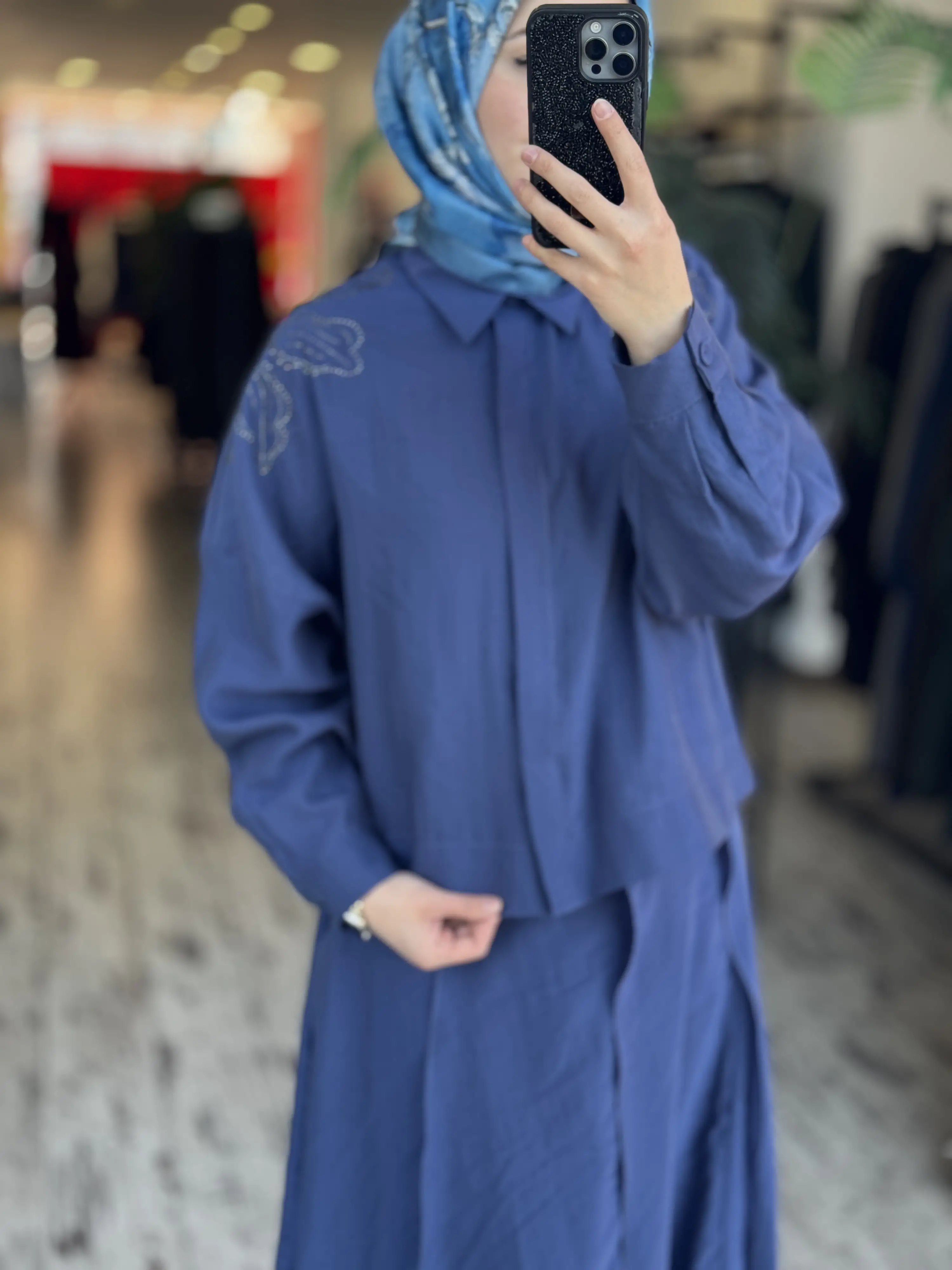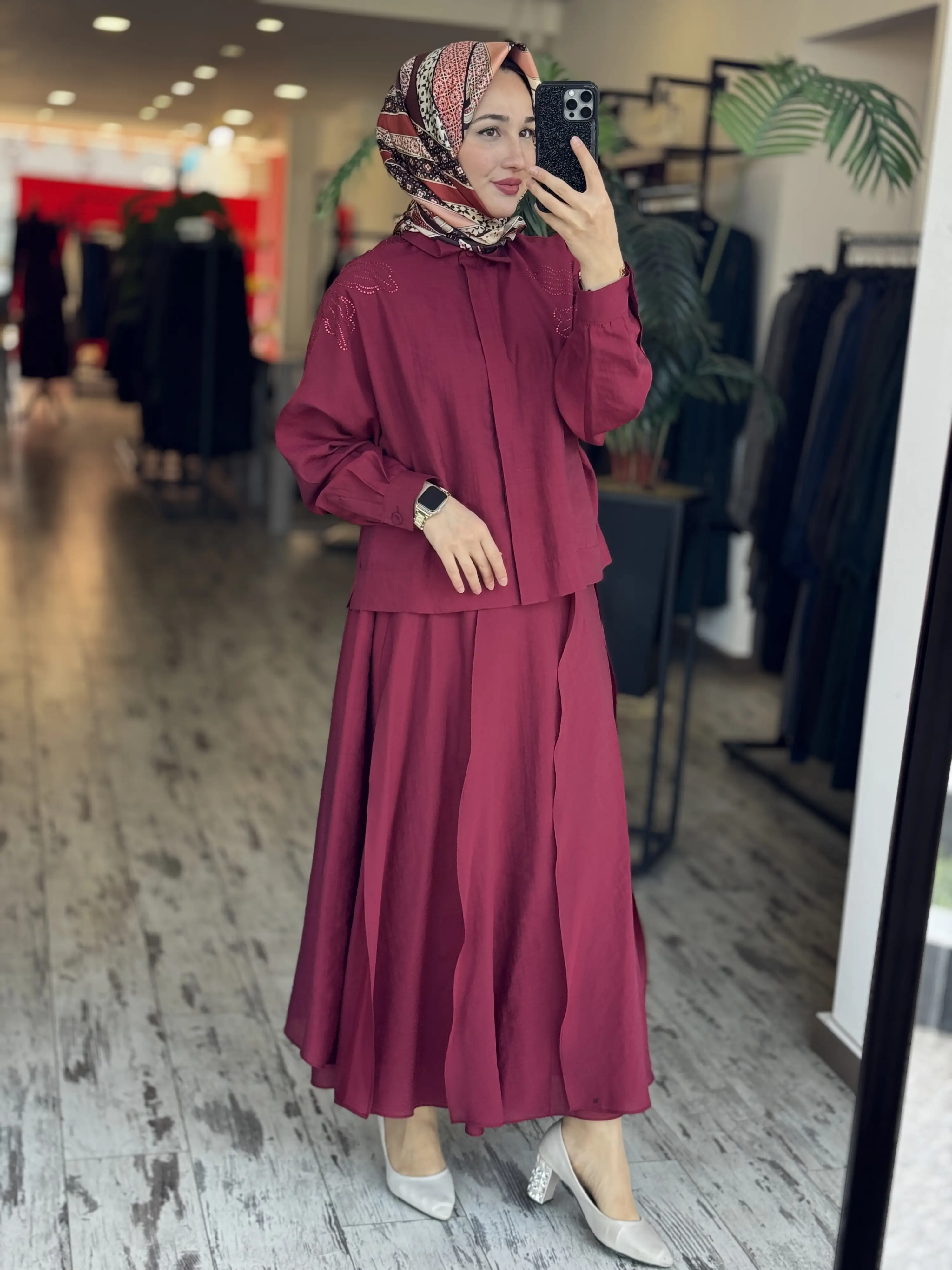 Qupra Omuzu Taşlı Parça Deteyalı Gömlek Etek Takım WAD1270