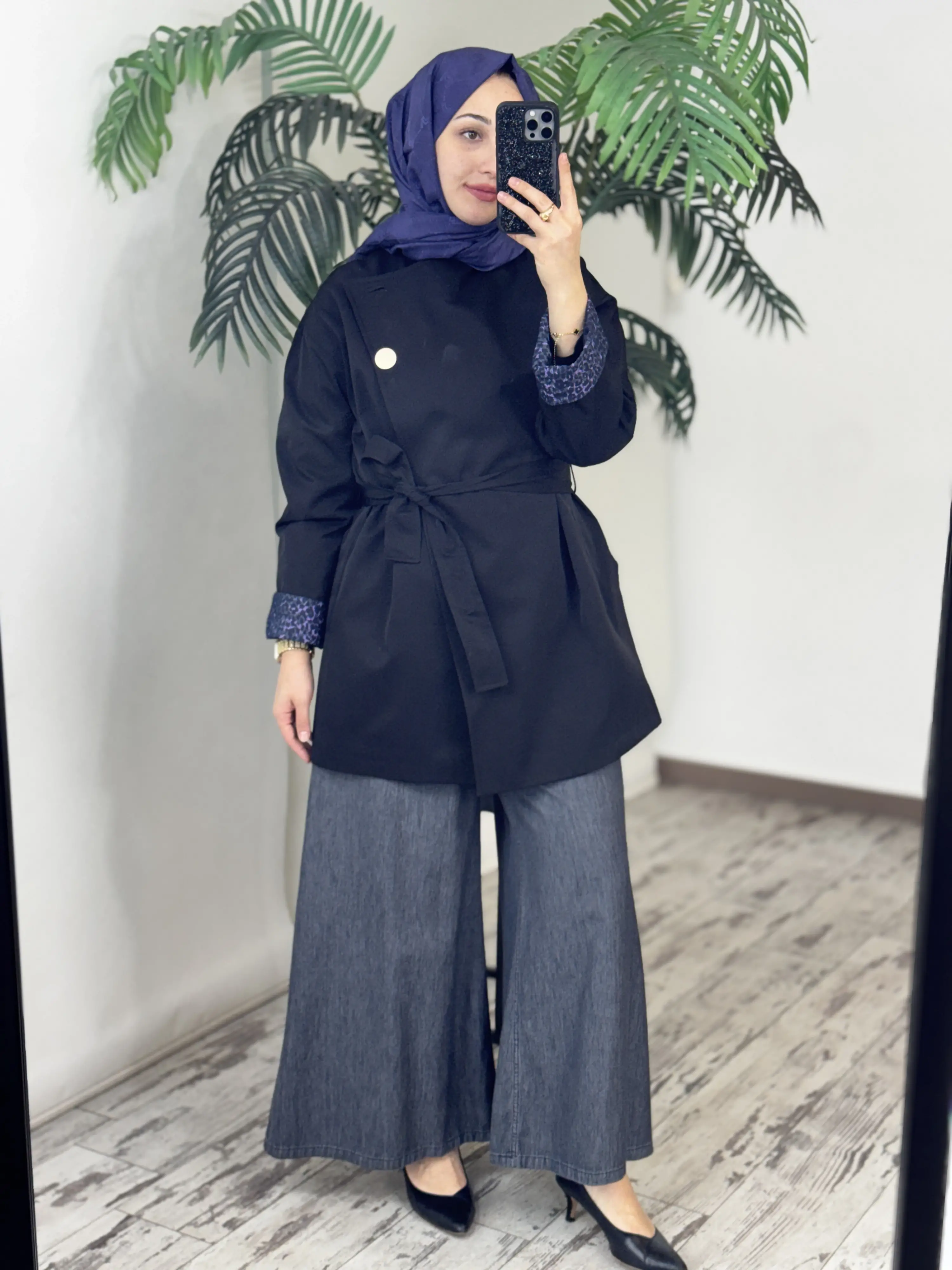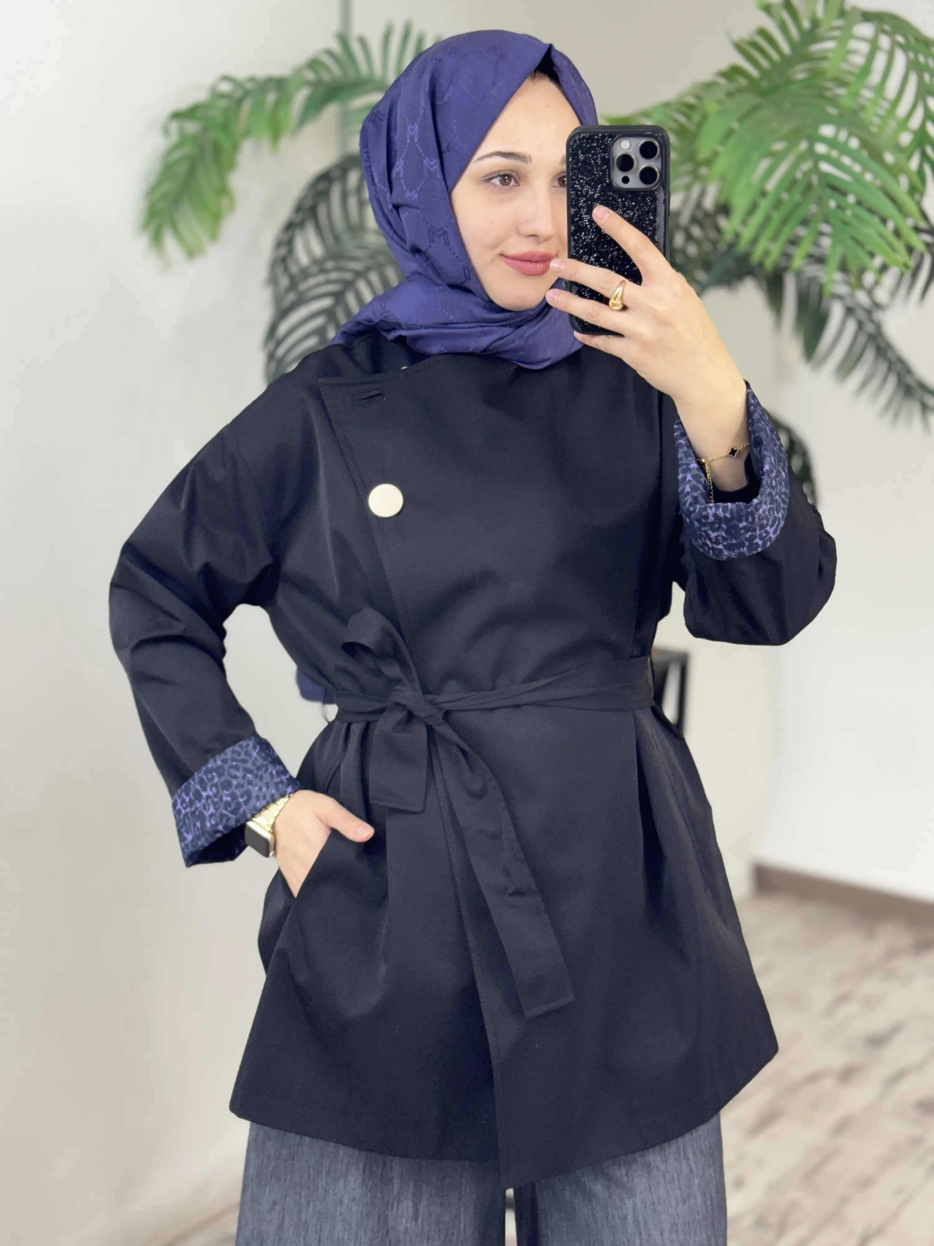 Ghisa Manşet Detaylı Siyah Ceket Trench G2699