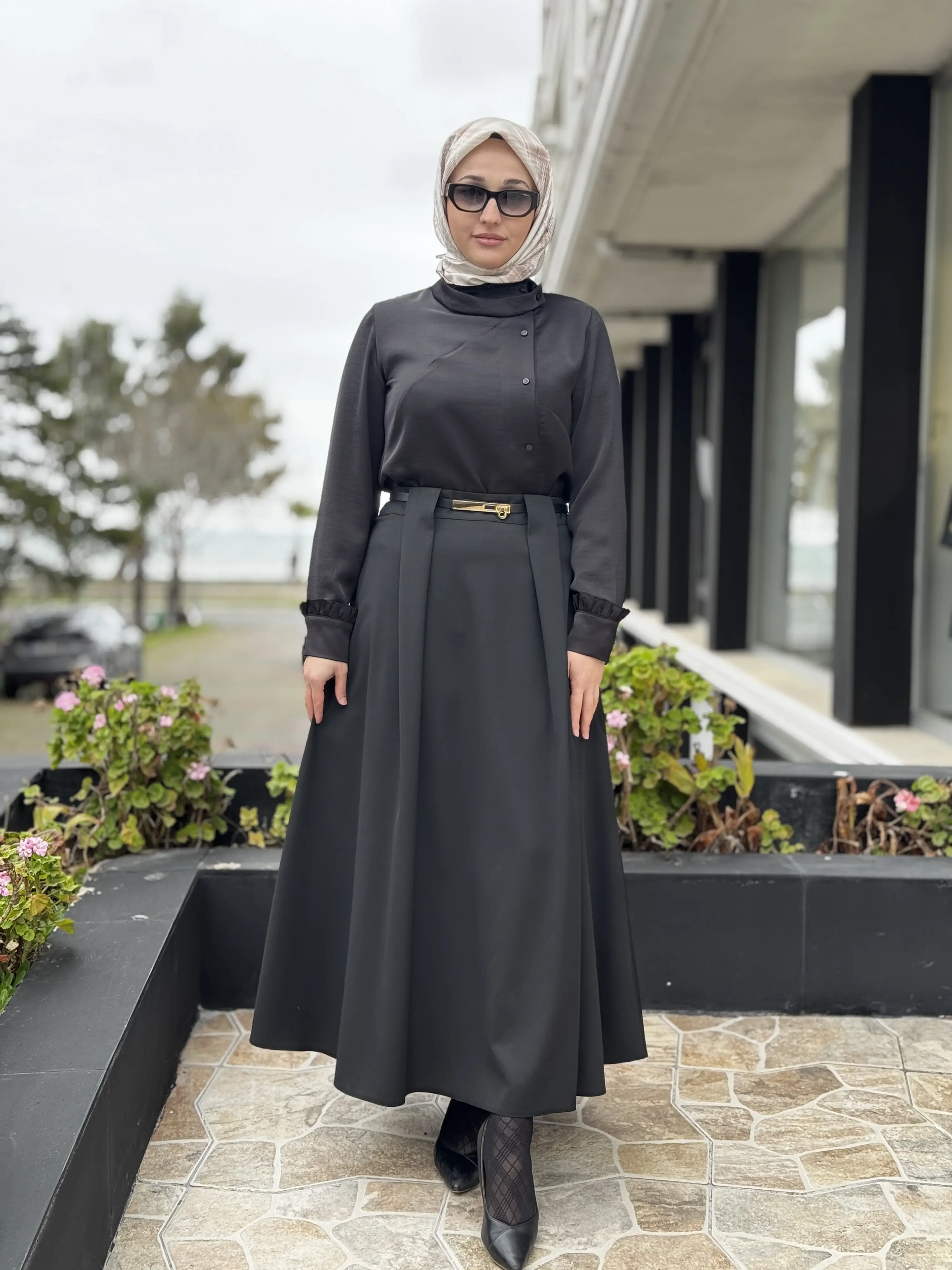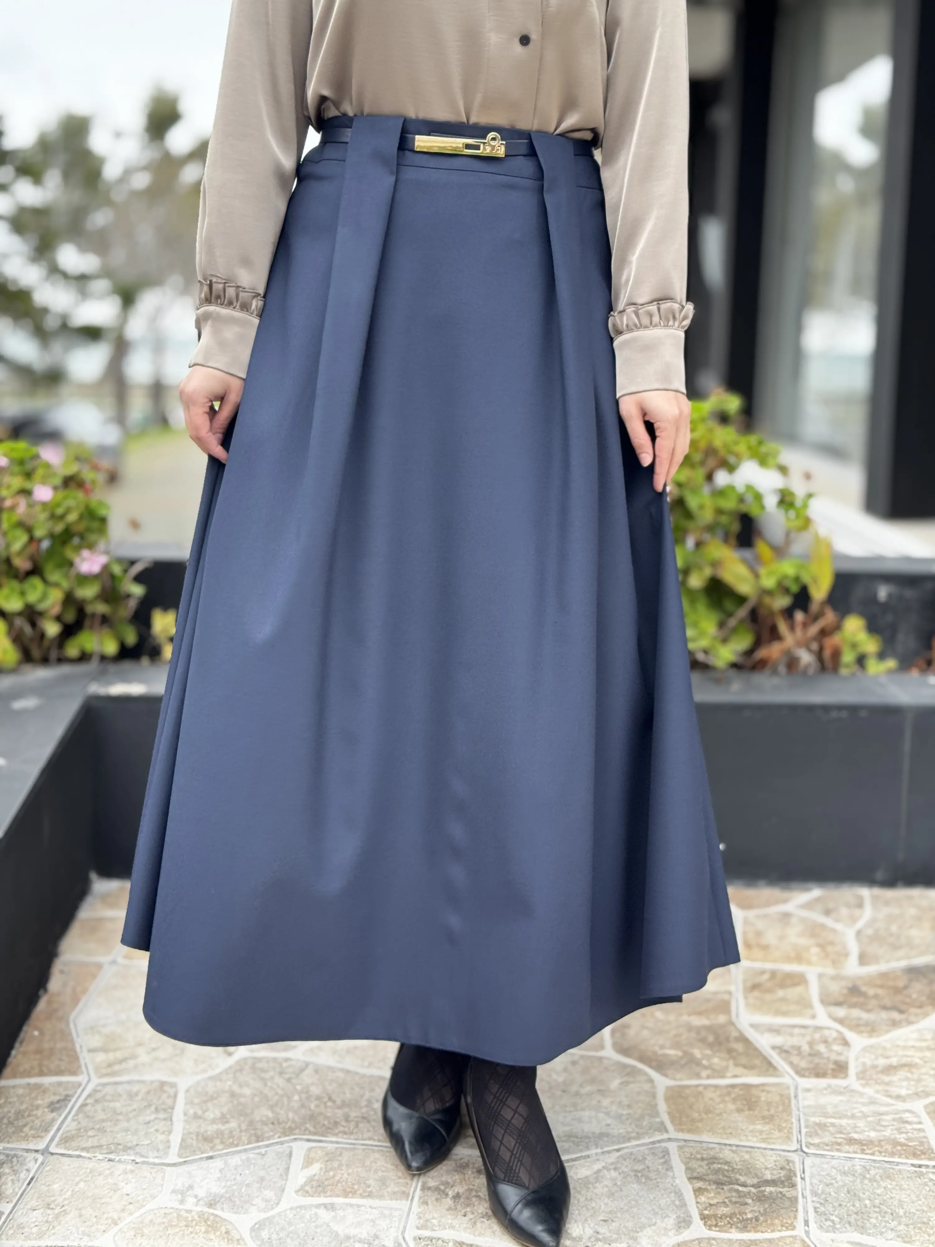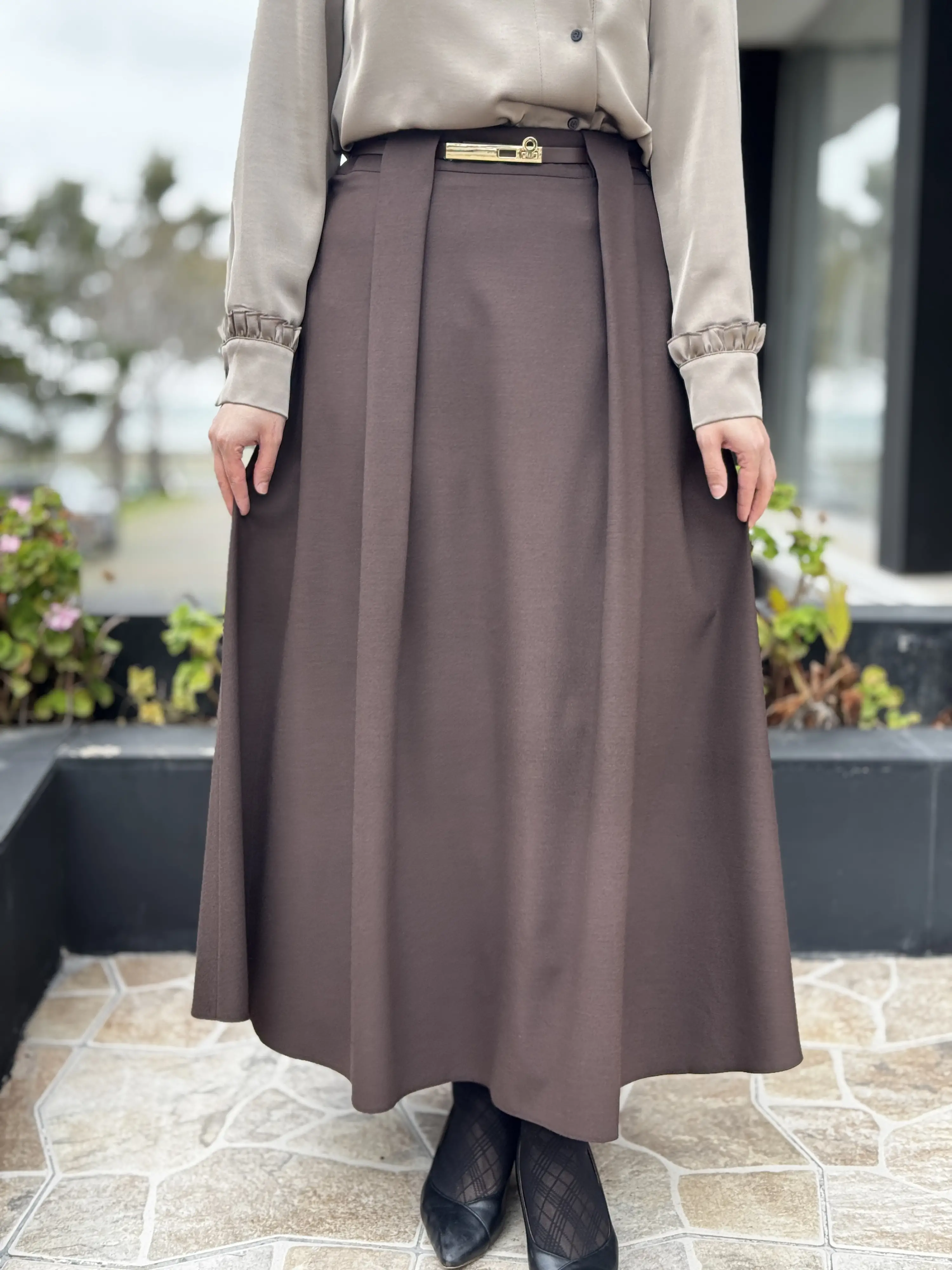 Ghisa Kemerli Pile Detaylı Etek G5385