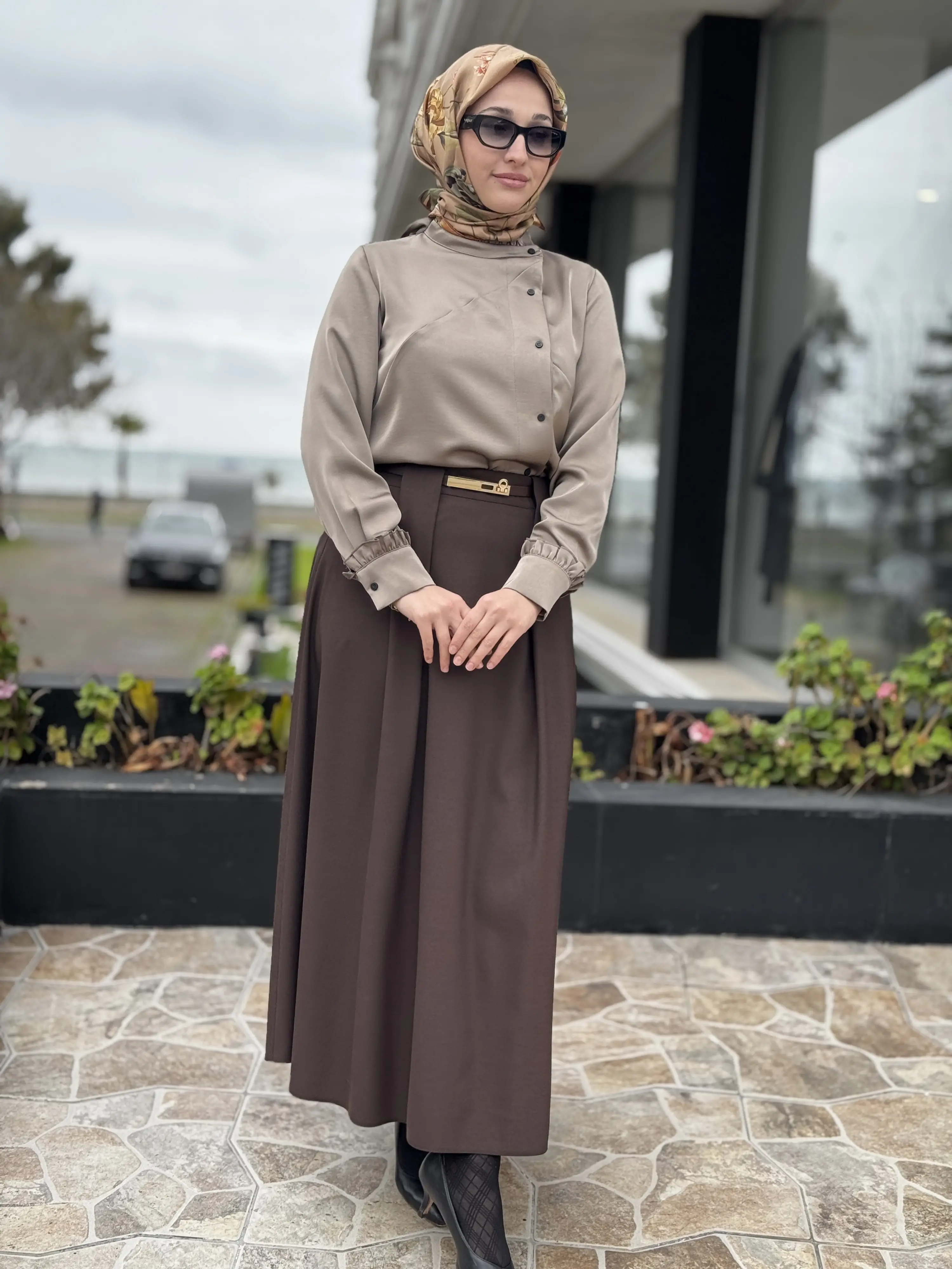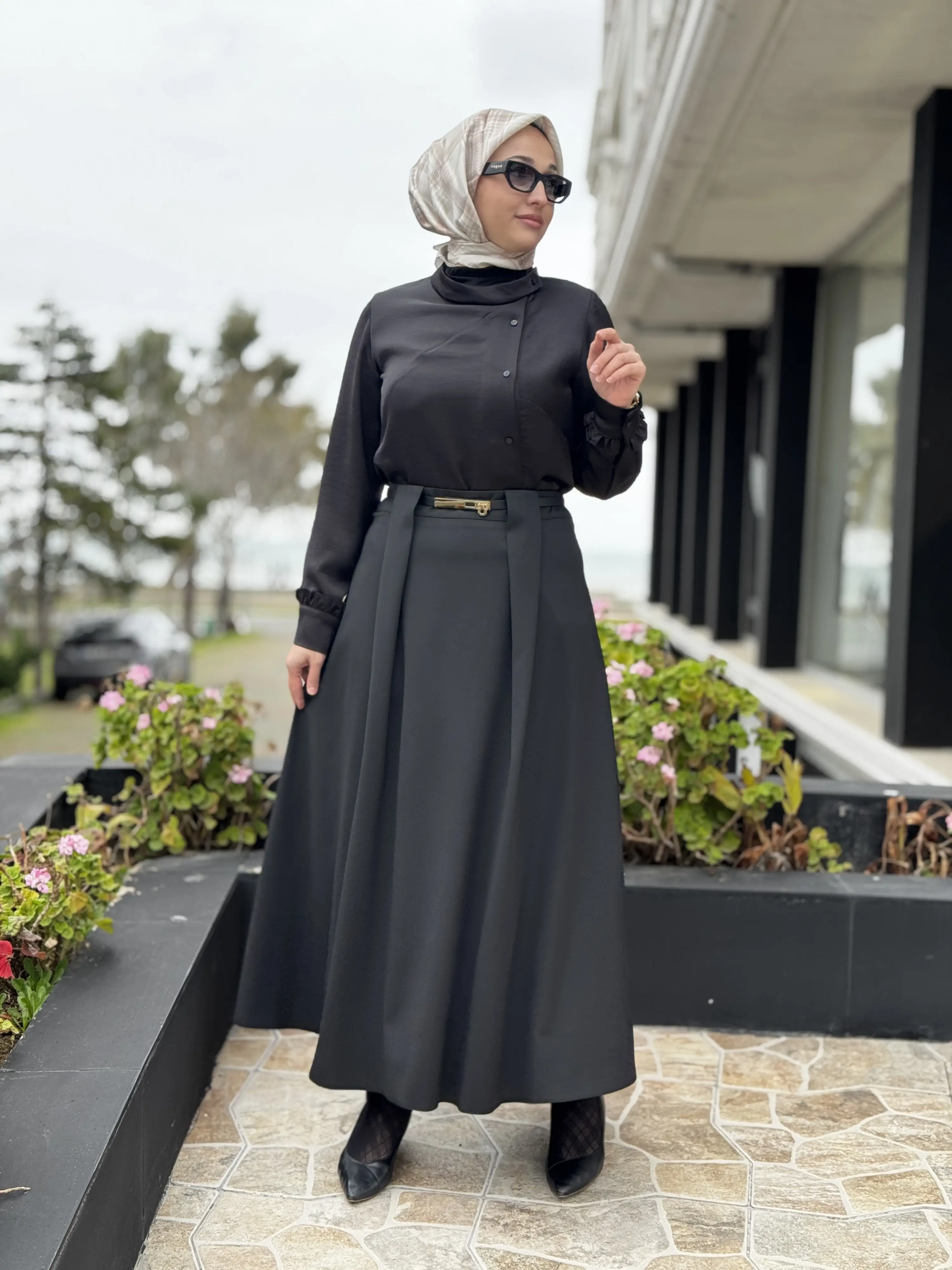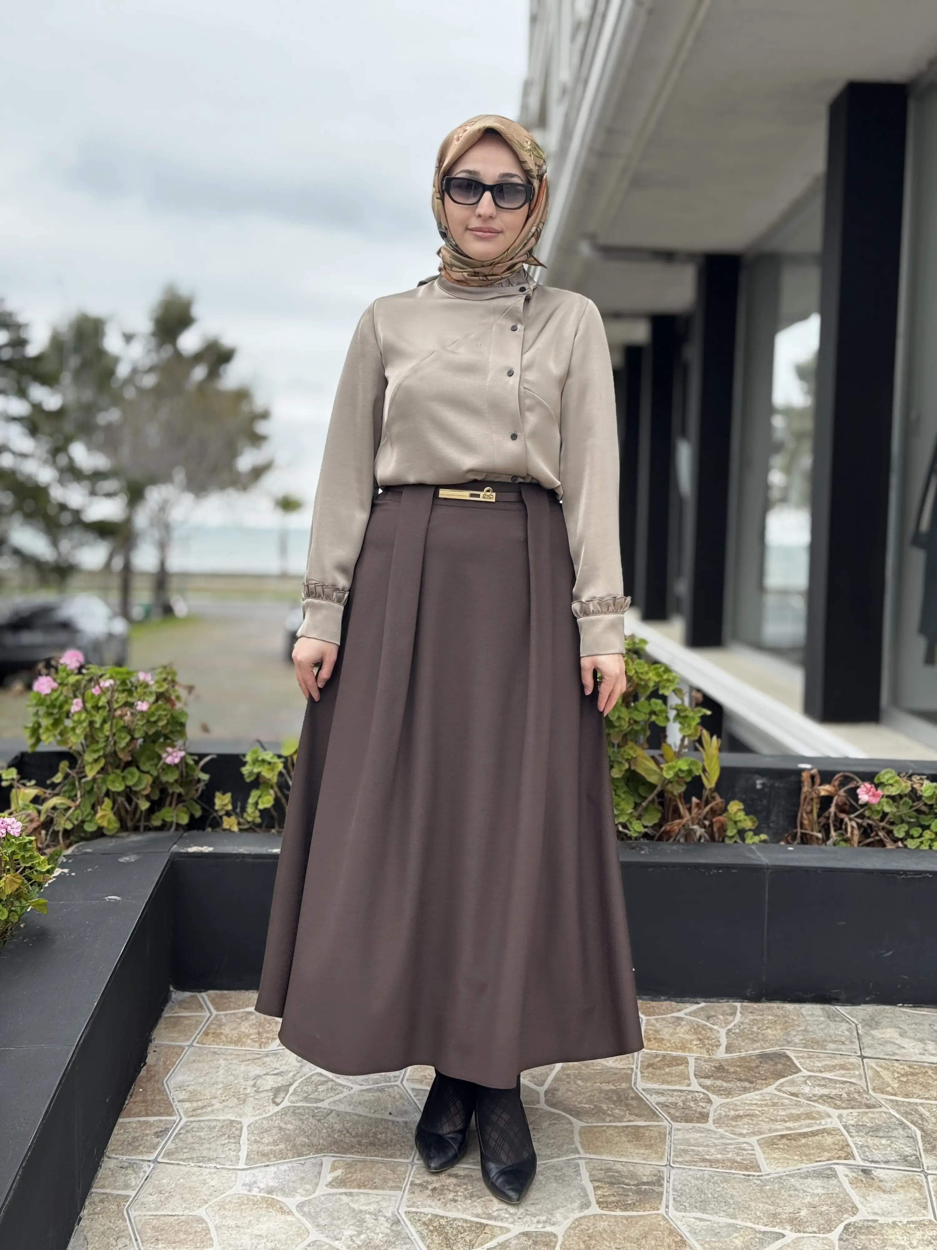 Ghisa Kemerli Pile Detaylı Etek G5385