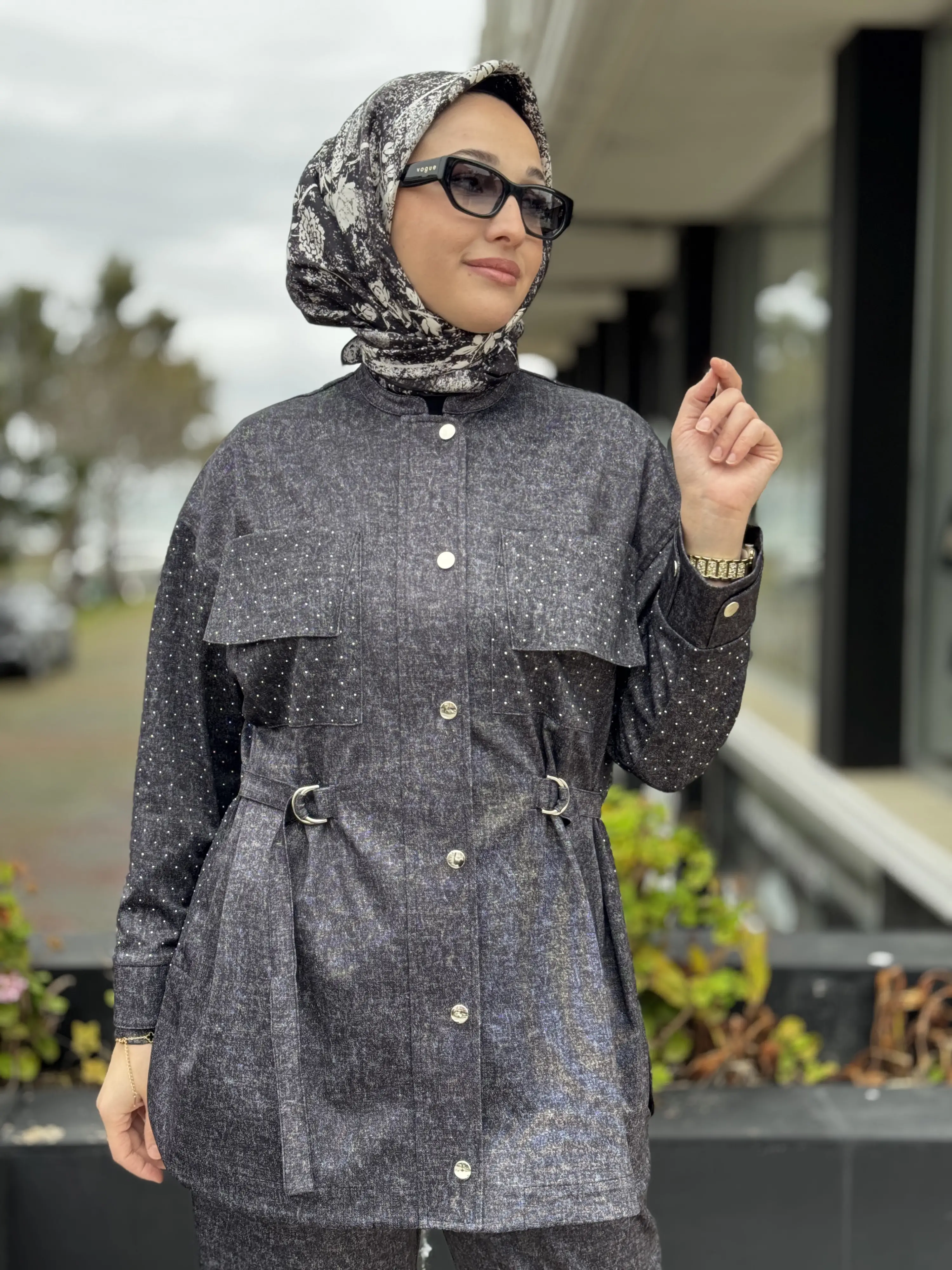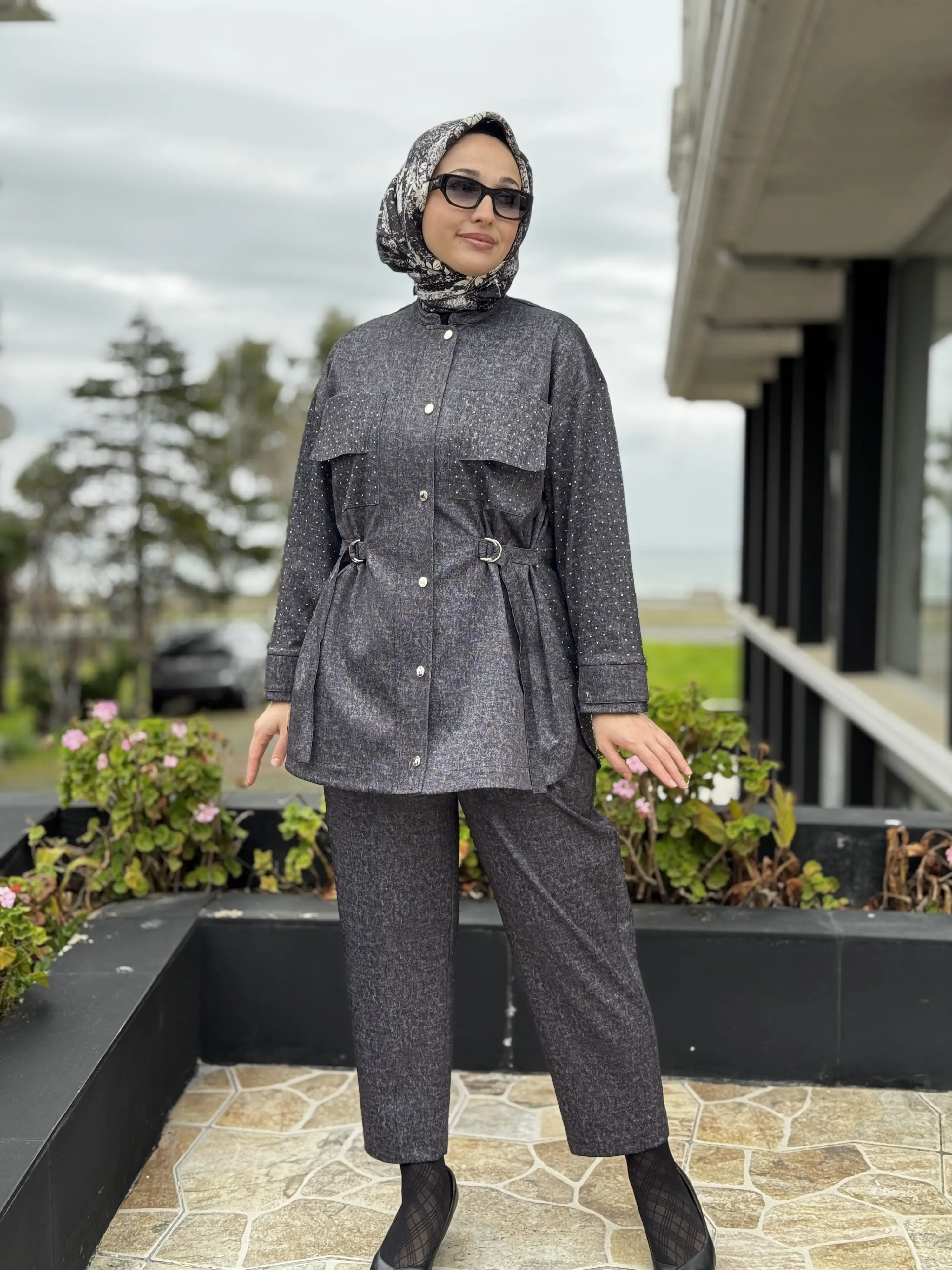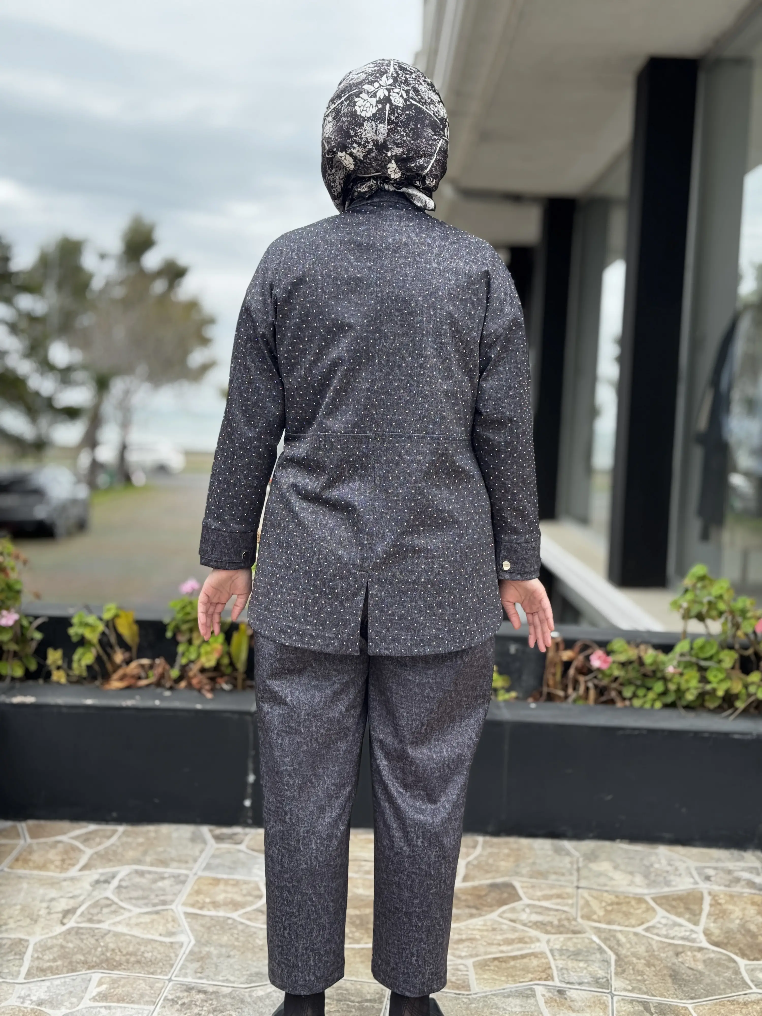 SİYAH G9186 Taş Baskılı Kot Görünümlü Kap Pantolon Takım