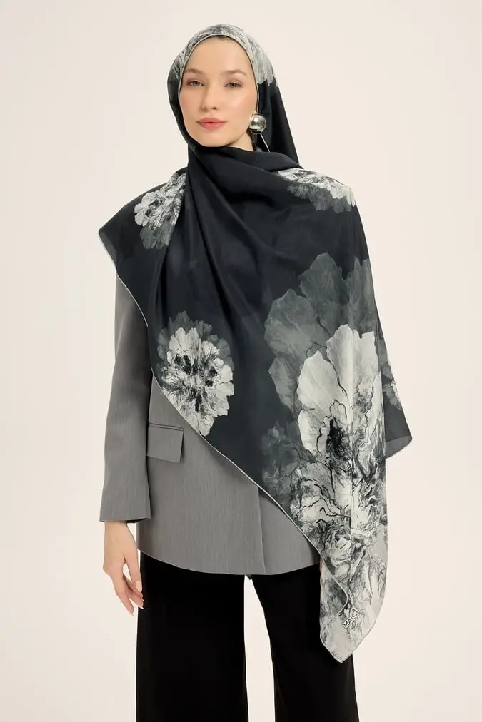 SİYAH Maisa Katre 70x190 Pamuk İpek Şal