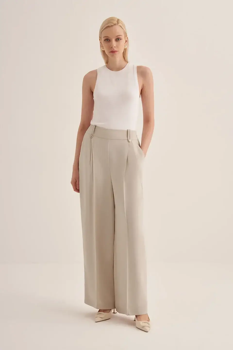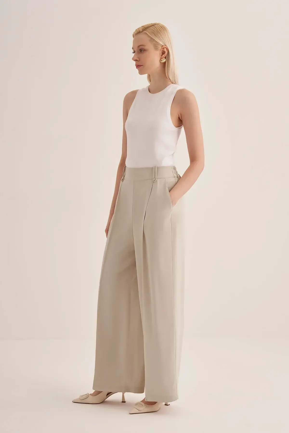 Clande Önü Nervürlü Cepli Palazzo Pantolon
