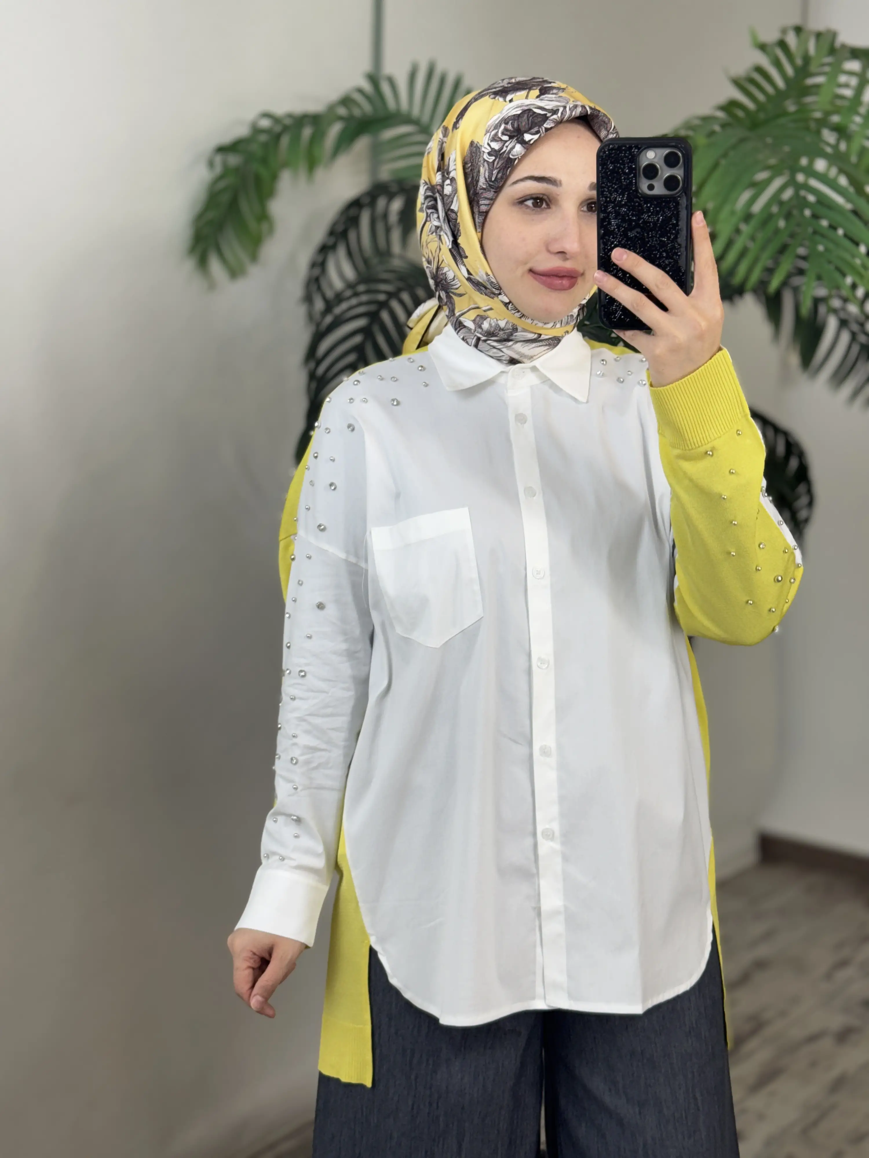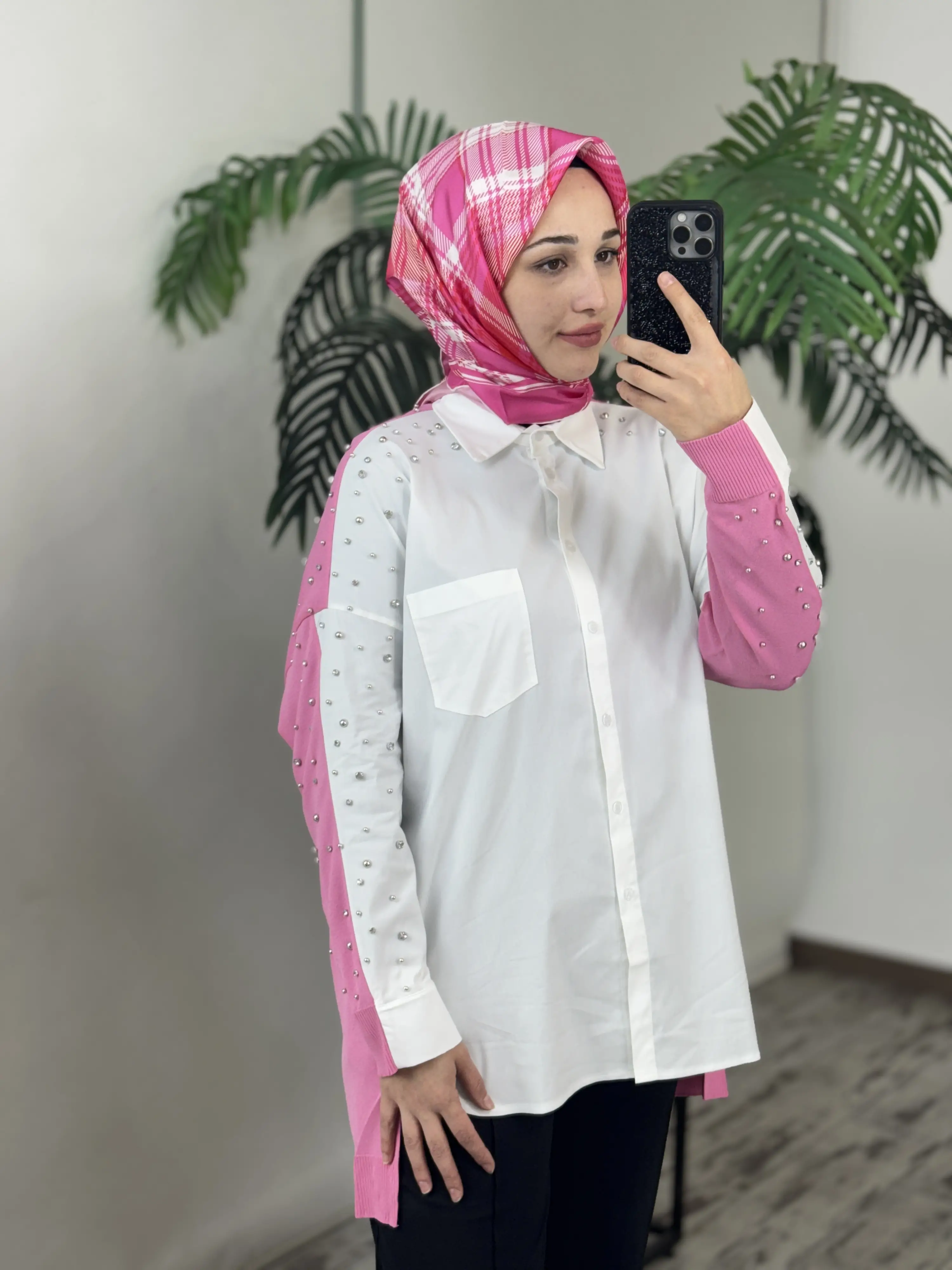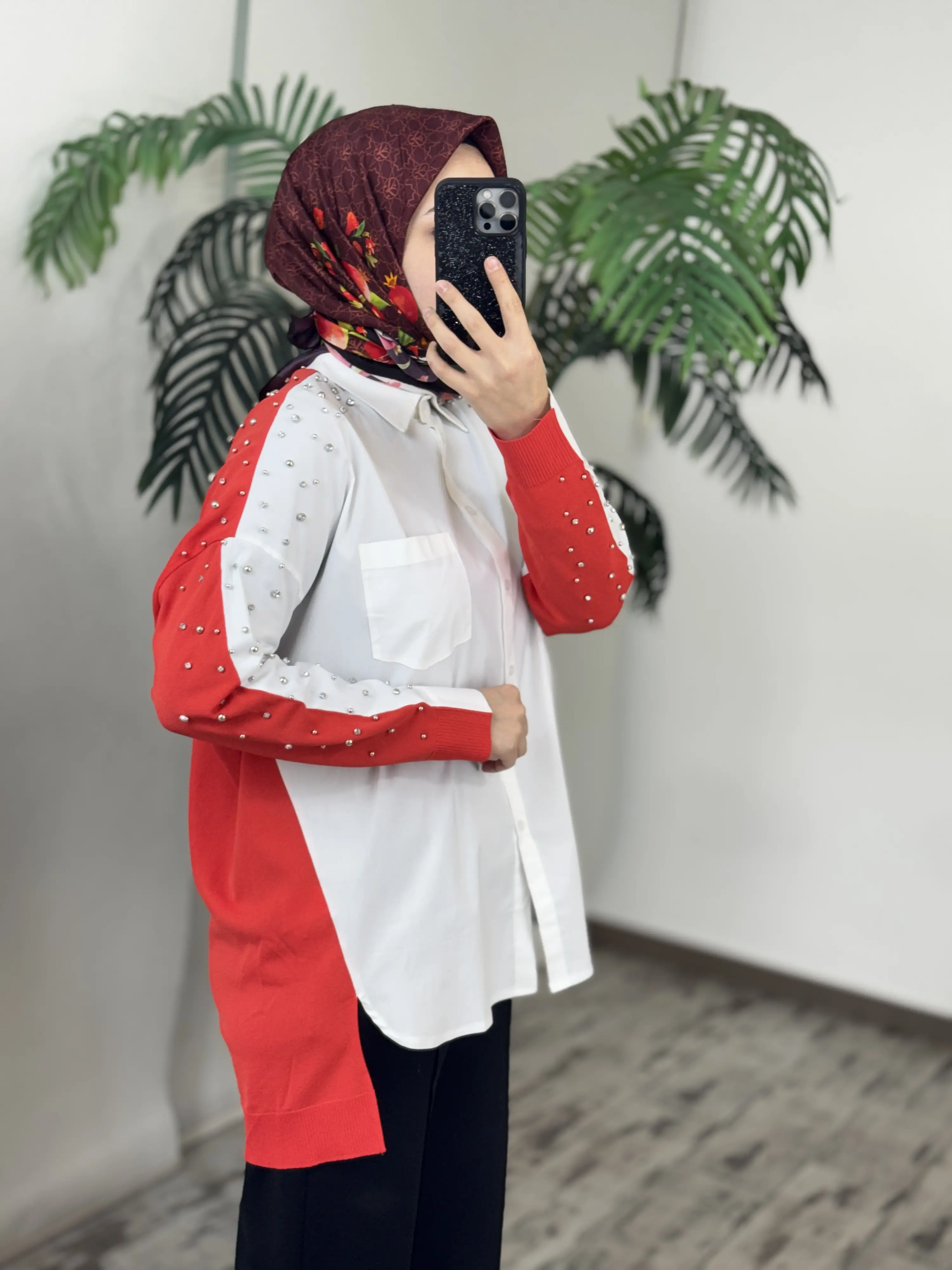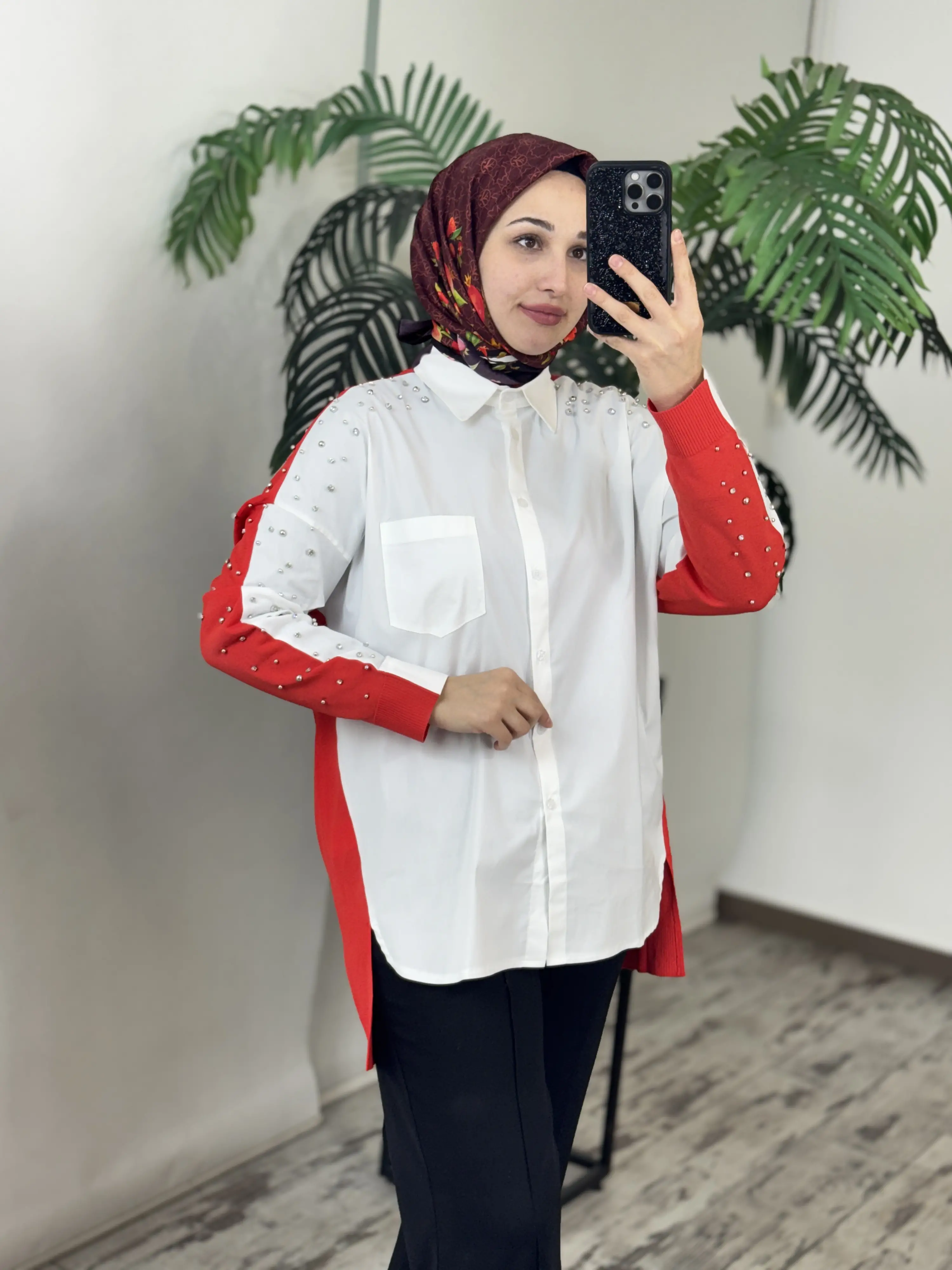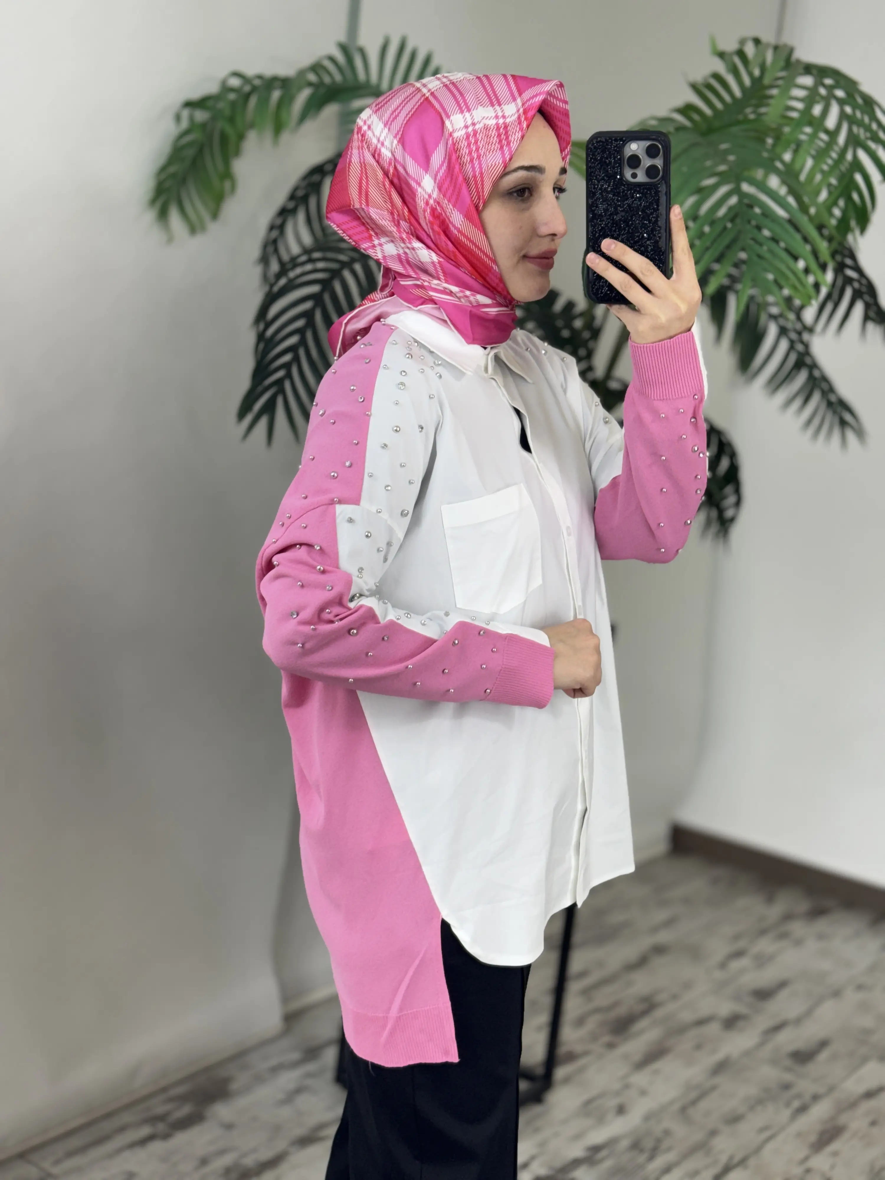 Tığ Triko Arkası Triko Kombinli Omuzları Taşlı Gömlek GML3072