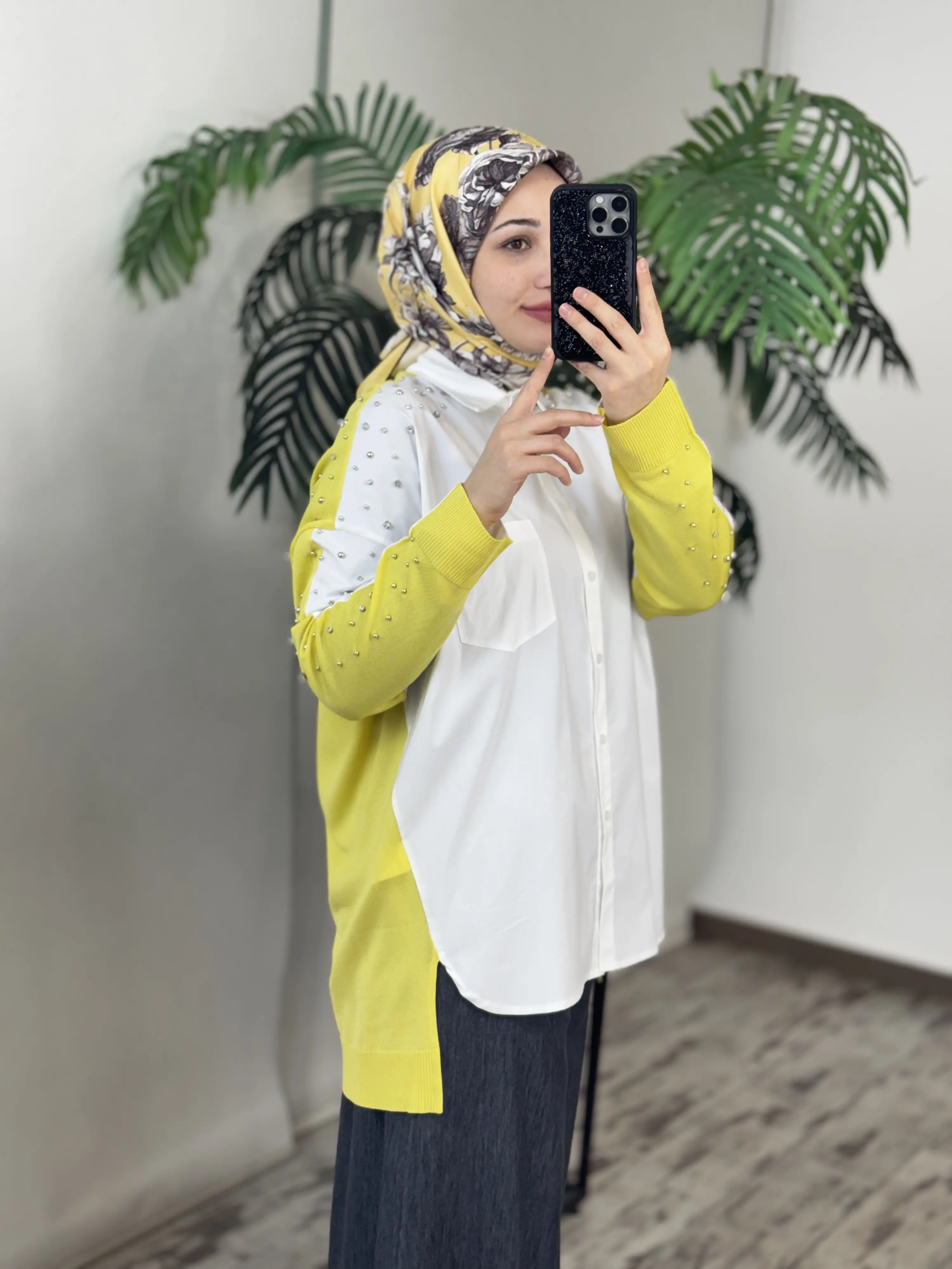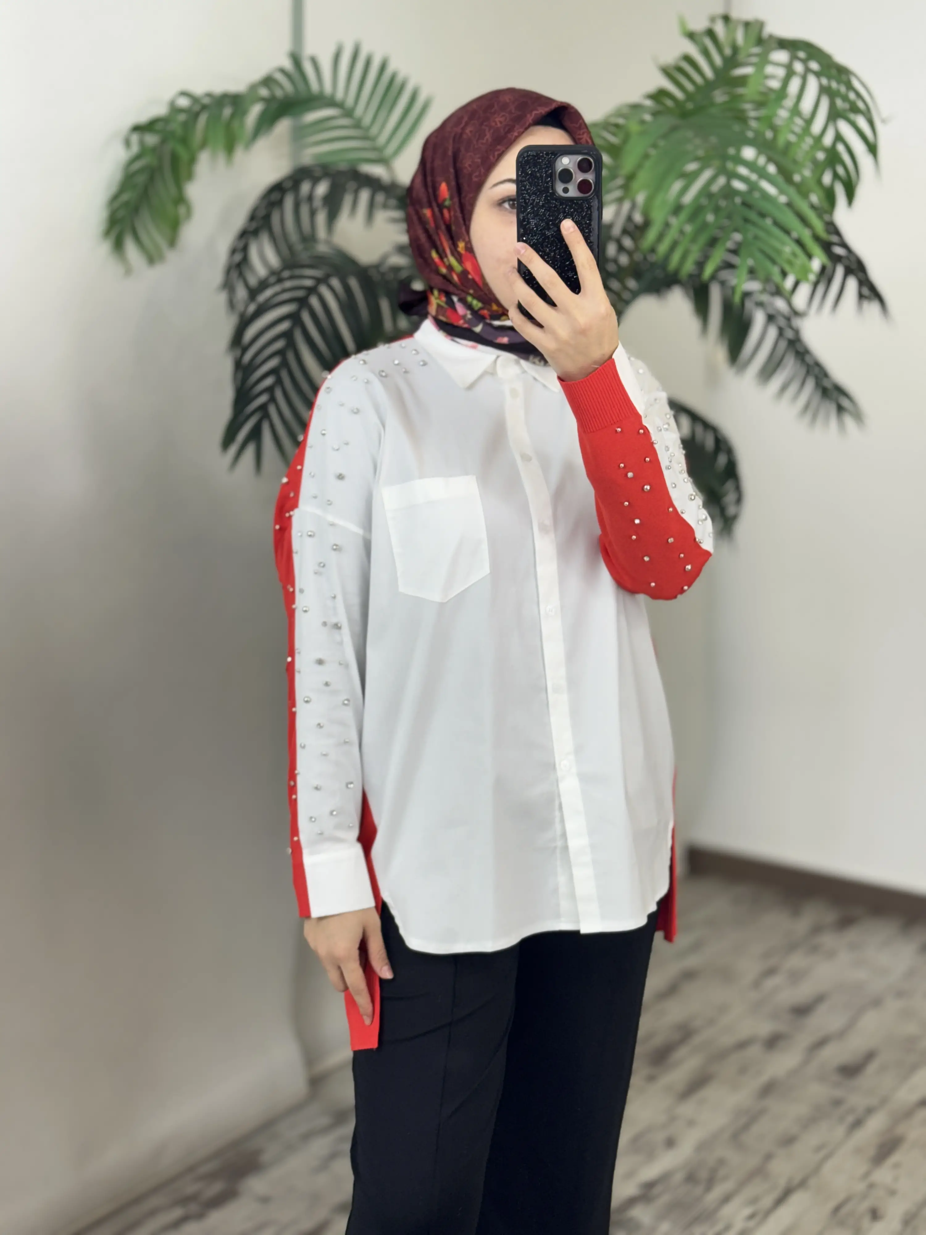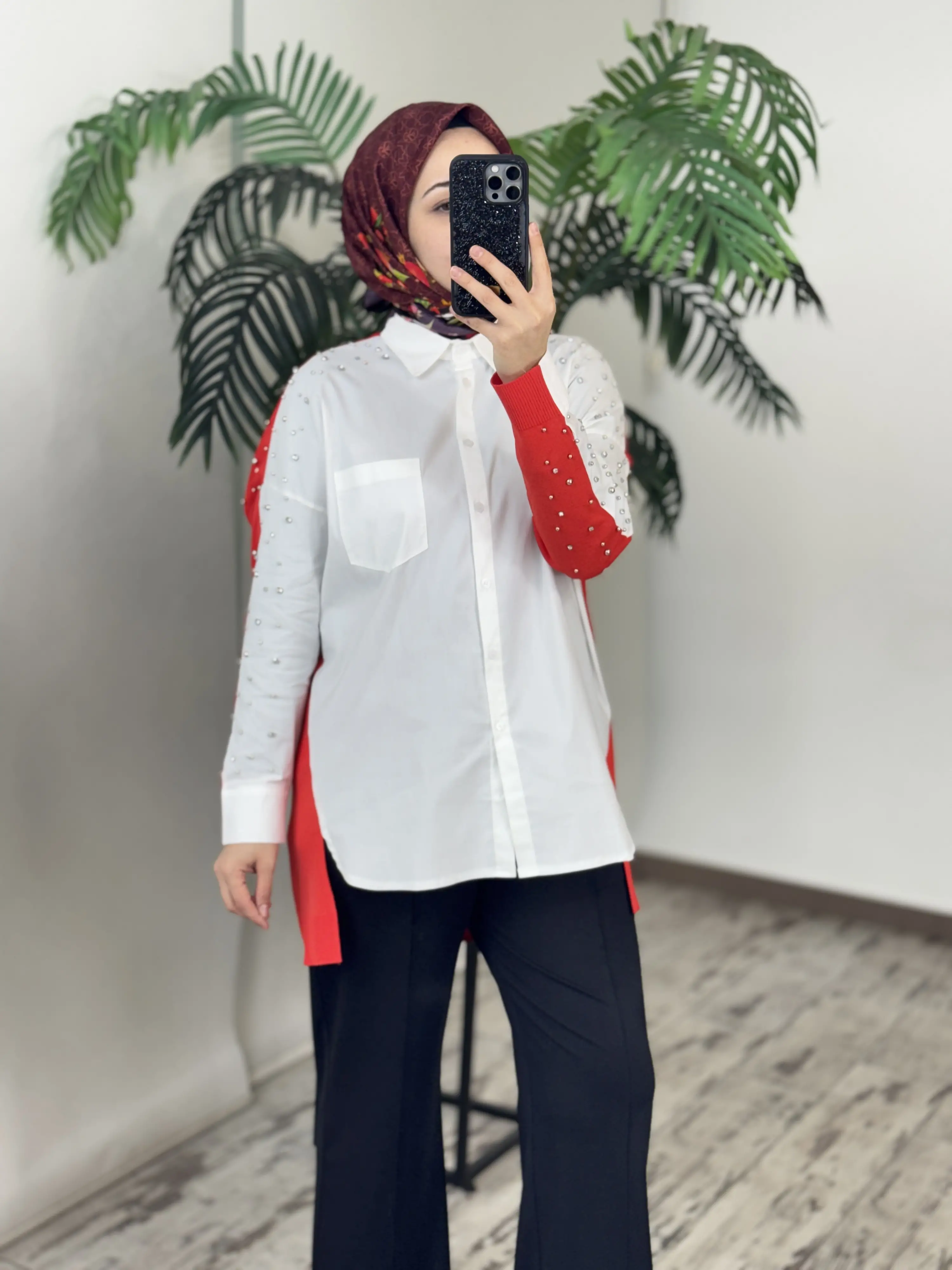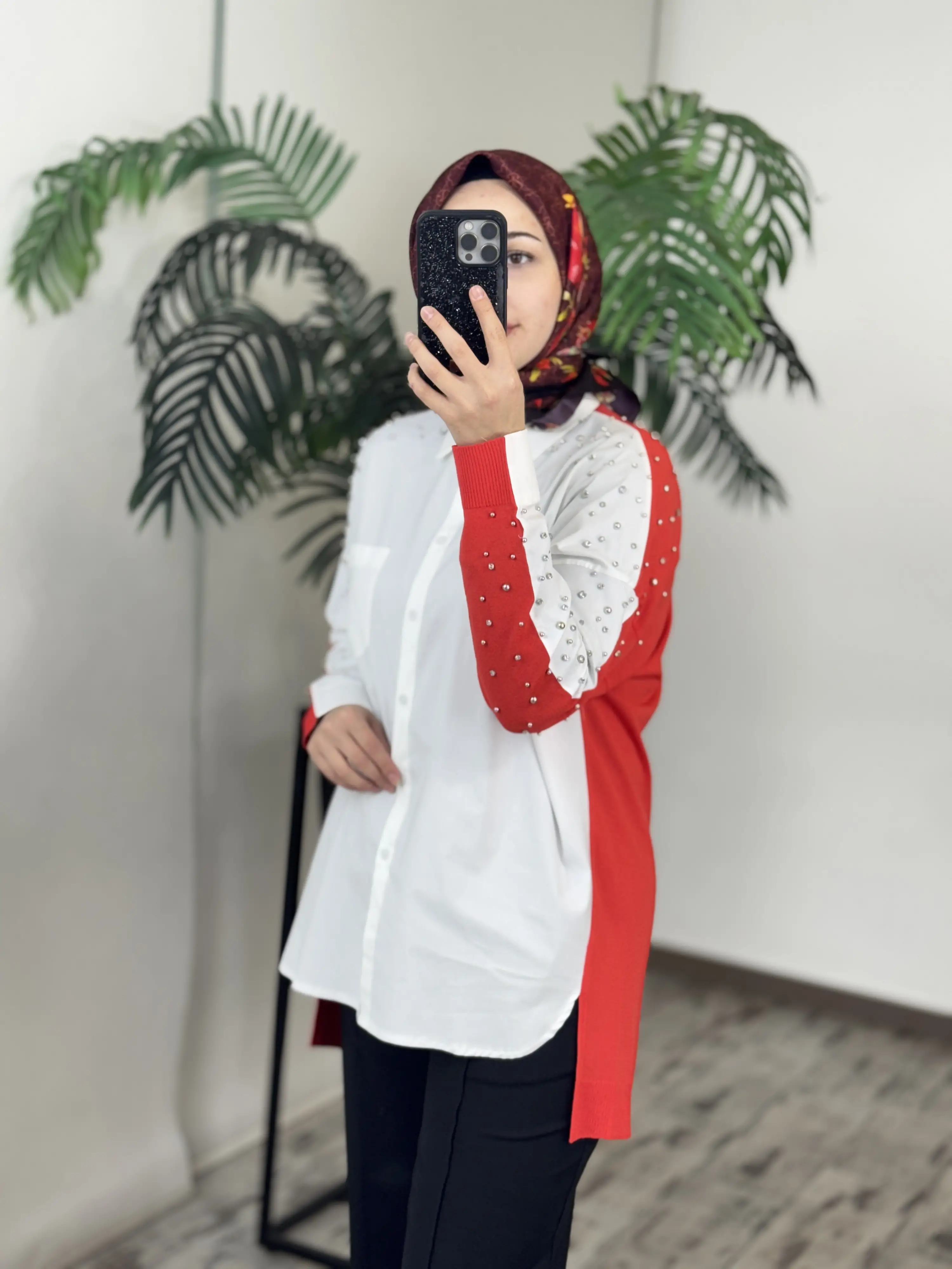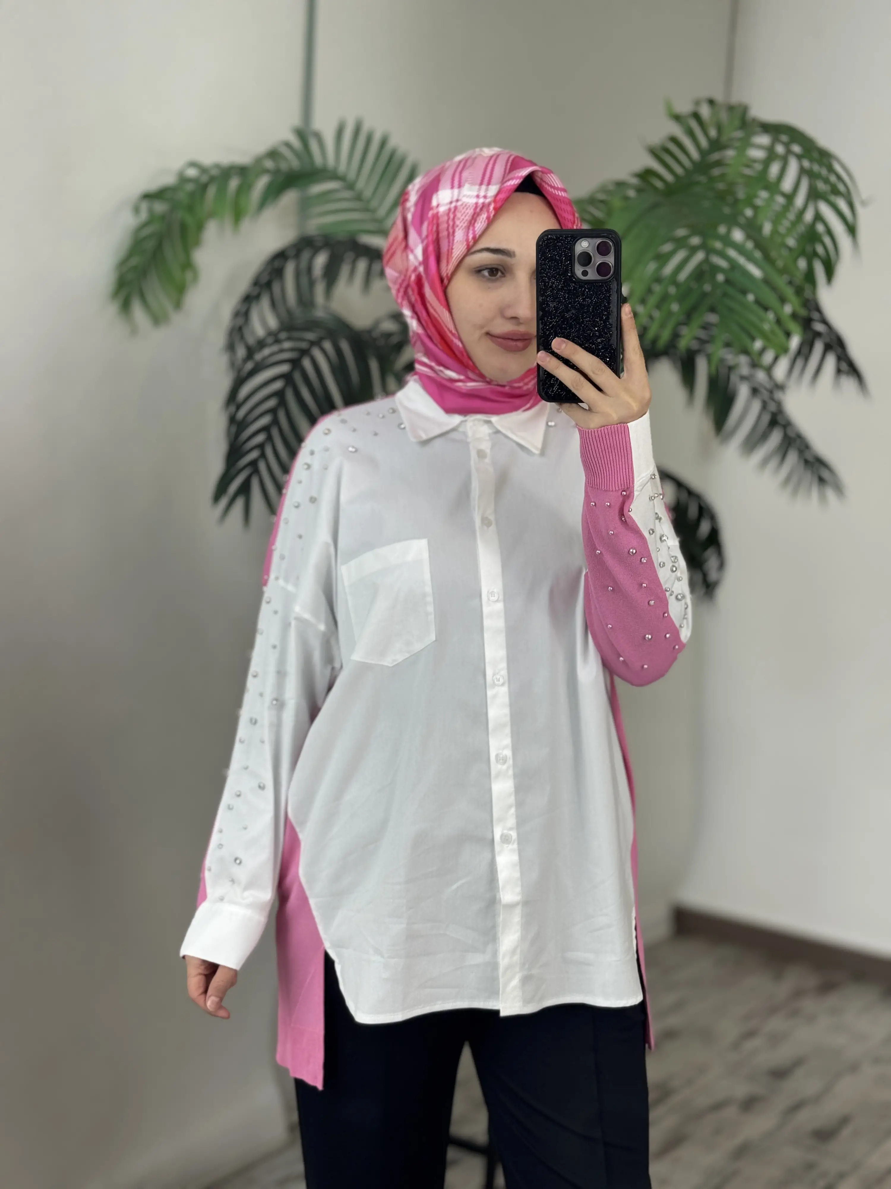Tığ Triko Arkası Triko Kombinli Omuzları Taşlı Gömlek GML3072