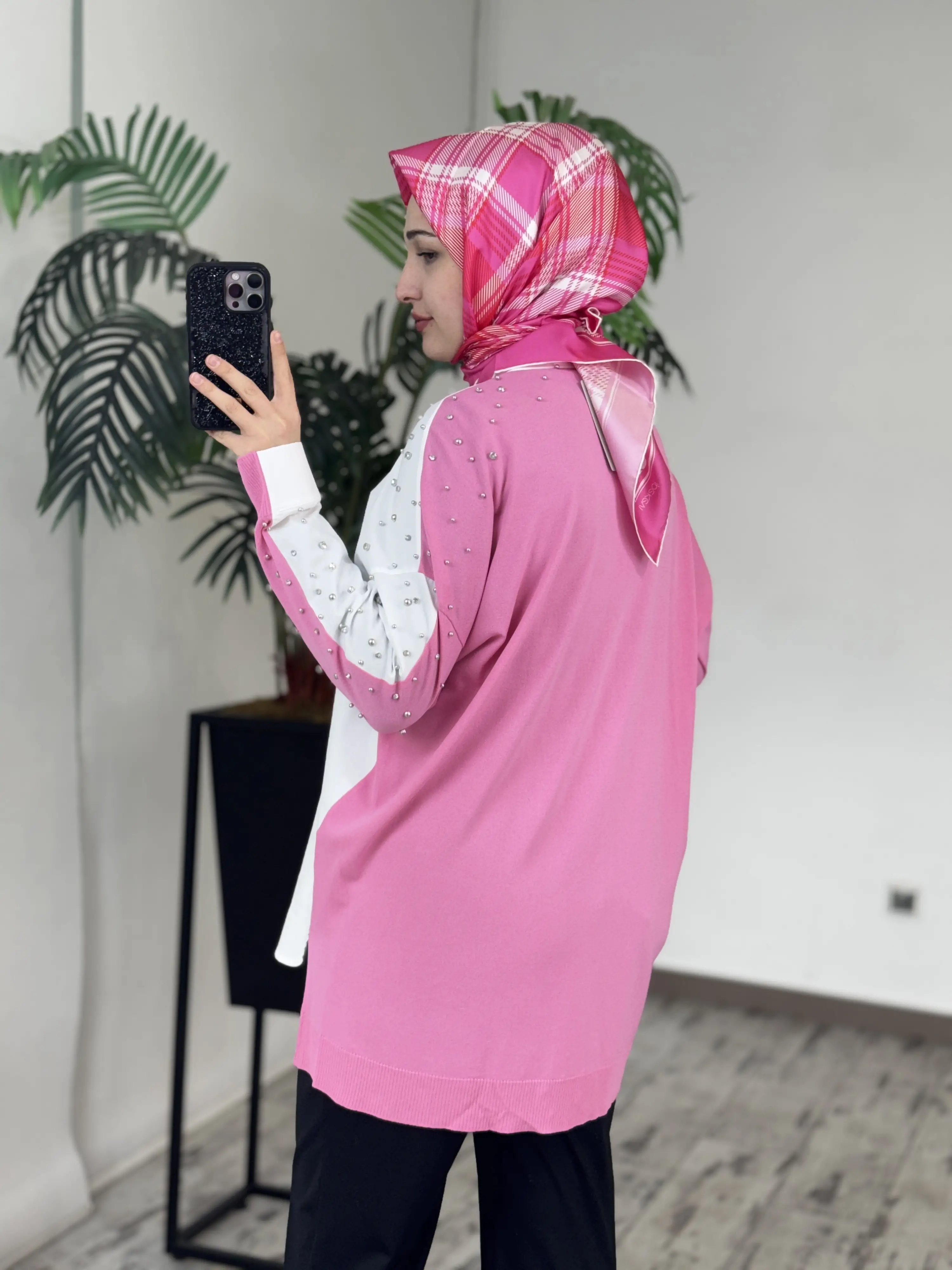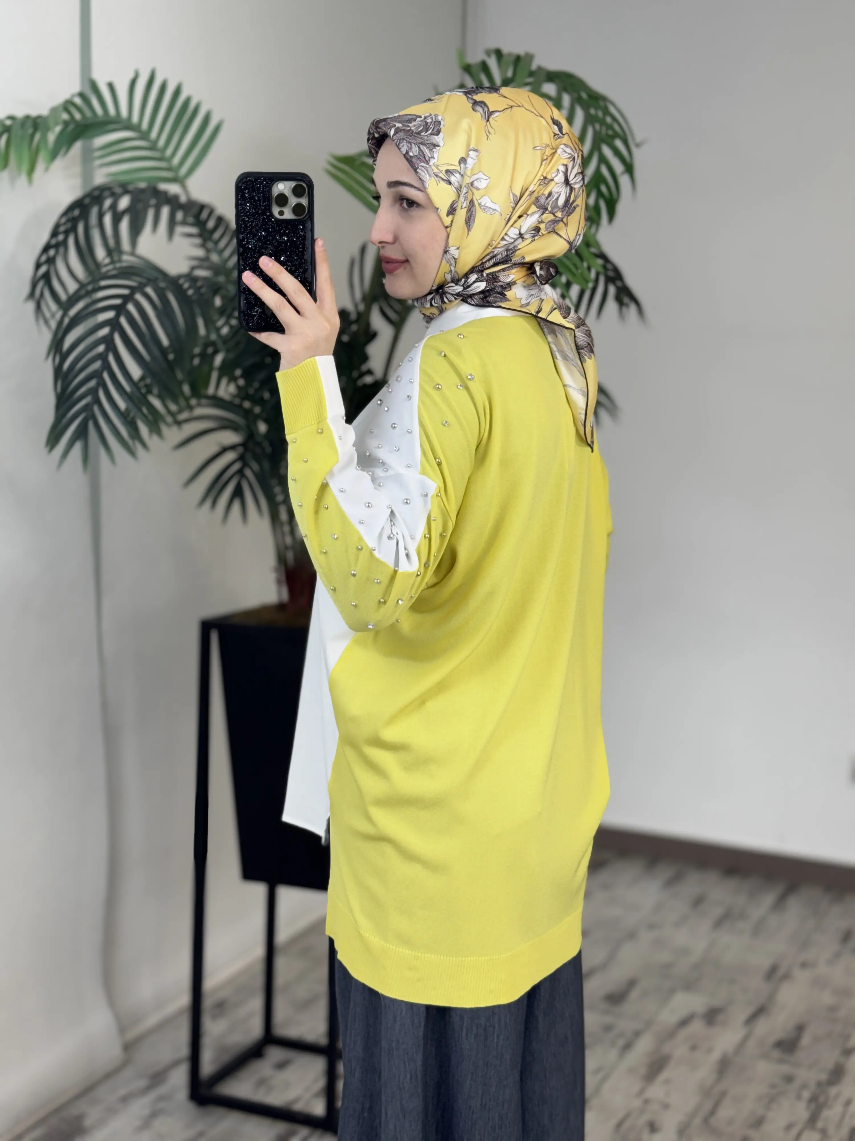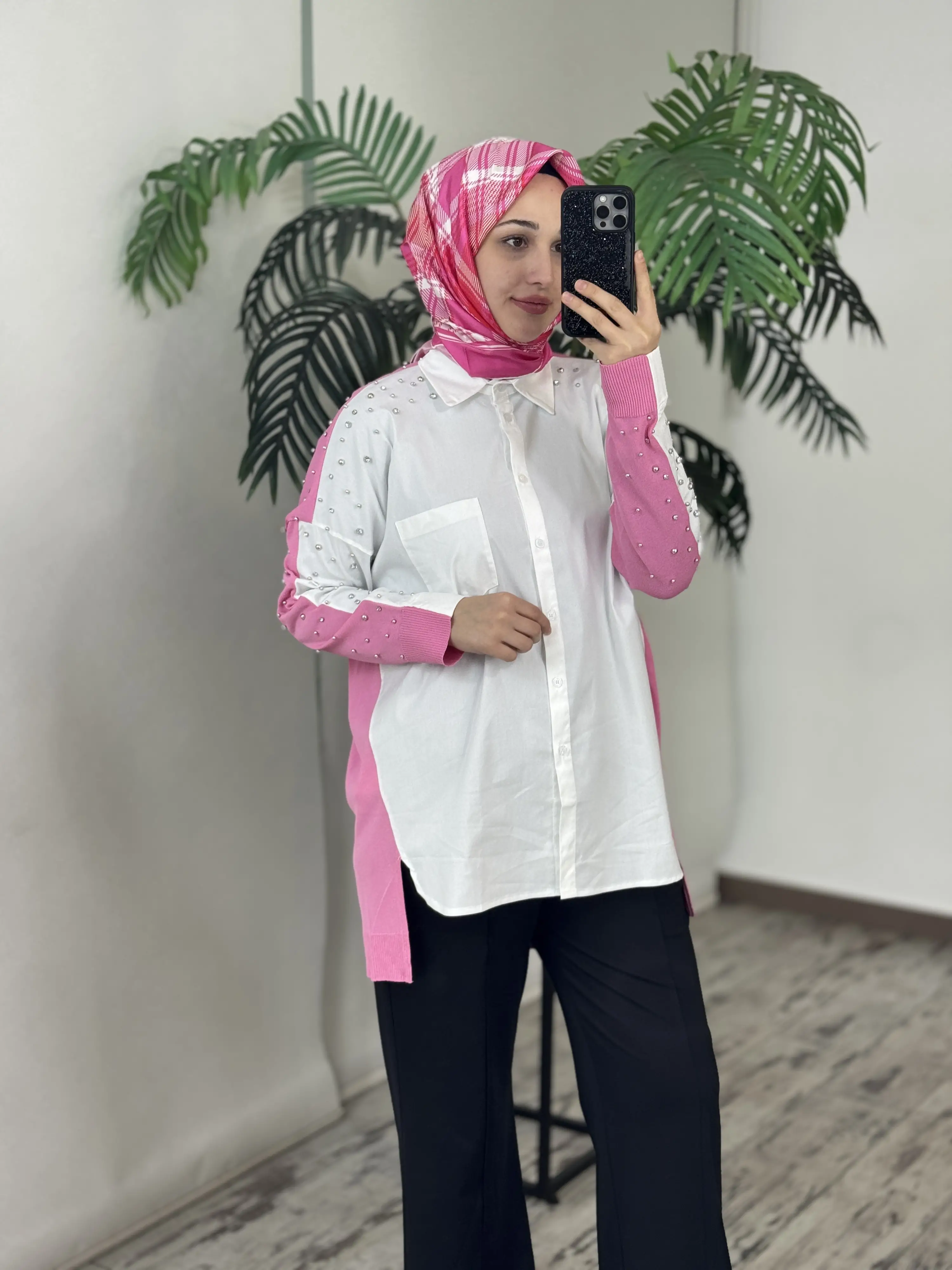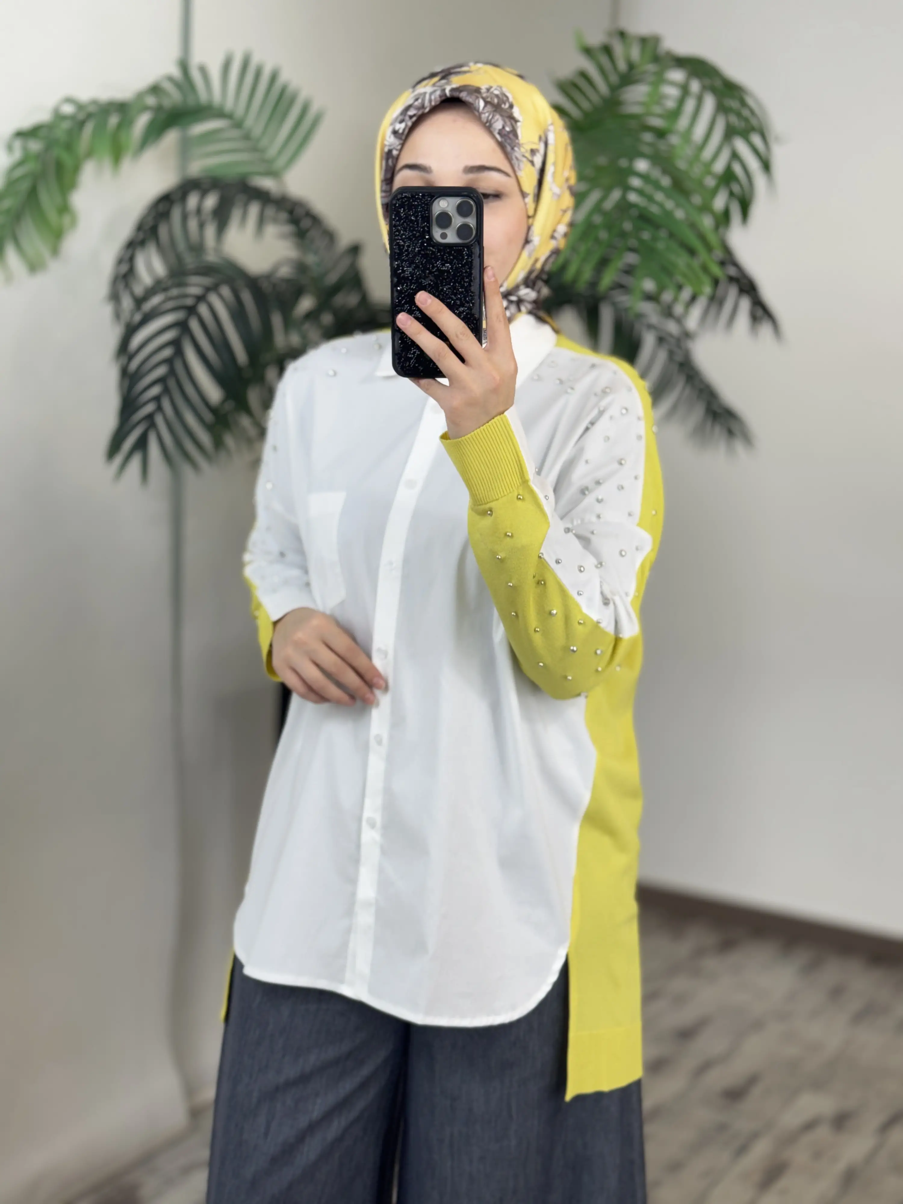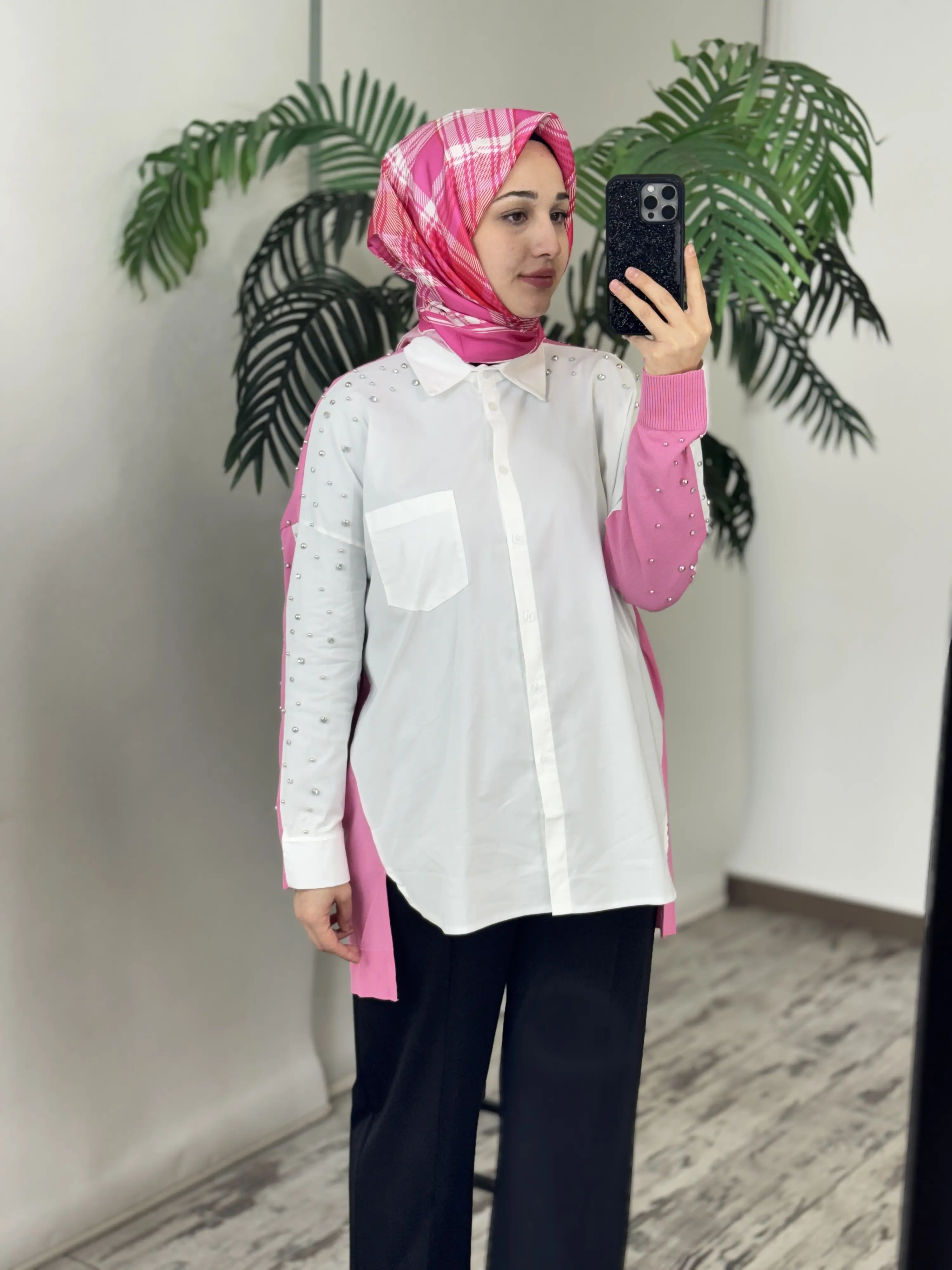 Tığ Triko Arkası Triko Kombinli Omuzları Taşlı Gömlek GML3072