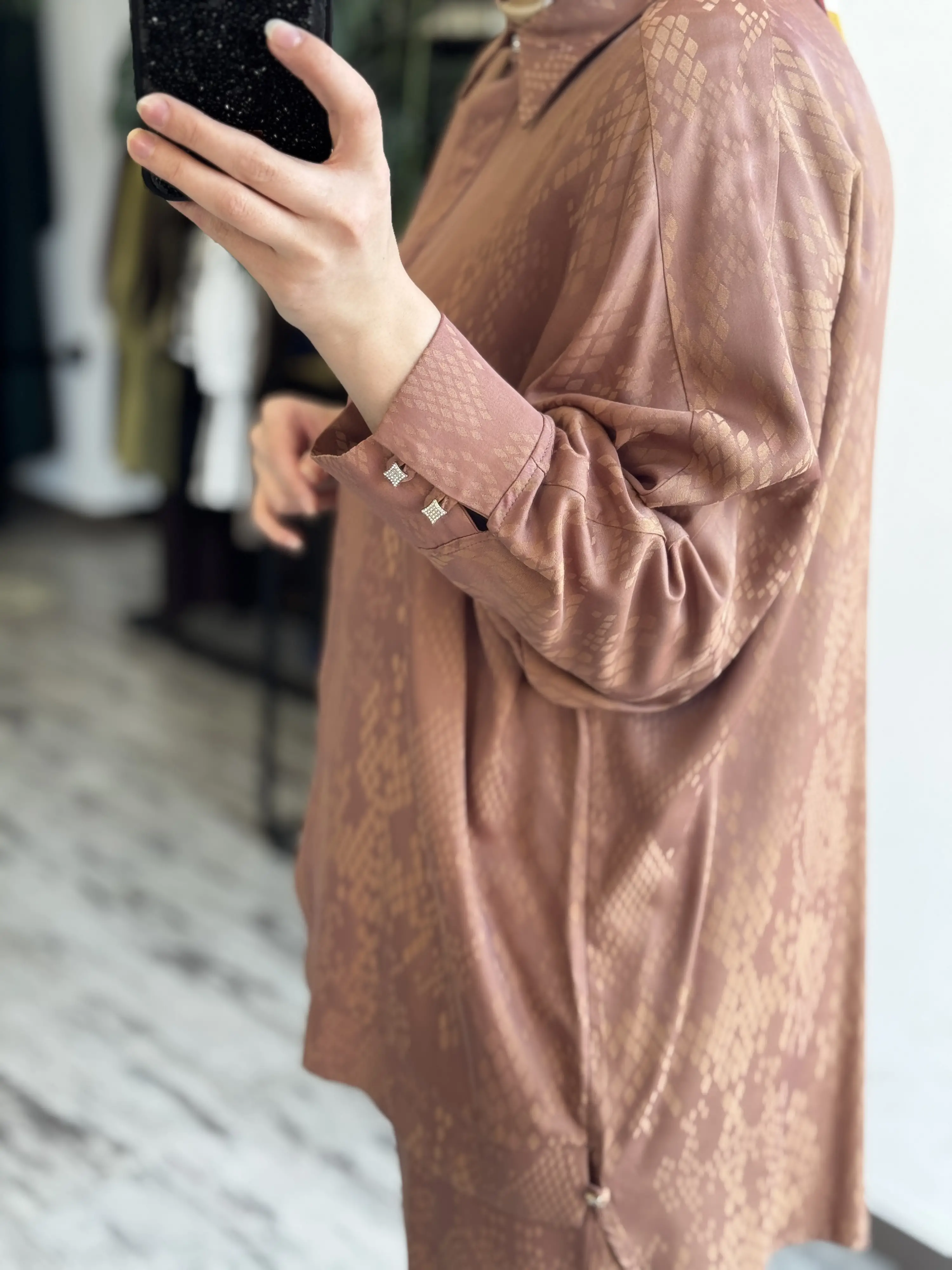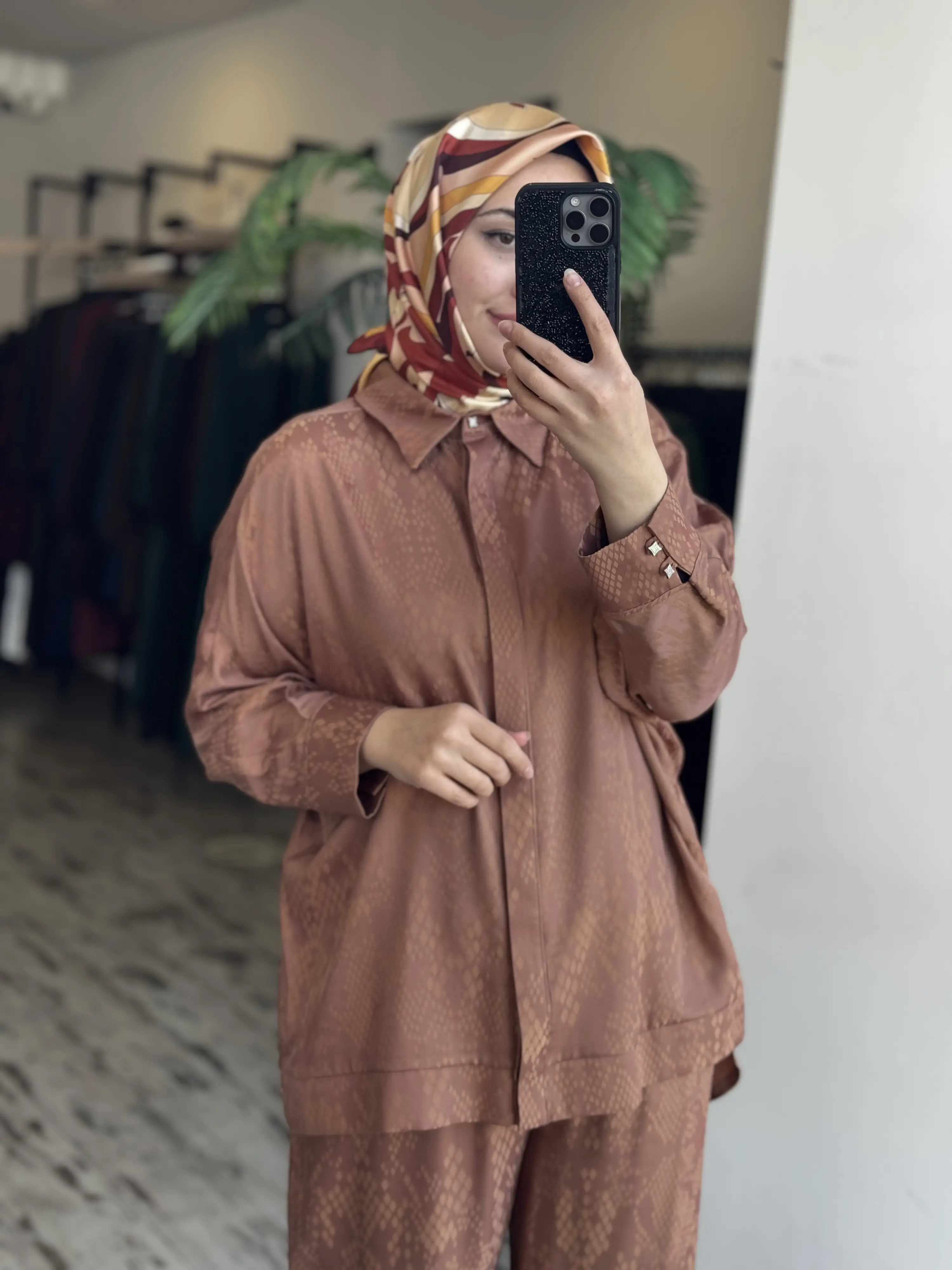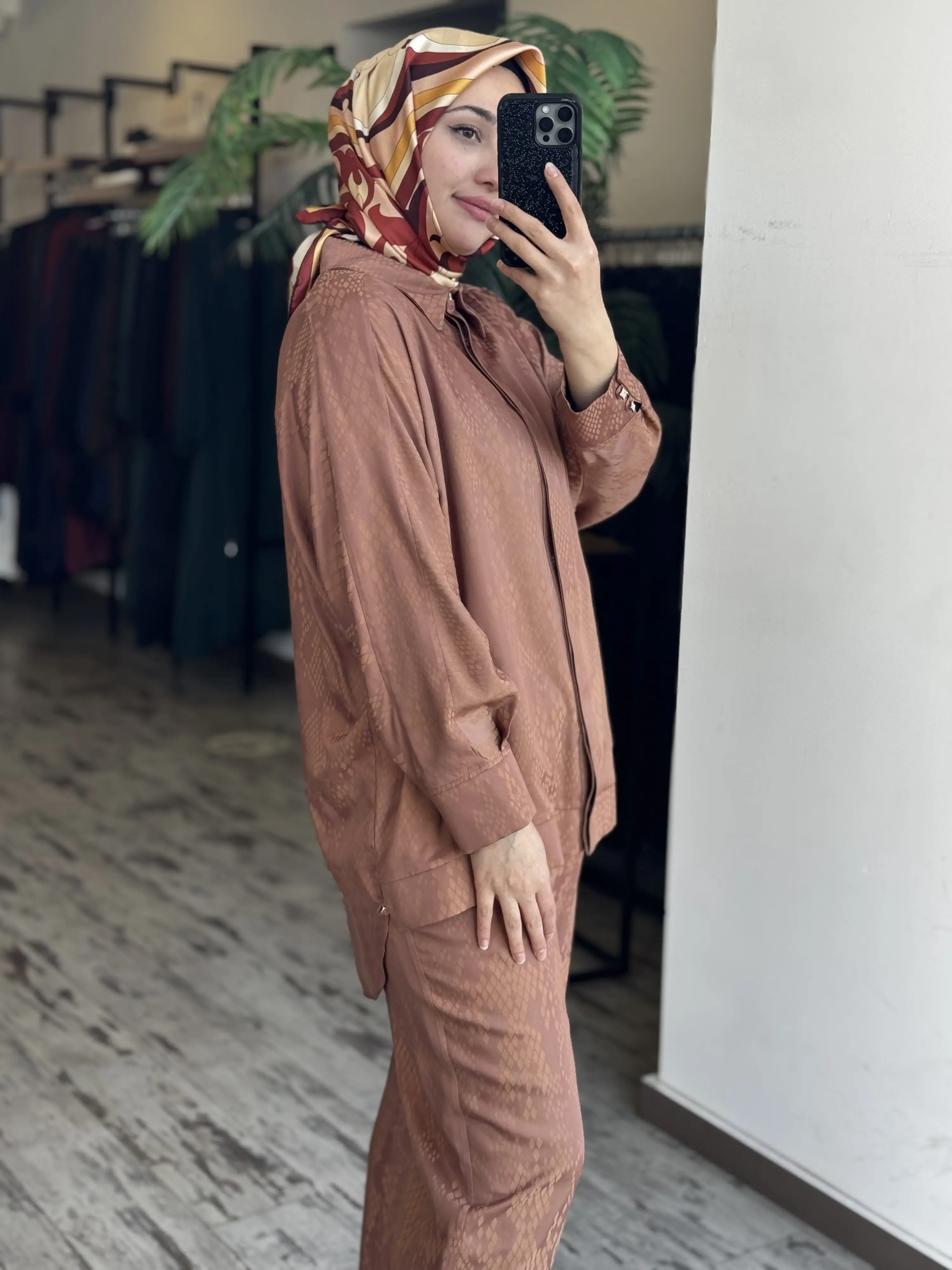 Tığ Triko Kendinden Desenli Yarasa Kol Gömlek Pantolon Takım TKM5021
