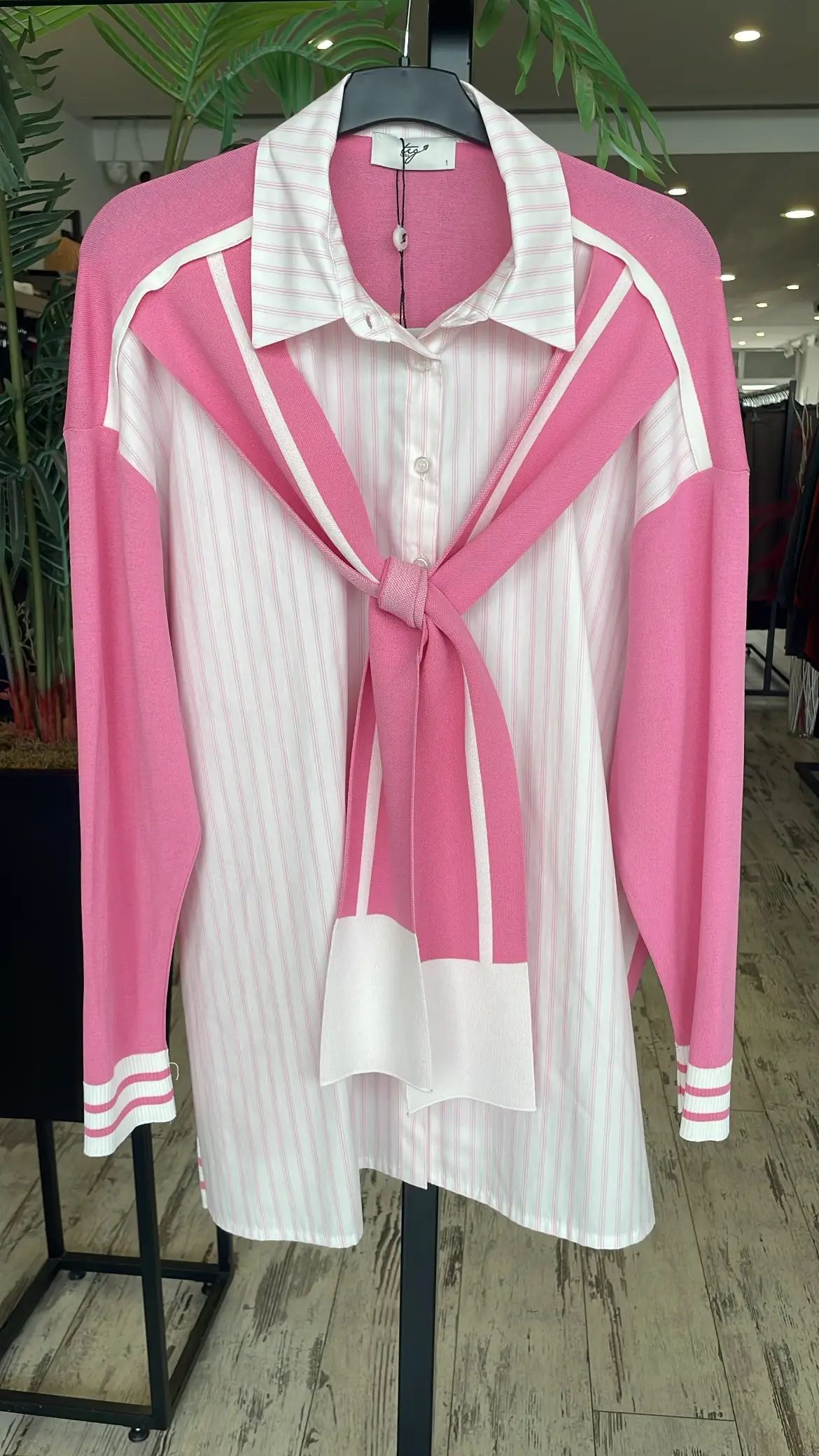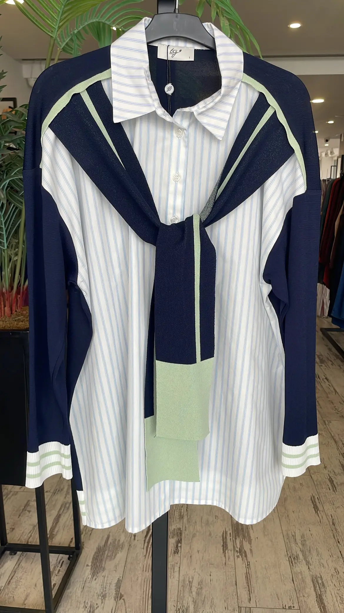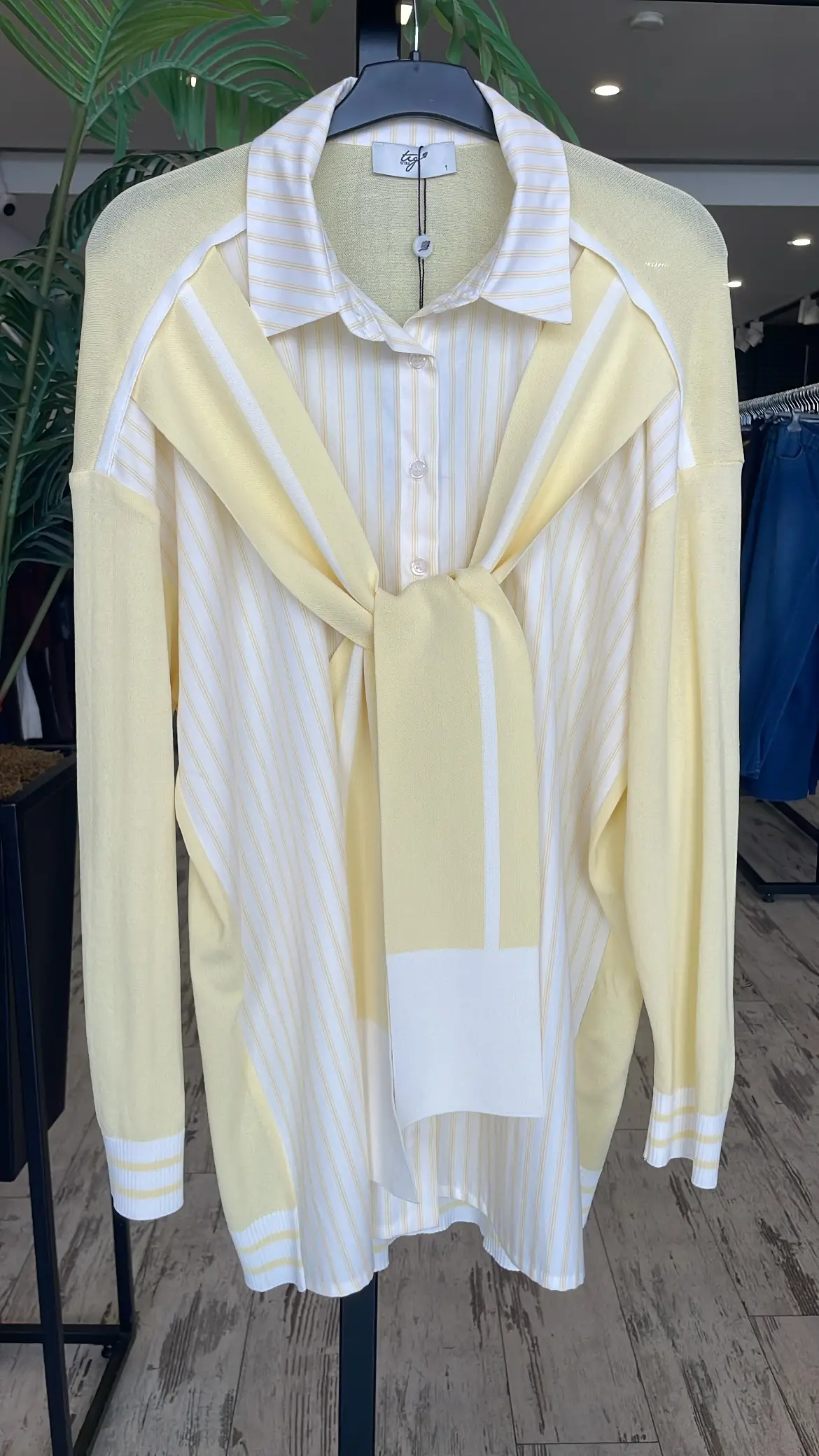 Tığ Triko Önden Bağlamalı Triko Detaylı Gömlek GML22125