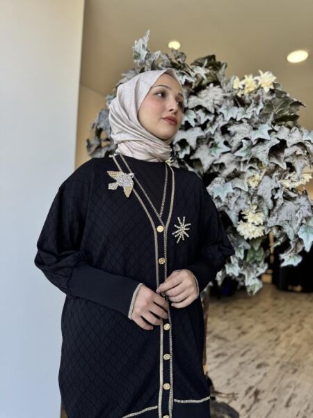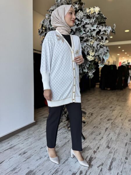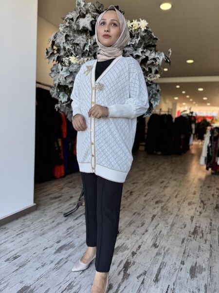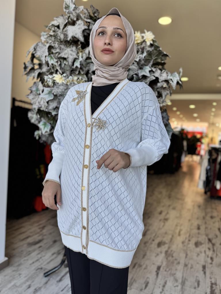 Ghisa Kuş Broş Detaylı Düğmeli Triko Hırka 3898