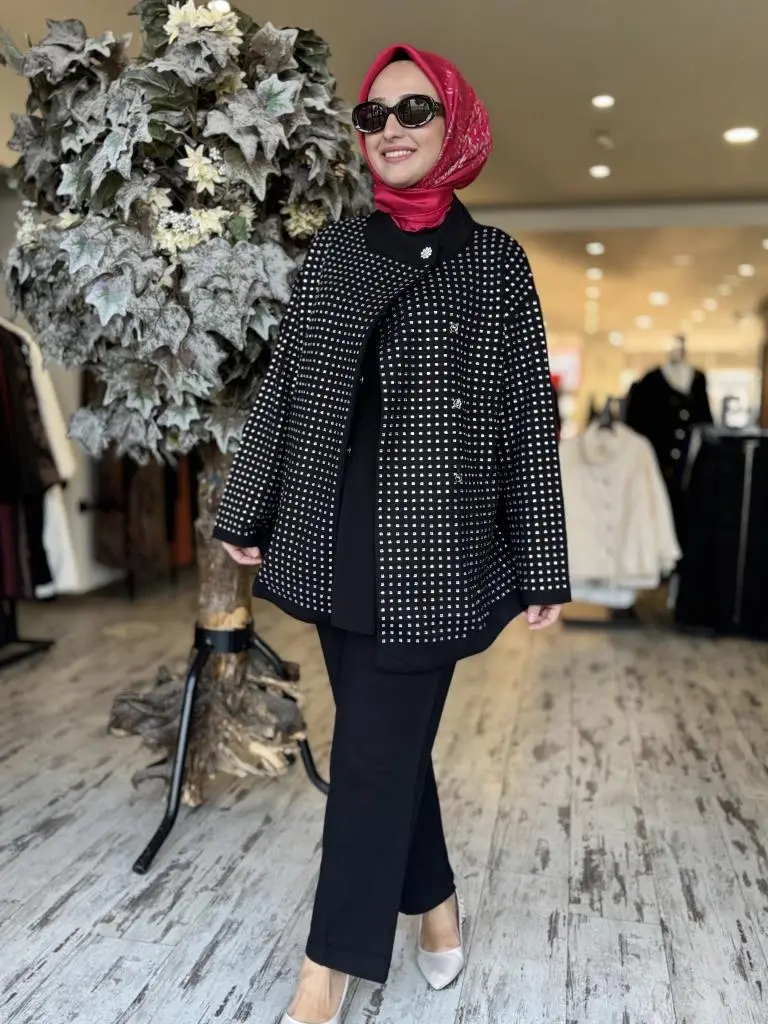 Ghisa Taşlı Triko Ceket / Pantolon Takım 3988