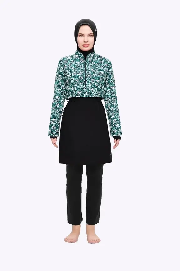 Haşema Esila Yeşil Çiçek Desenli 5 Parça Tam Tesettür Mayo Takımı 2934