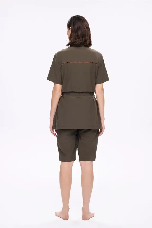 ETEĞİN YUKARI KALKMAMASI İÇİN ÜST VE ŞORT ARASINDA BAĞ DETAYI MEVCUTTUR
