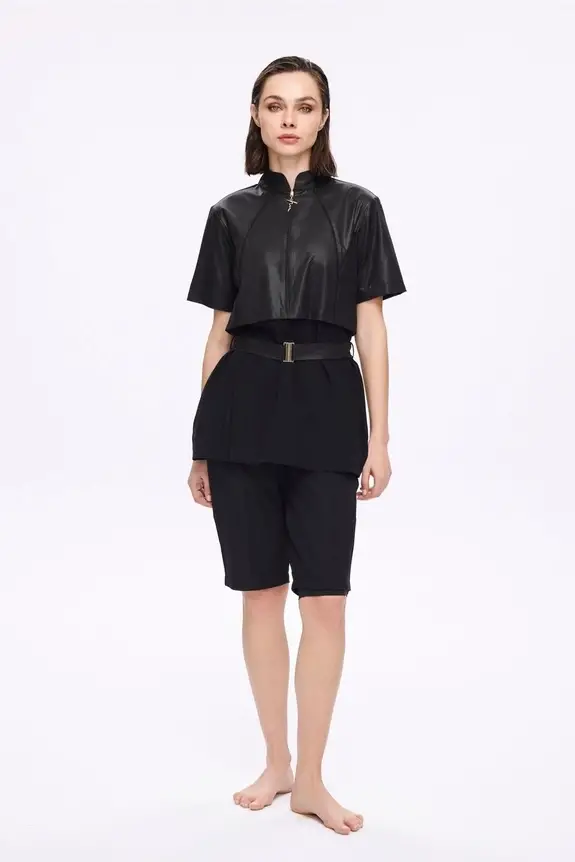 ETEĞİN YUKARI KALKMAMASI İÇİN ÜST VE ŞORT ARASINDA BAĞ DETAYI MEVCUTTUR