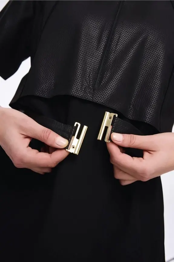 Haşema Kemer Toka Detaylı Dokulu 5 Parça Yarı Kapalı Siyah Mayo Takımı HSM5039