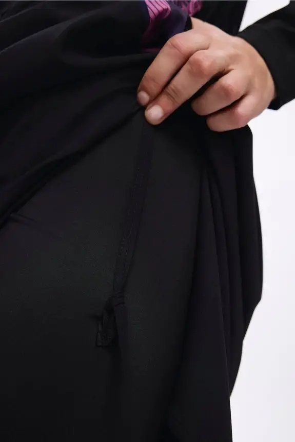 Tayt ve tuniği birbirine bağlayarak yüzerken eteğin yukarı kalkmasını önleyen bağ detayı bulunur.