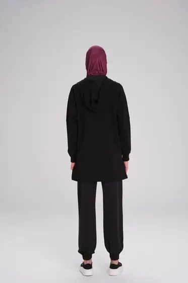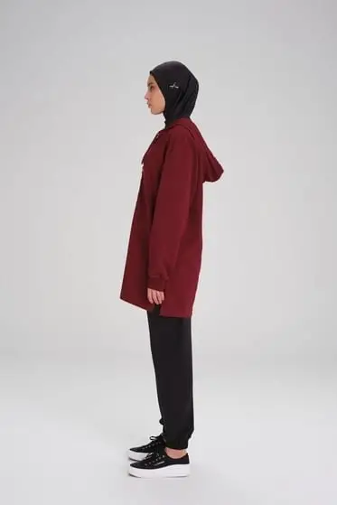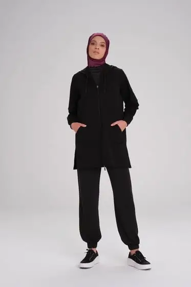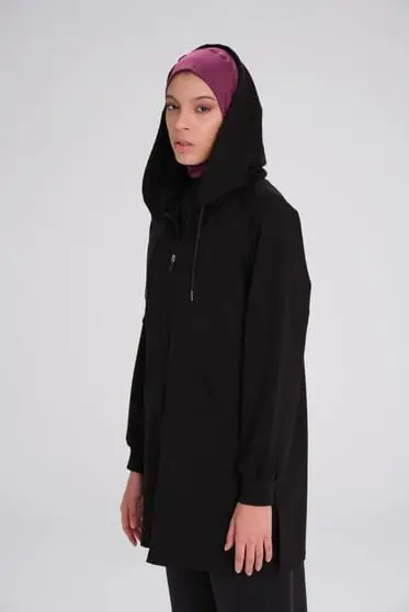 Haşema Yumuşak Dokulu Kapüşonlu Fermuarlı Basic Sweatshirt ACT15