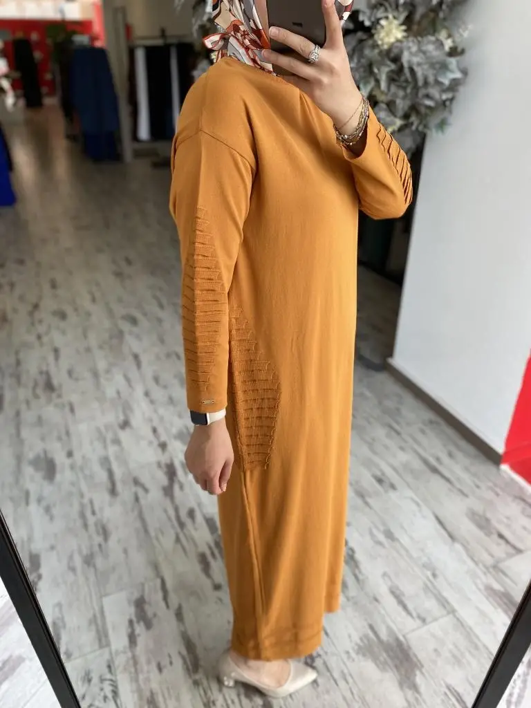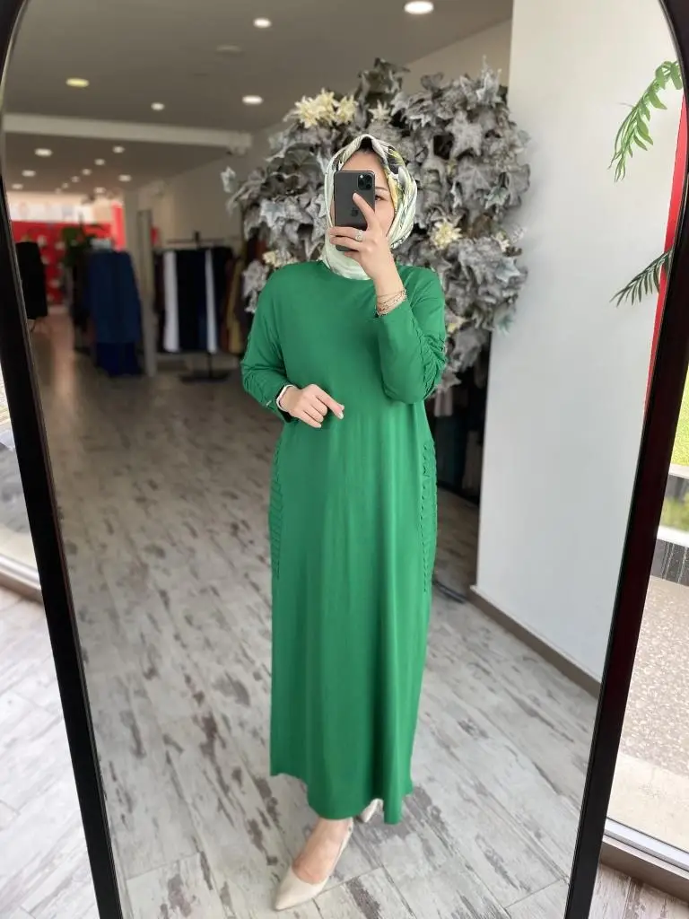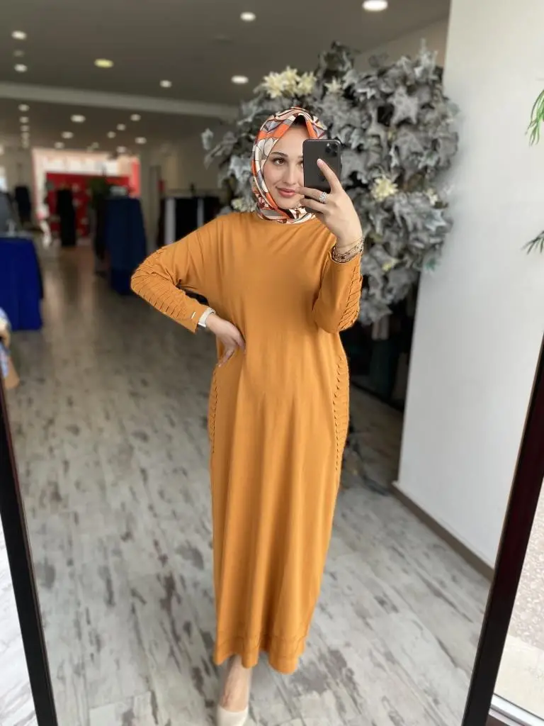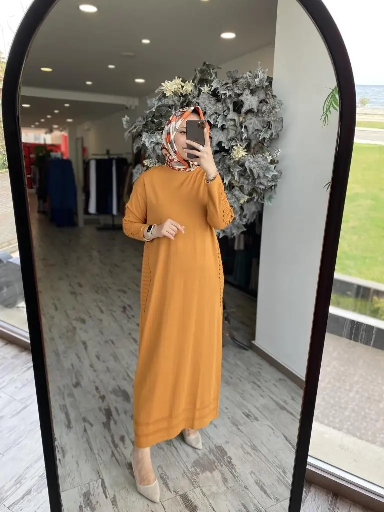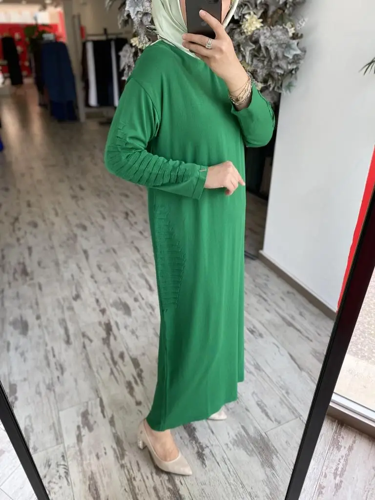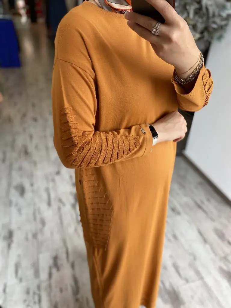 NERVÜR DETAYLI SOĞUK İPLİK TRİKO ELBİSE