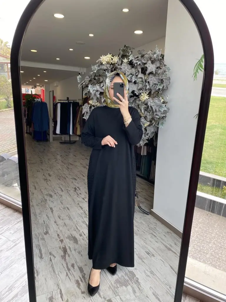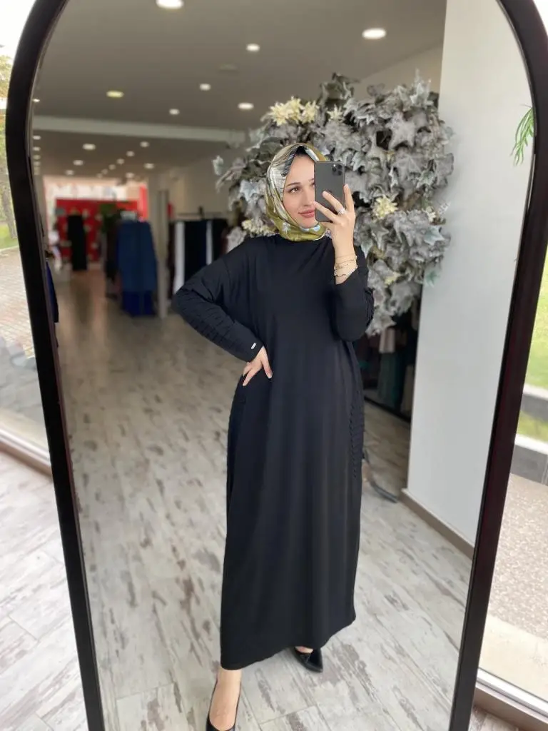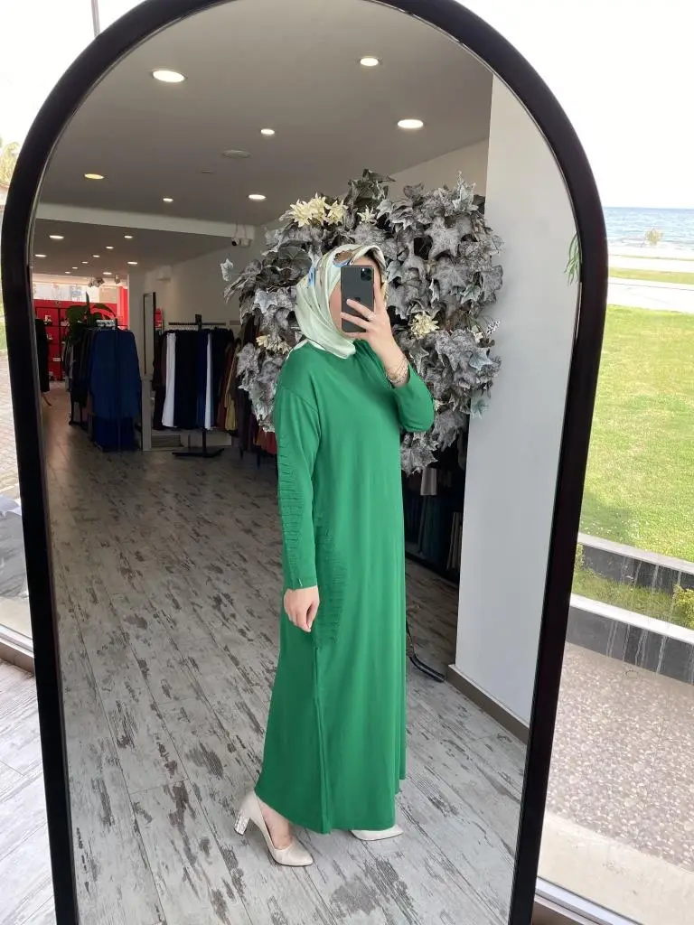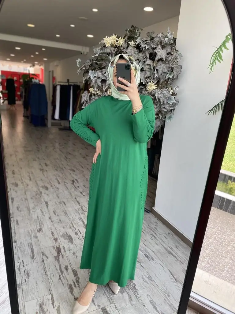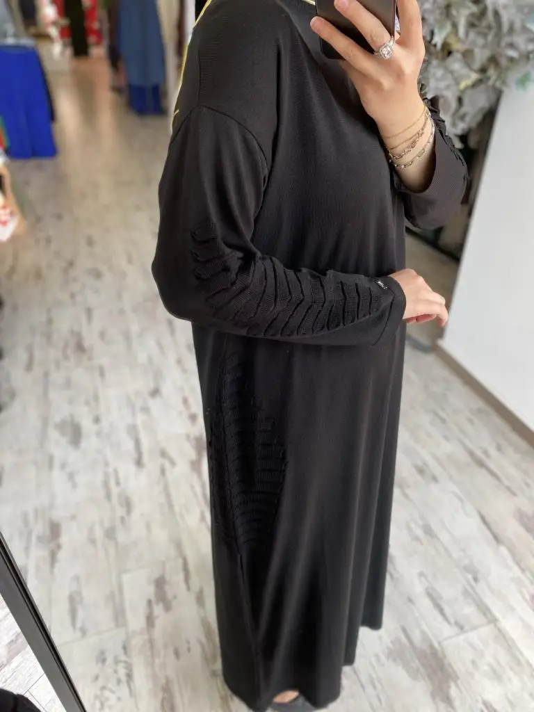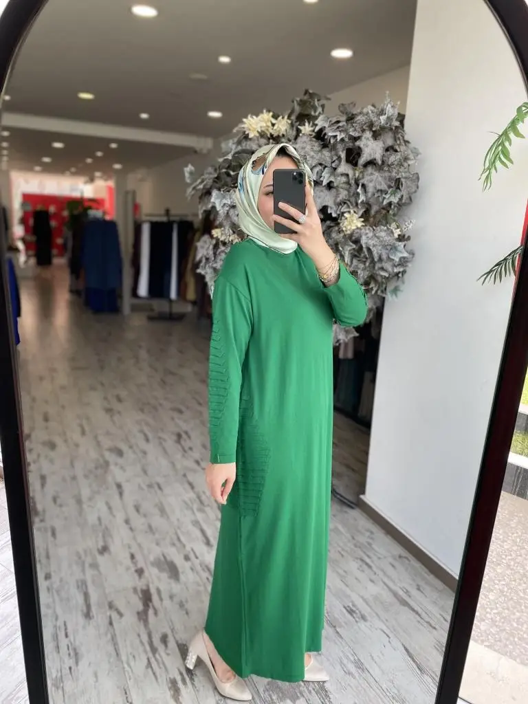 NERVÜR DETAYLI SOĞUK İPLİK TRİKO ELBİSE