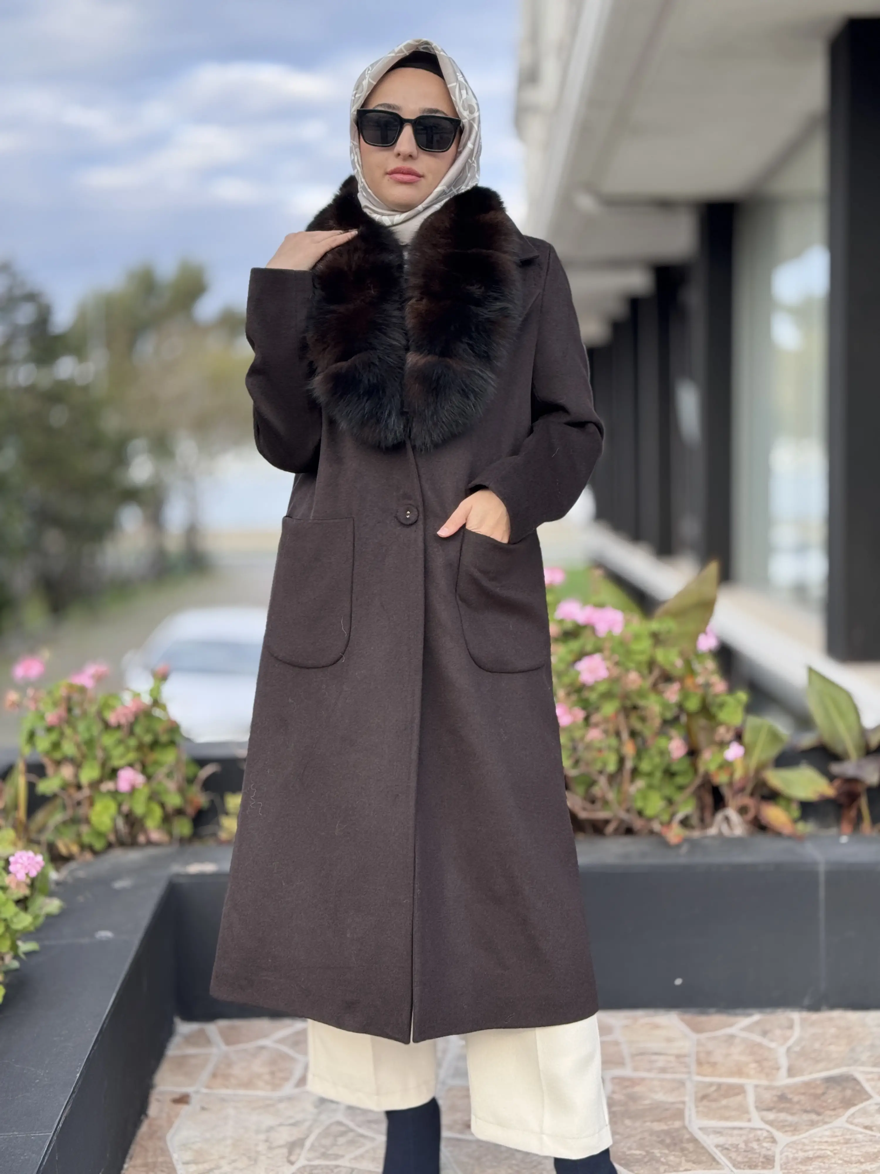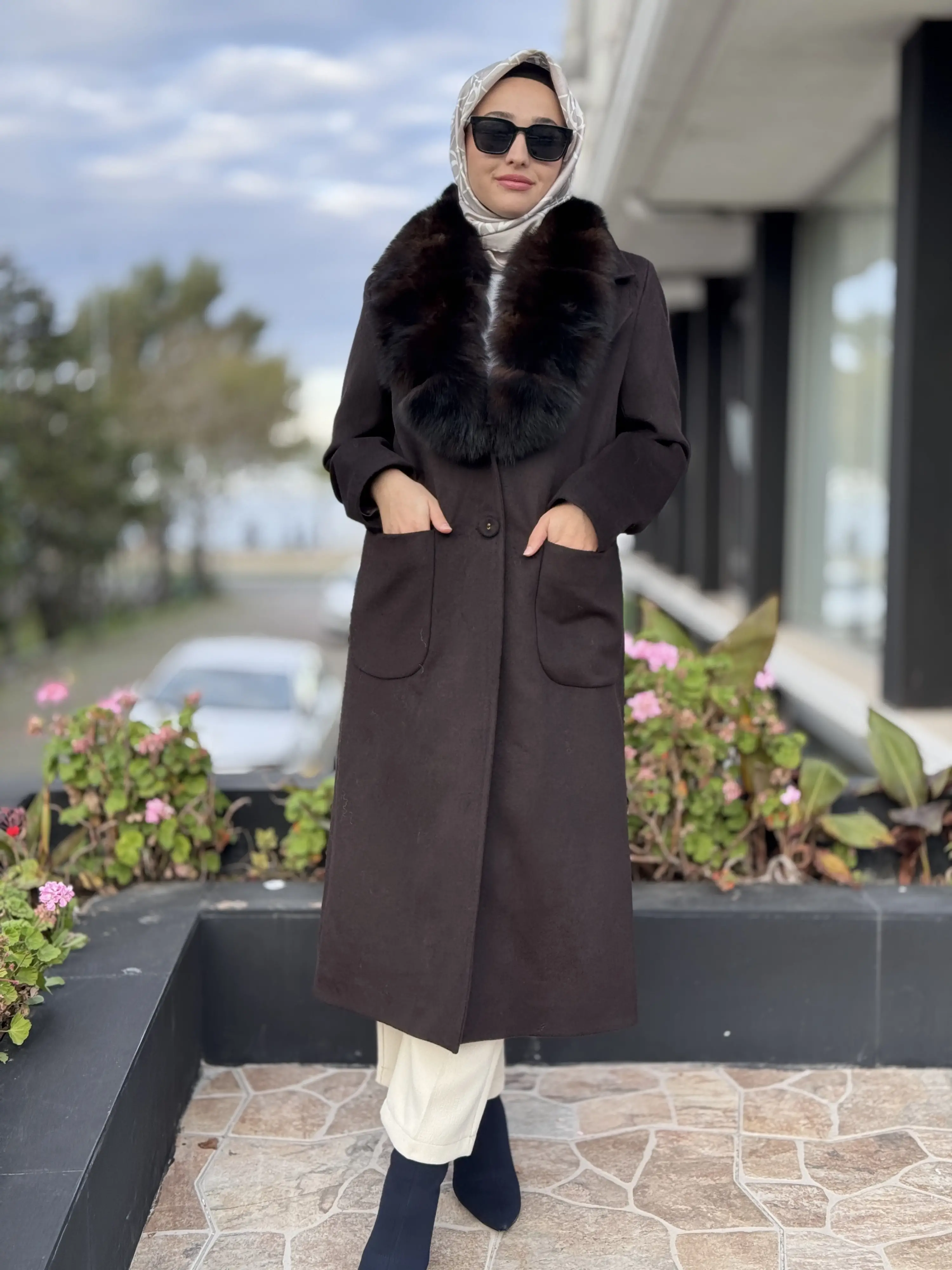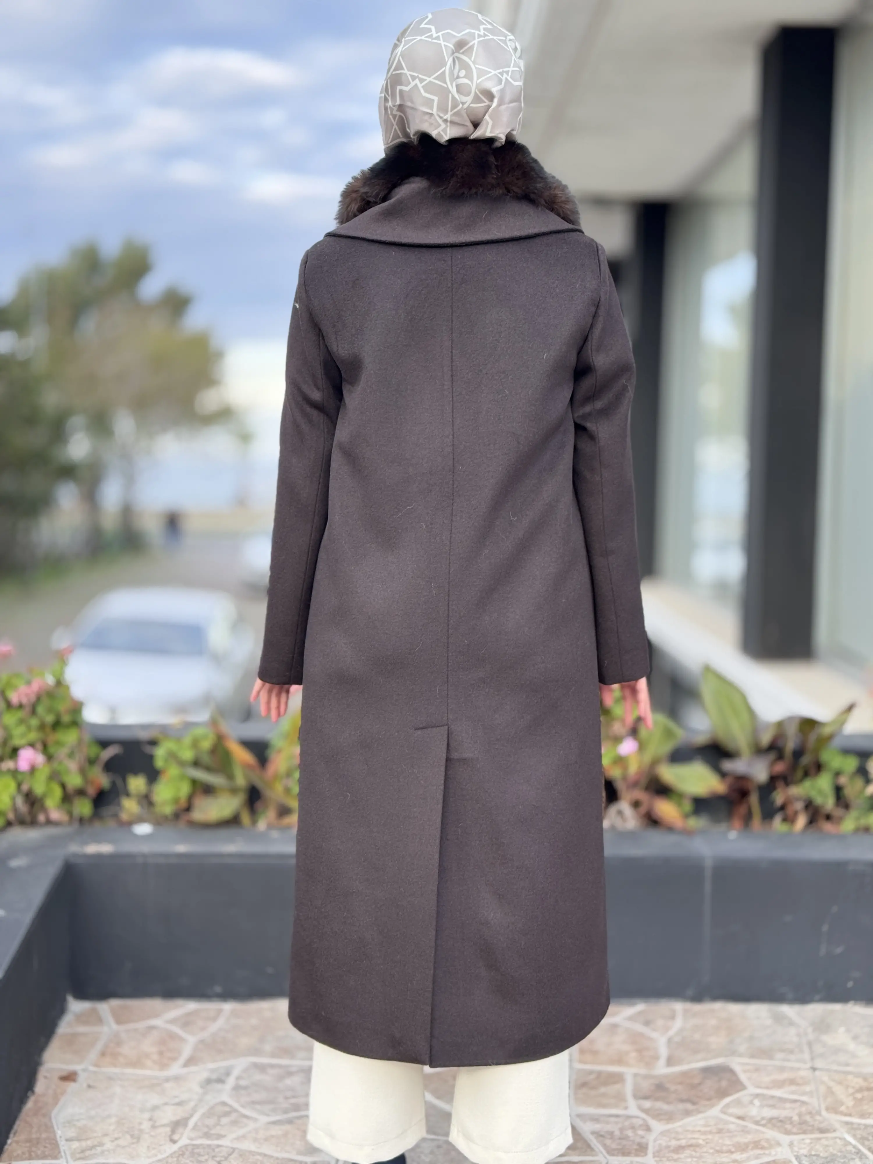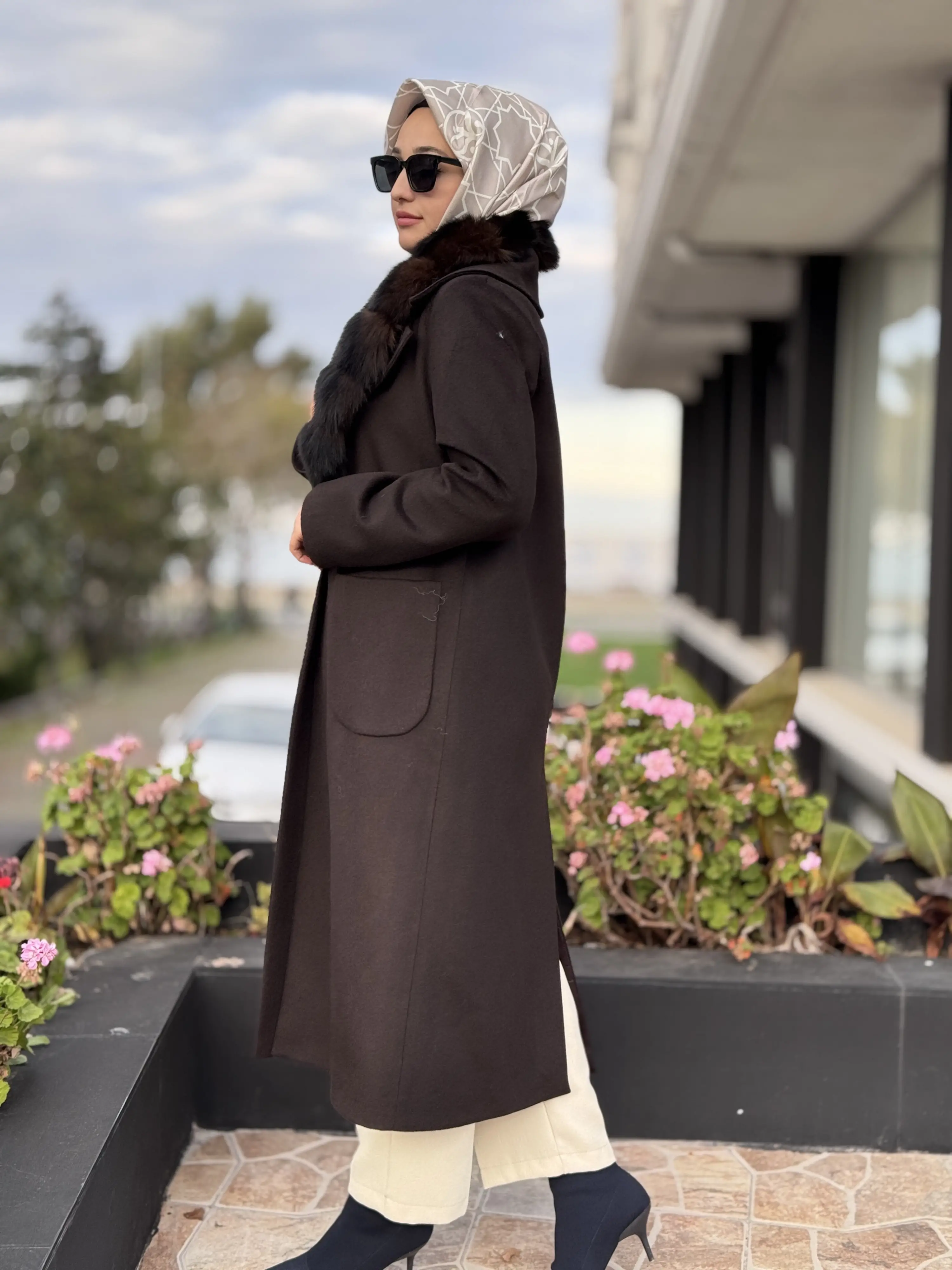 Kahma Seyyar Kürk Yakalı Kaşe Kaban