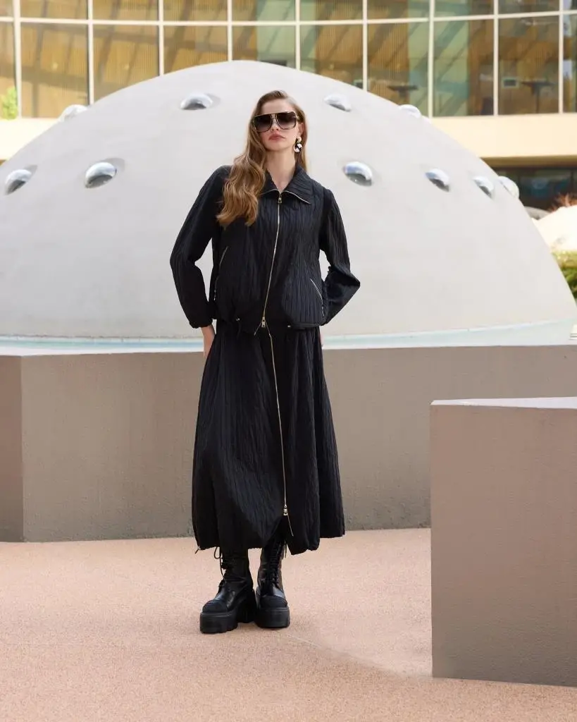 Misswhence Fermuar Detaylı Tafta Ceket Etek Takım 38216