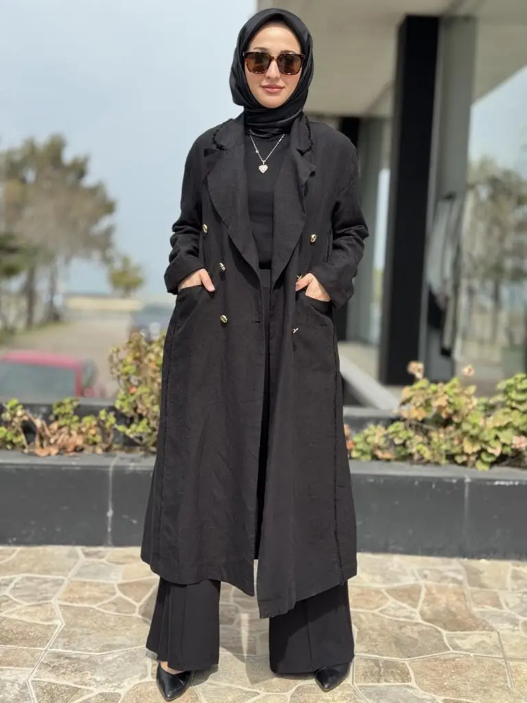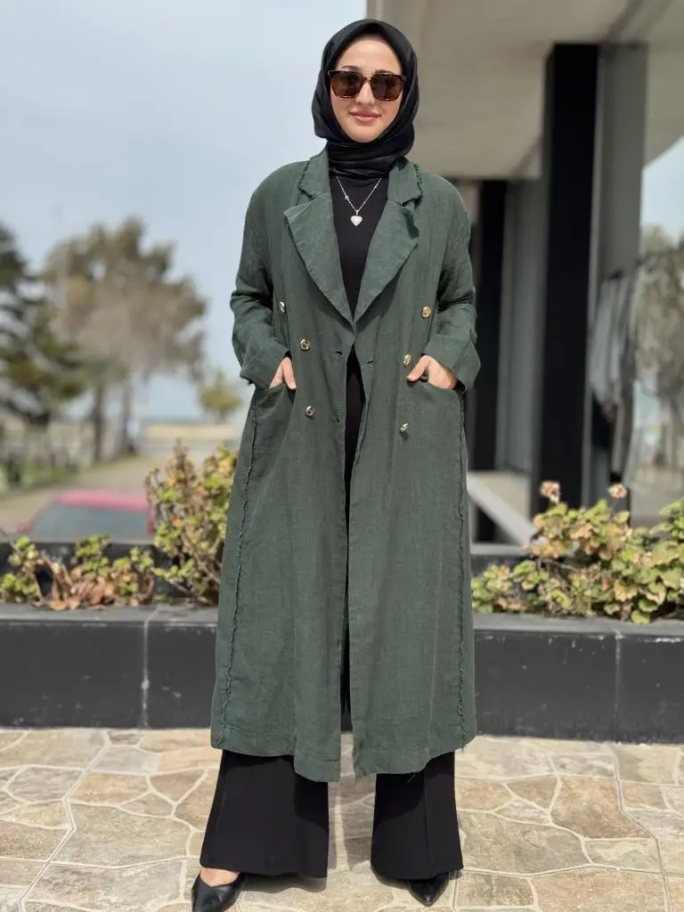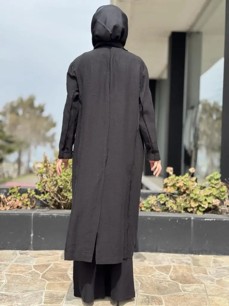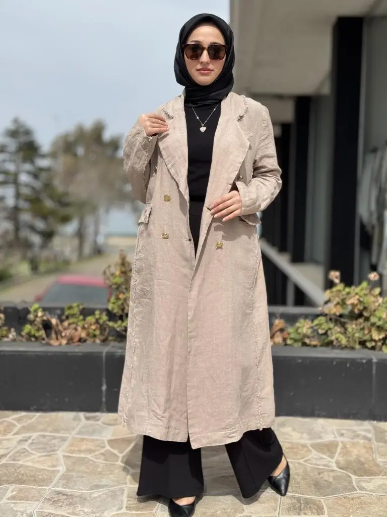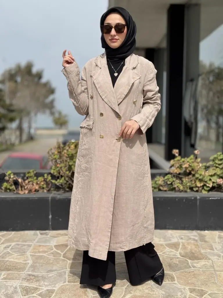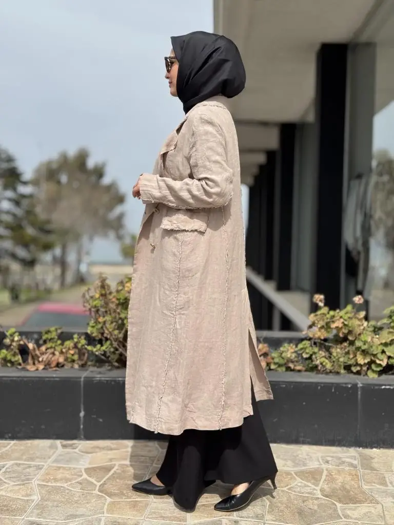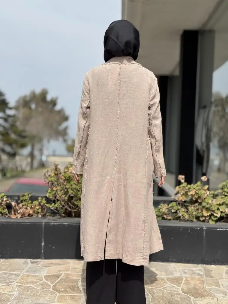 TERS DİKİŞ DETAYLARI VE HAM KETEN OLUŞUYLA ÇOK RAHAT VE NATUREL BİR PARDESÜ