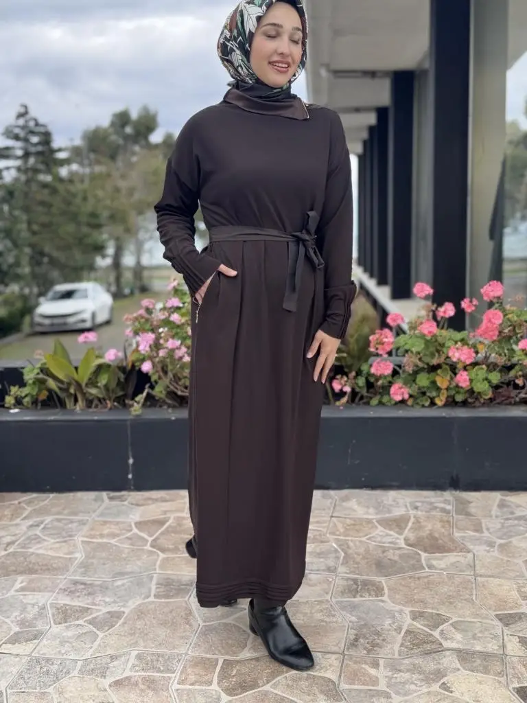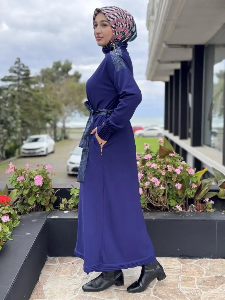 Misswhence Yaka ve Cep Fermuar Detaylı Örme Elbise 38822