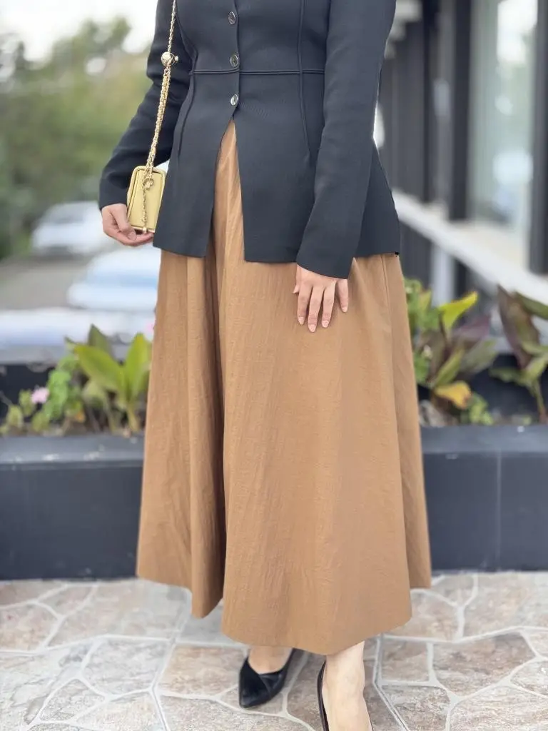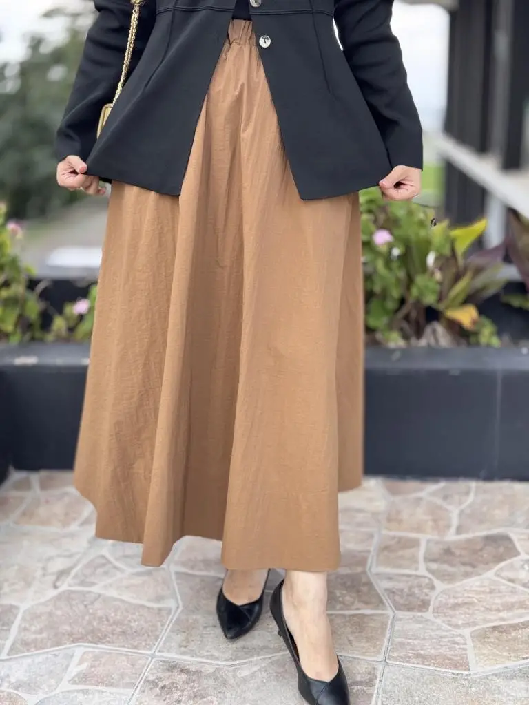 QooQ Store Camel Krinkıl Etek 26FW502