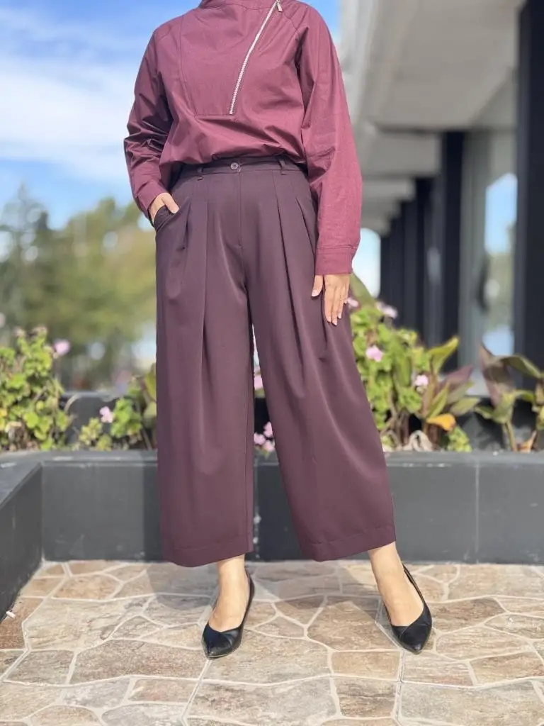 QooQ Store Mürdüm Pileli Pantolon 26FW318