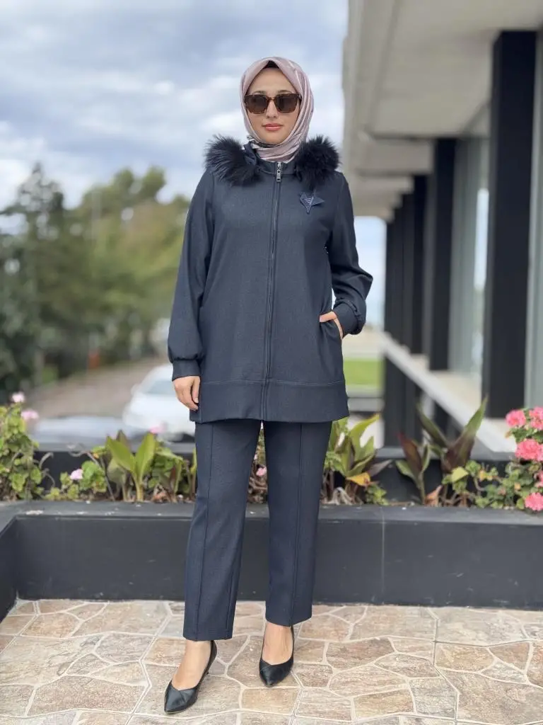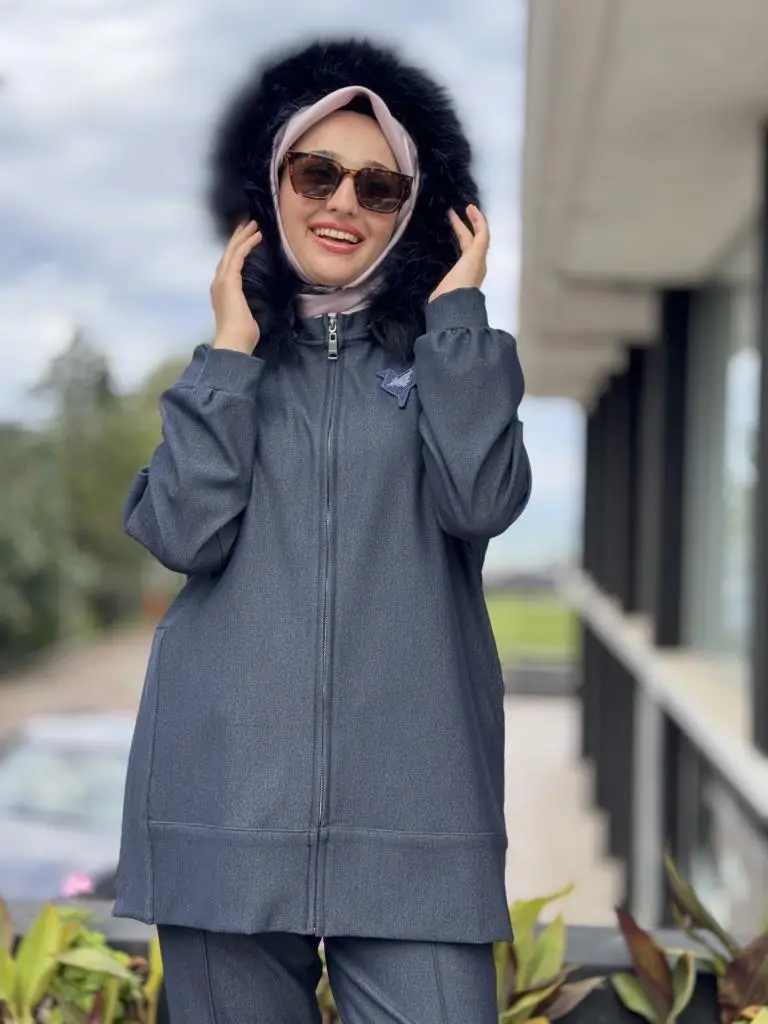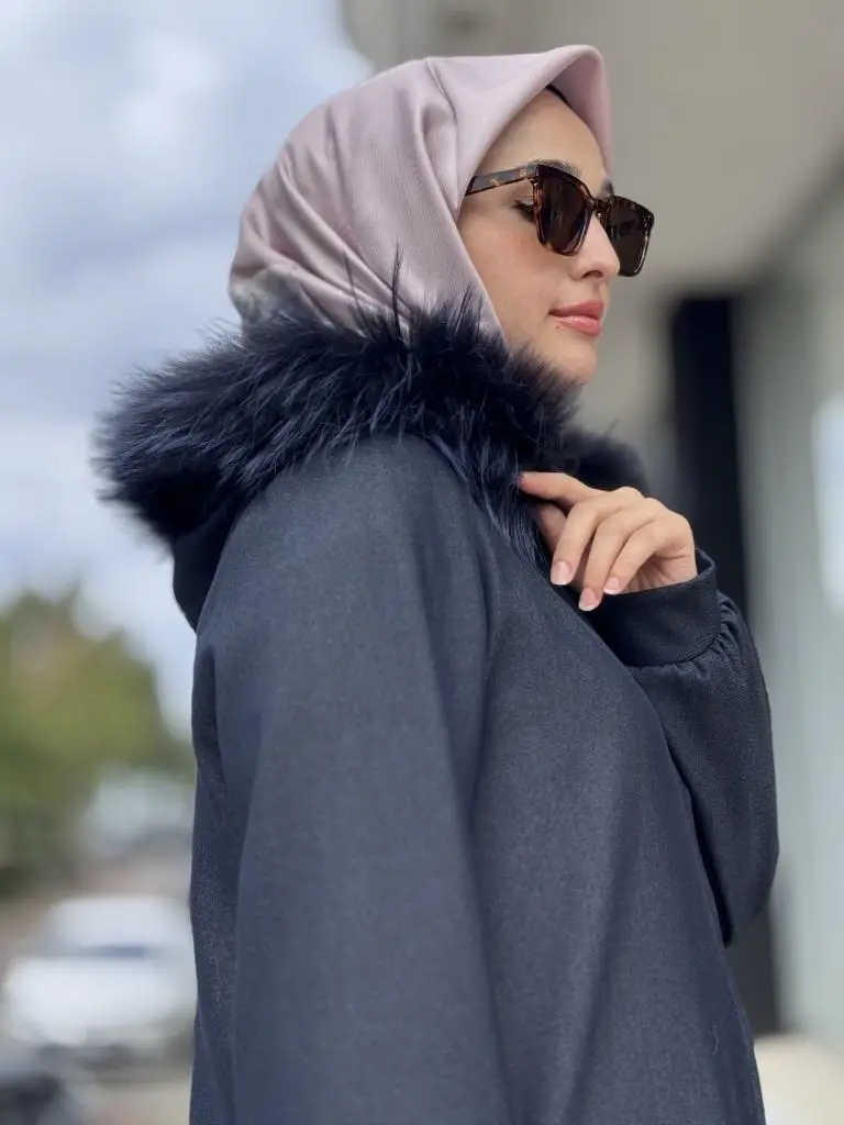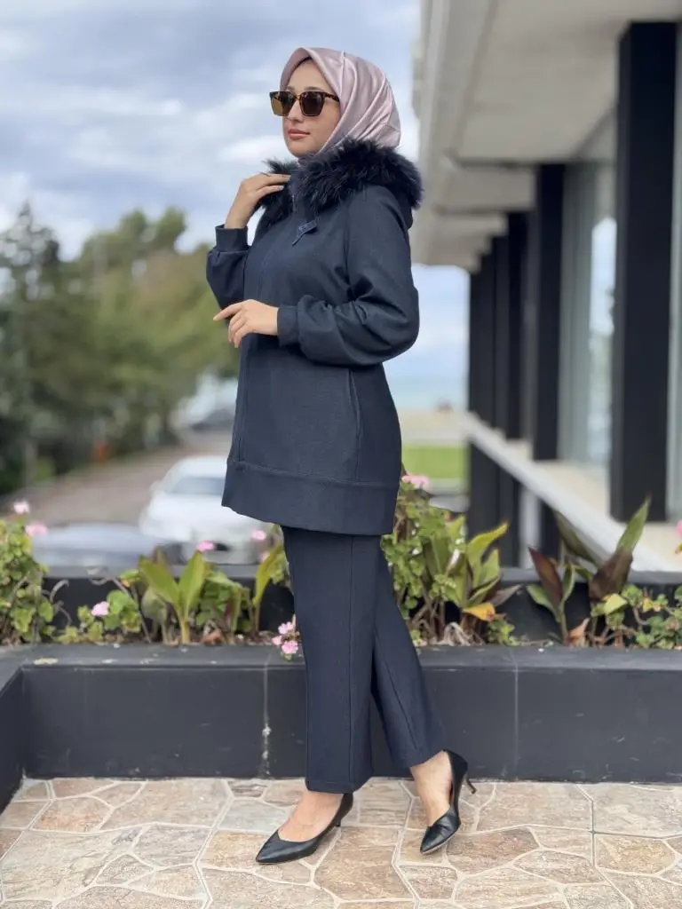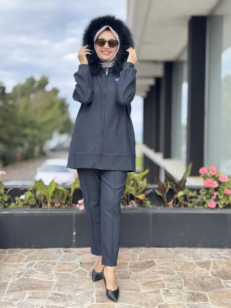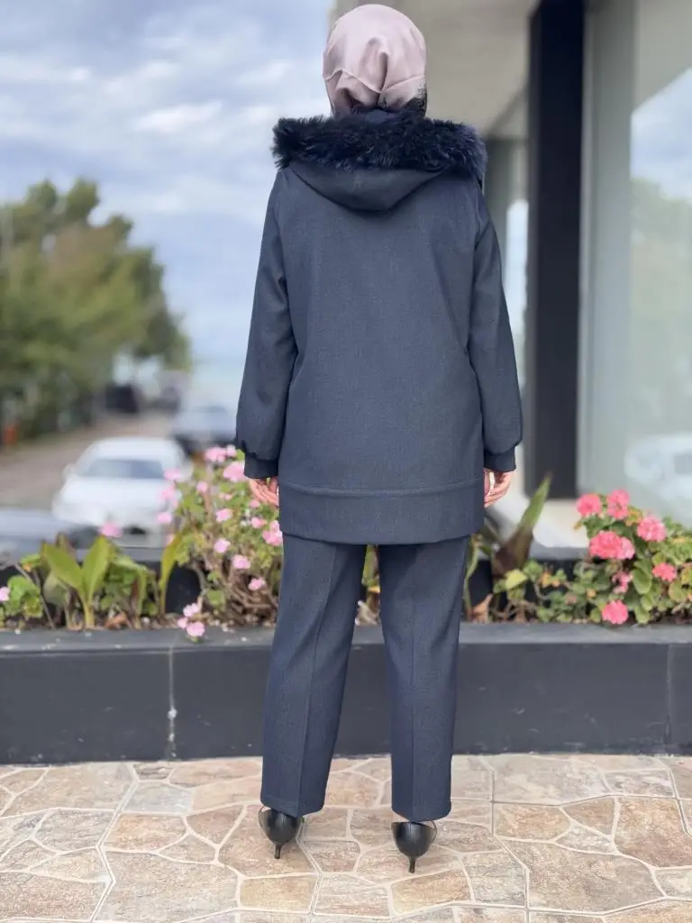 Qupra Kot Görünümlü Seyyar Kürk Kapüşonlu Kap Pantolon Takım WAC92066