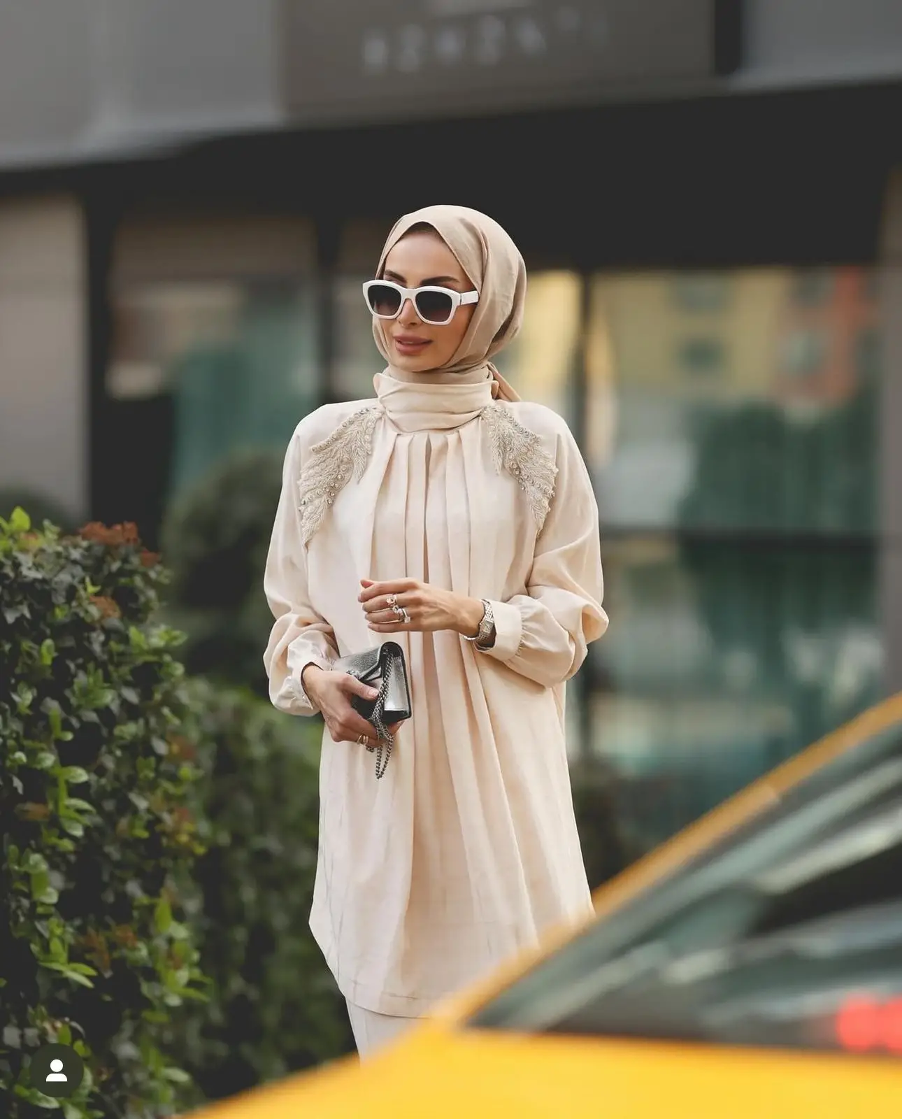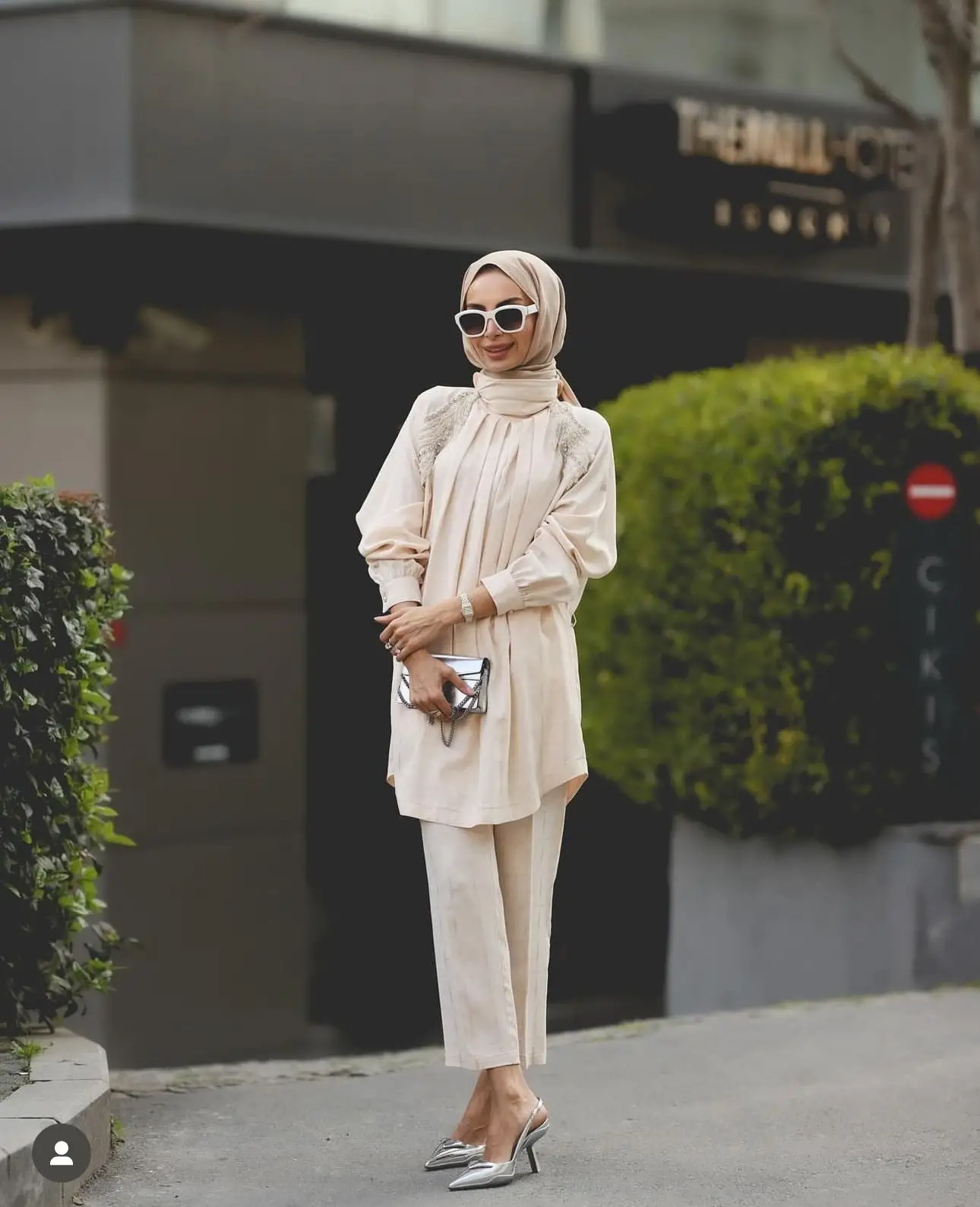 Qupra Omuzları İşlemeli Kemerli Tunik Pantolon Takım QAY62119