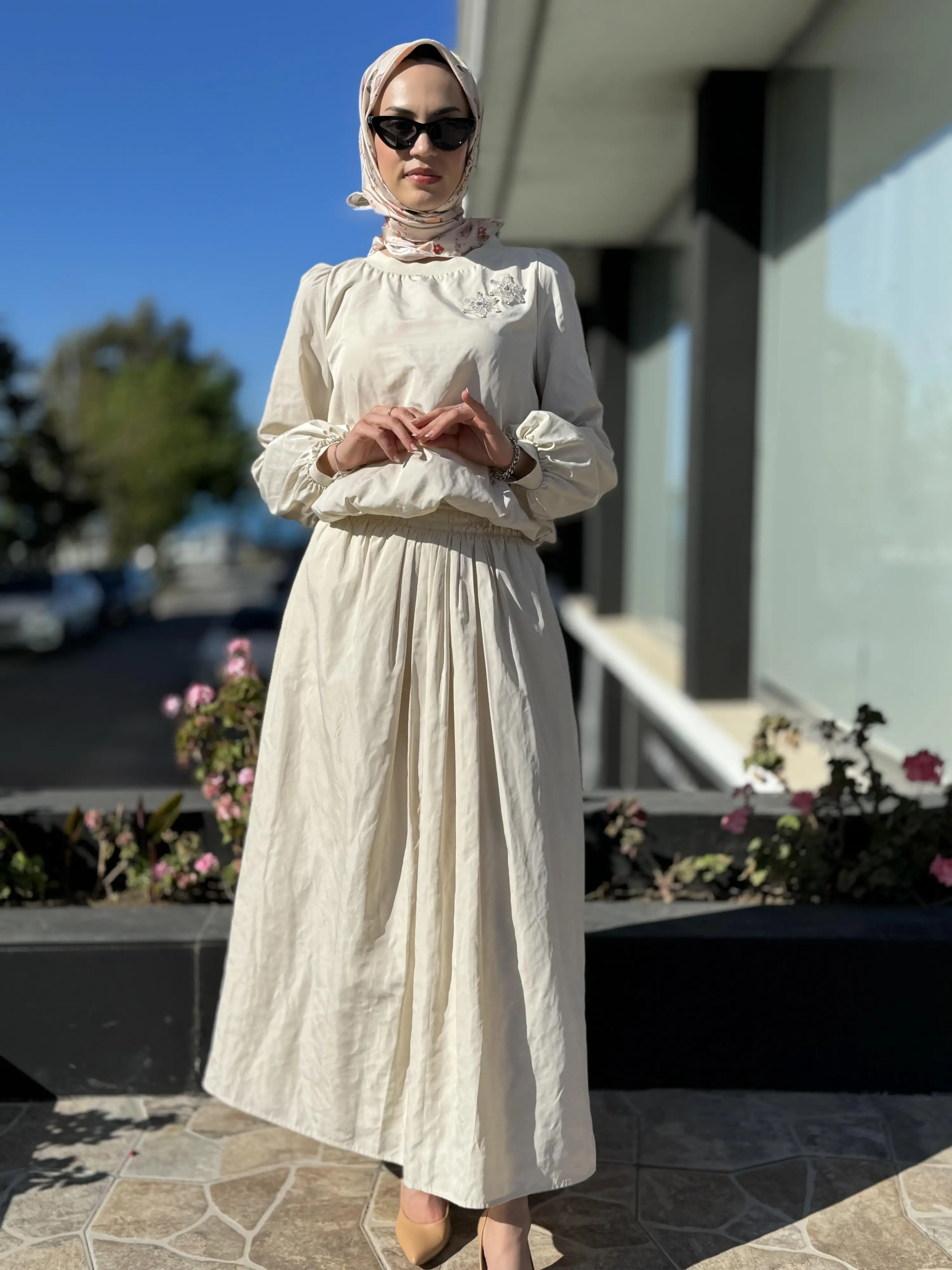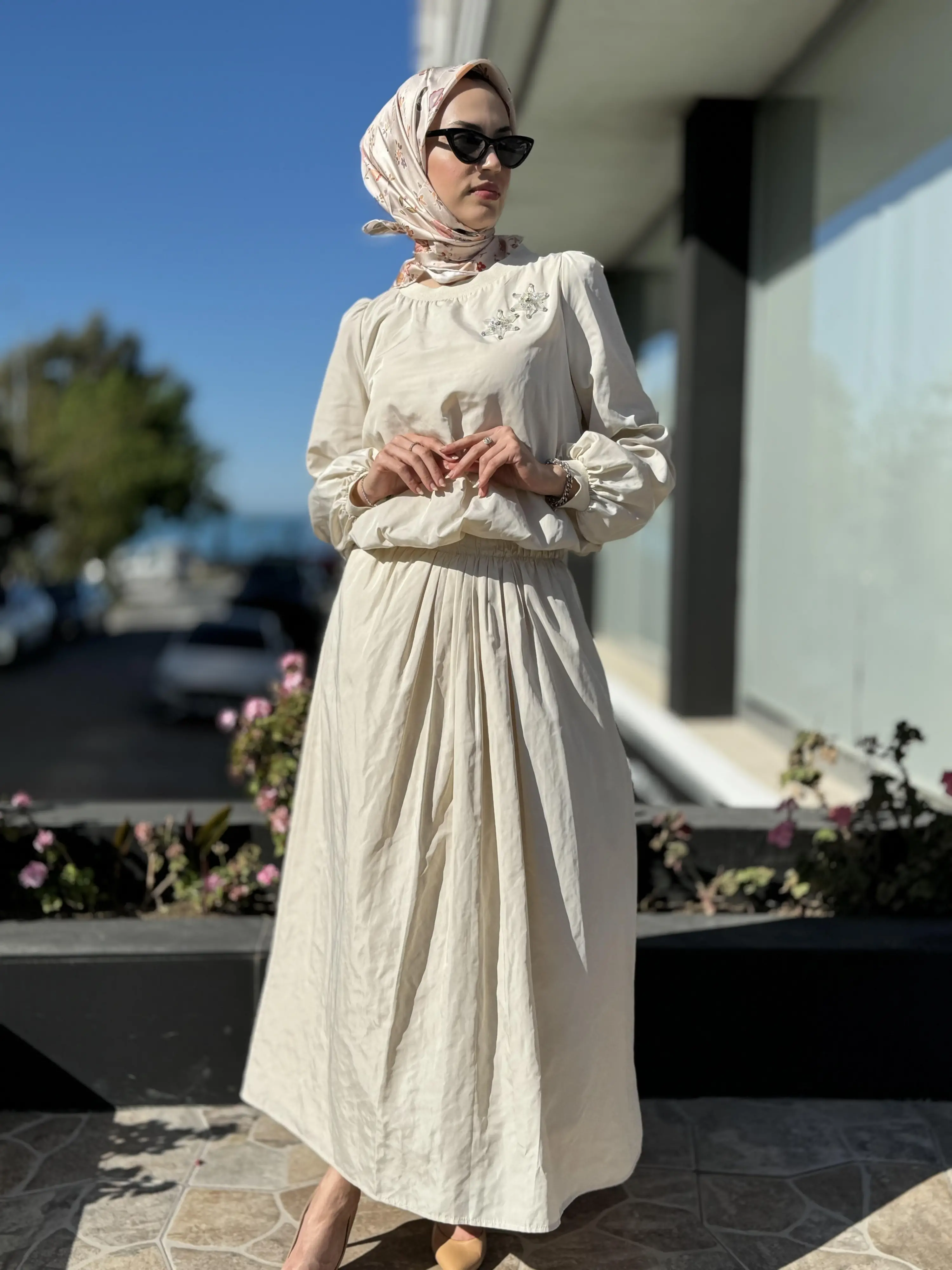 Qupra Paraşüt Kumaş Balon Bluz Etek Takım QAY62037