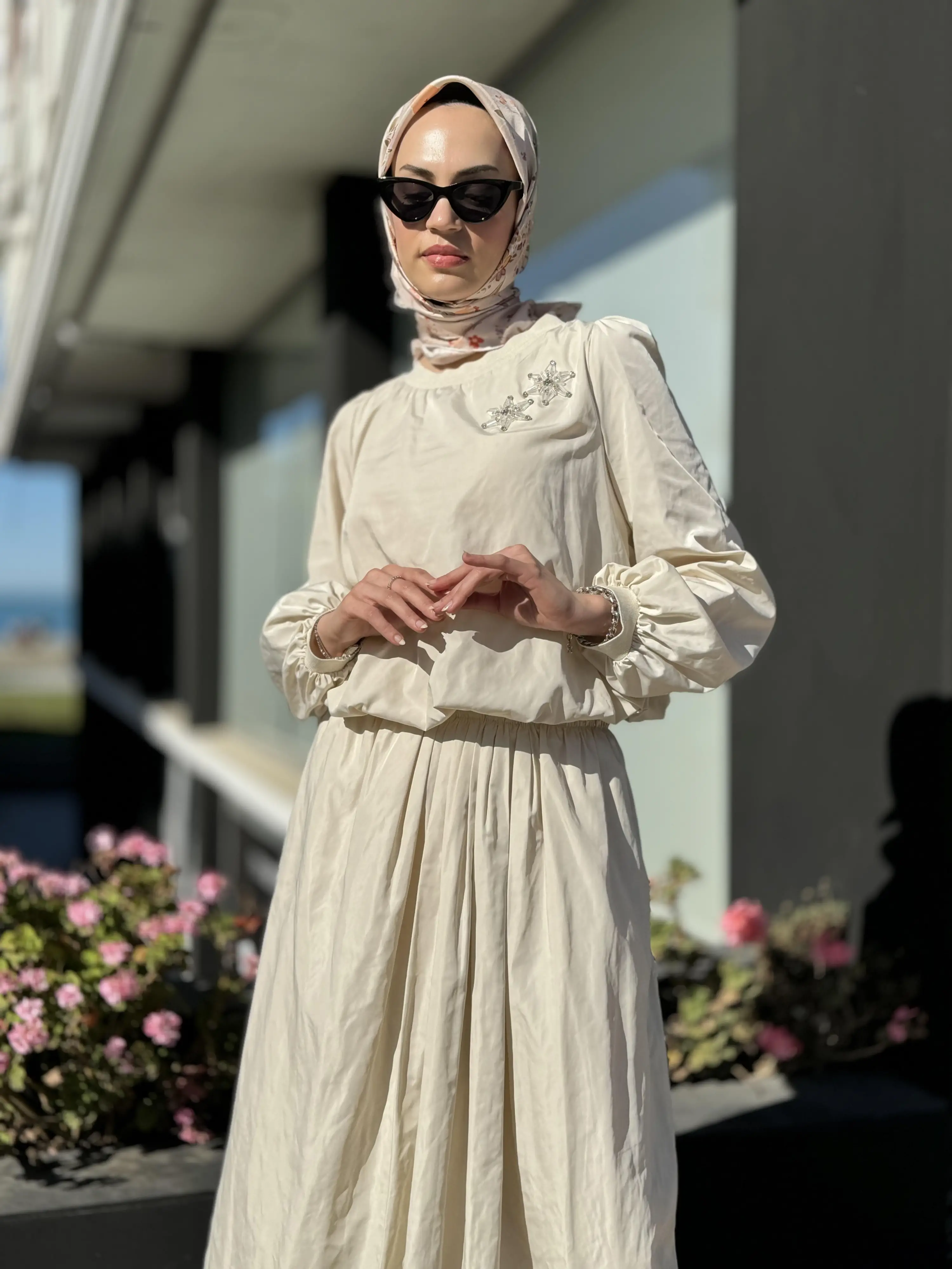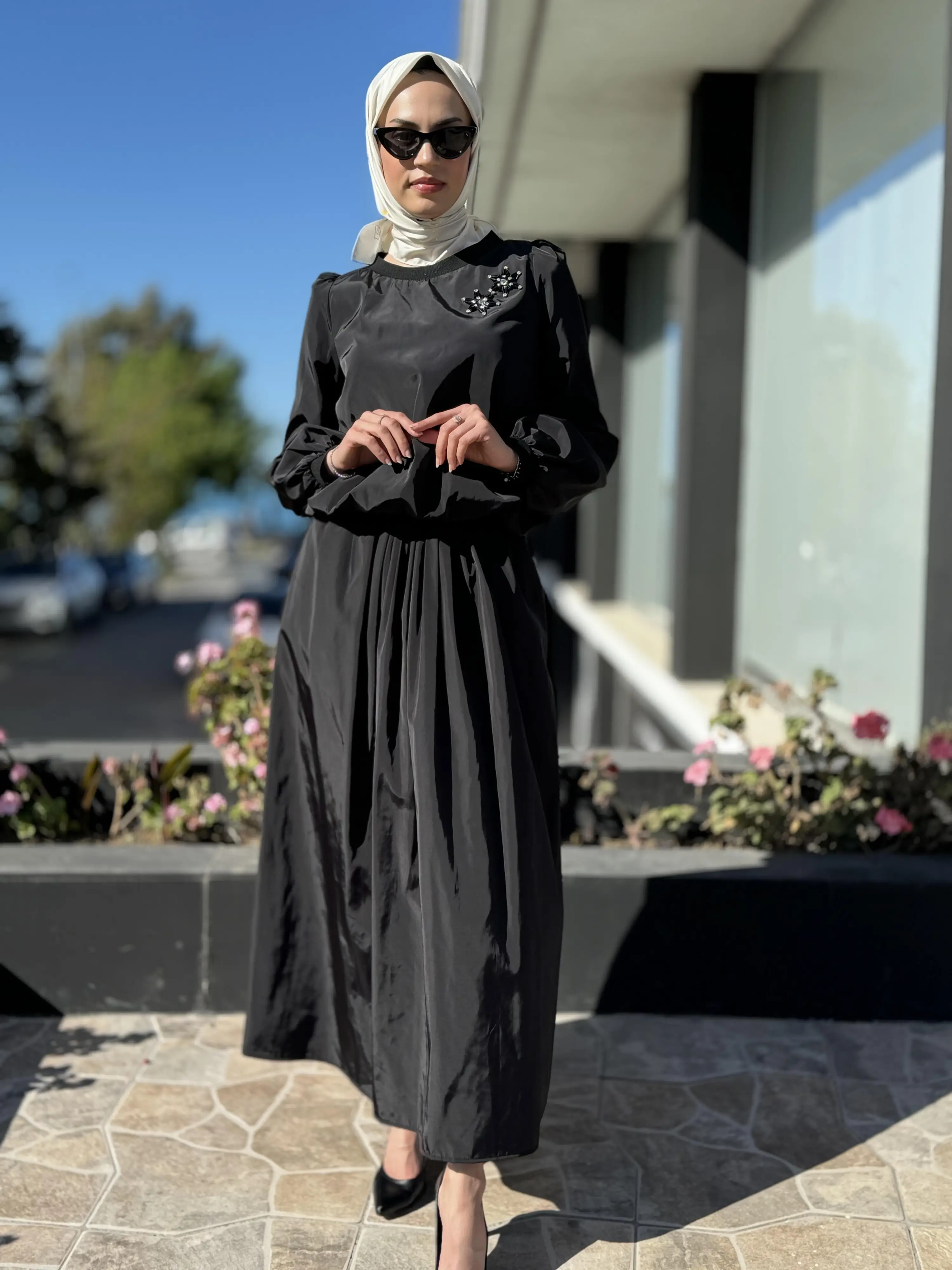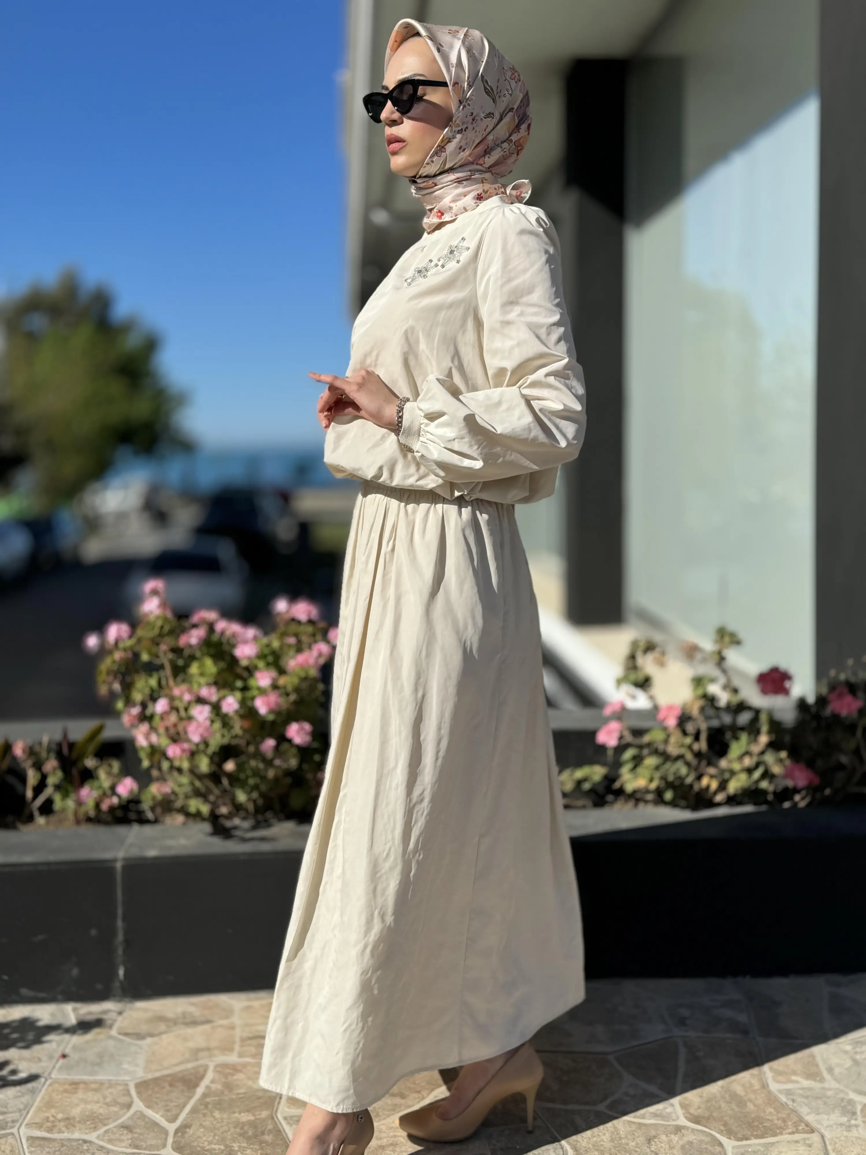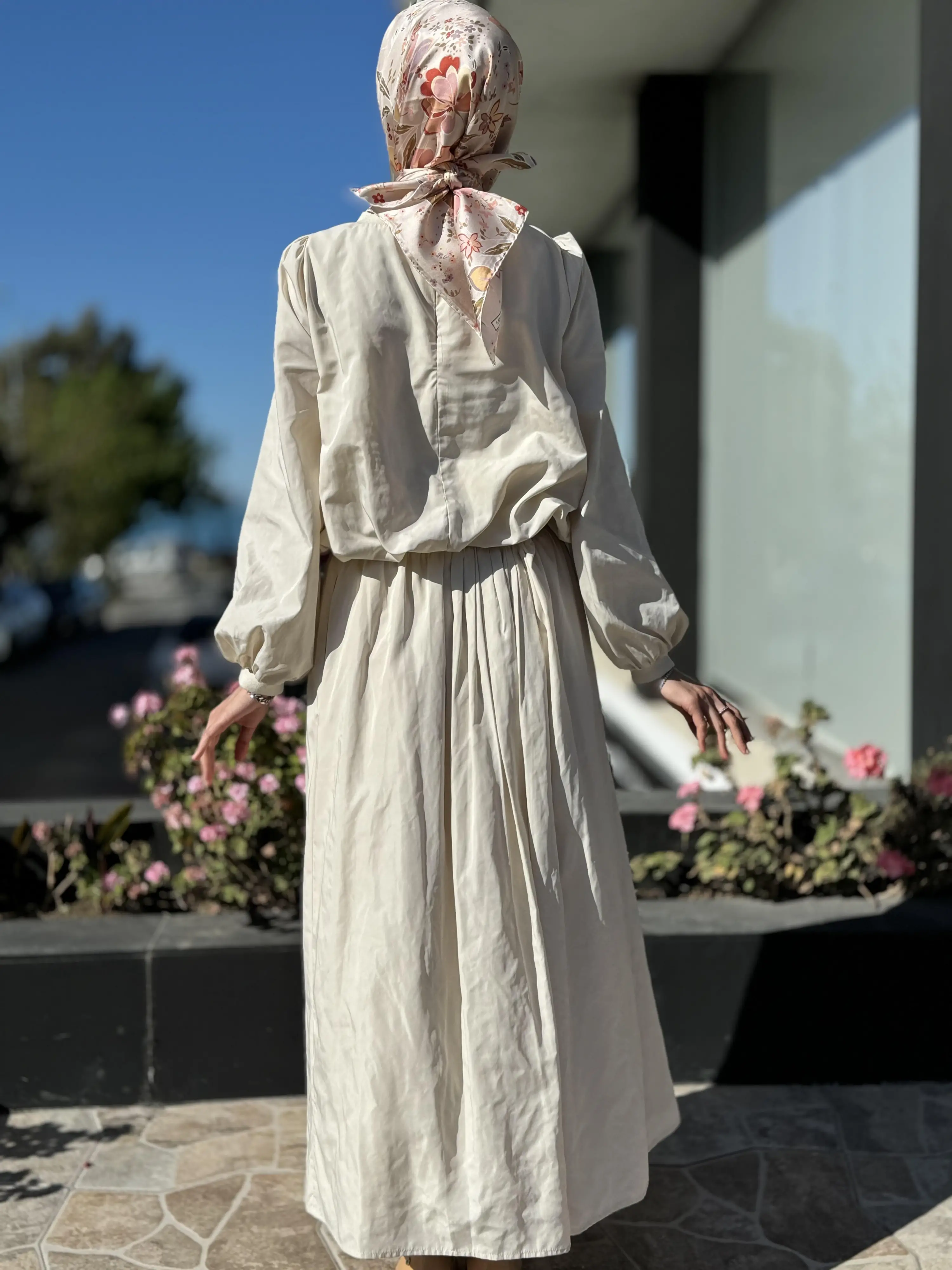 BLUZ KOL VE BEL KISMI LASTİKLİDİR. ETEK ASTARLIDIR.