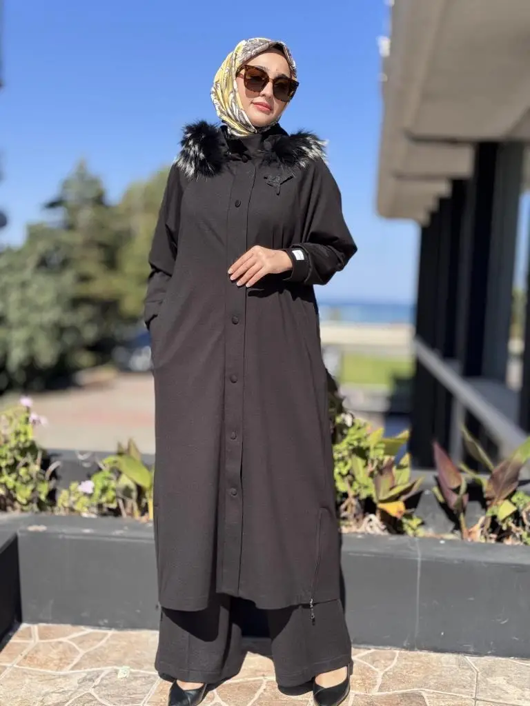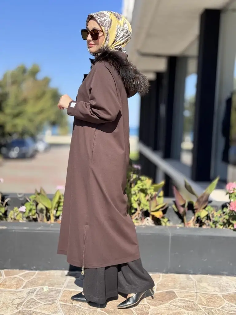 Qupra Seyyar Kürk Kapüşonlu Kap Pantolon Takım WAC92001