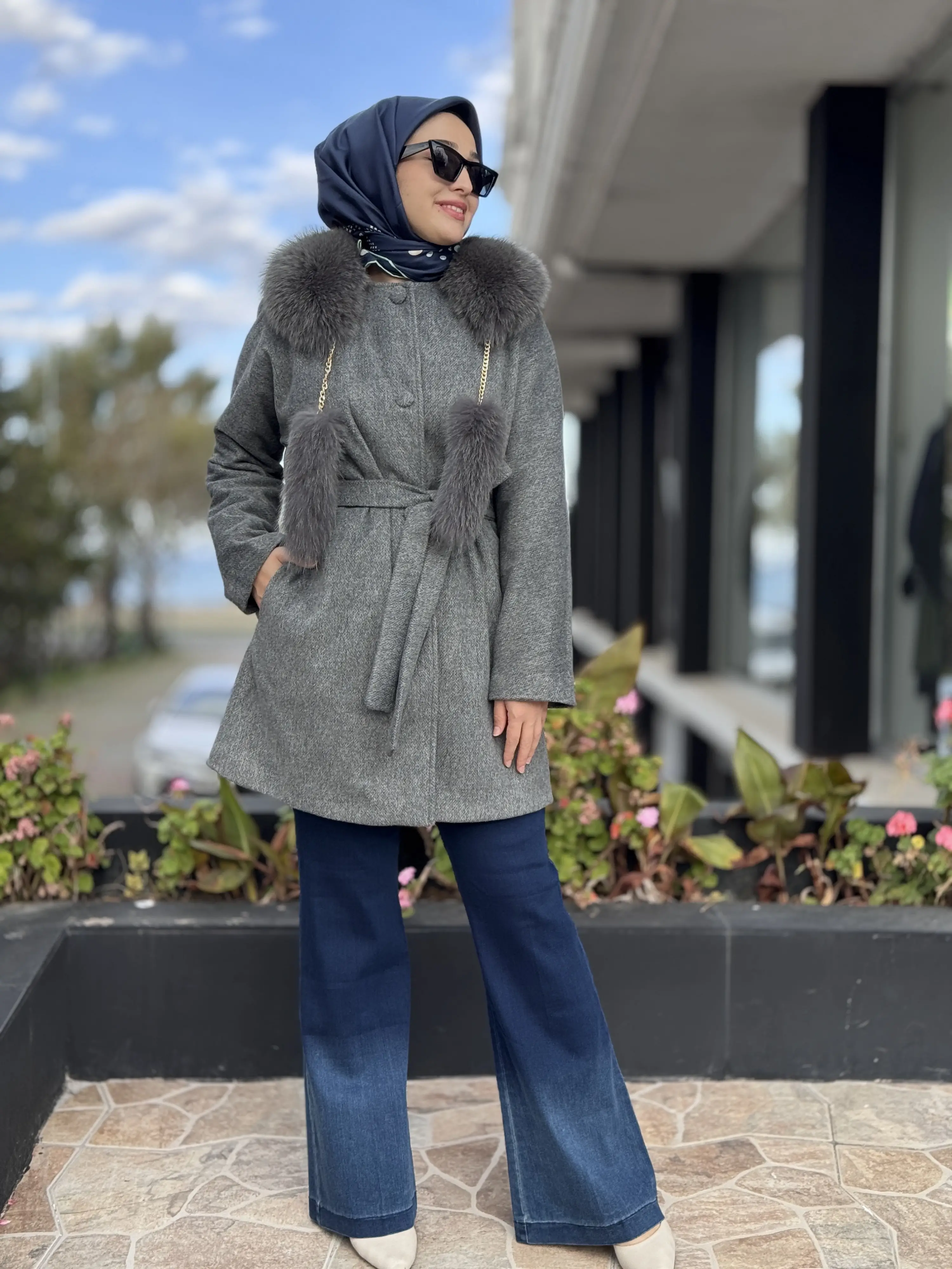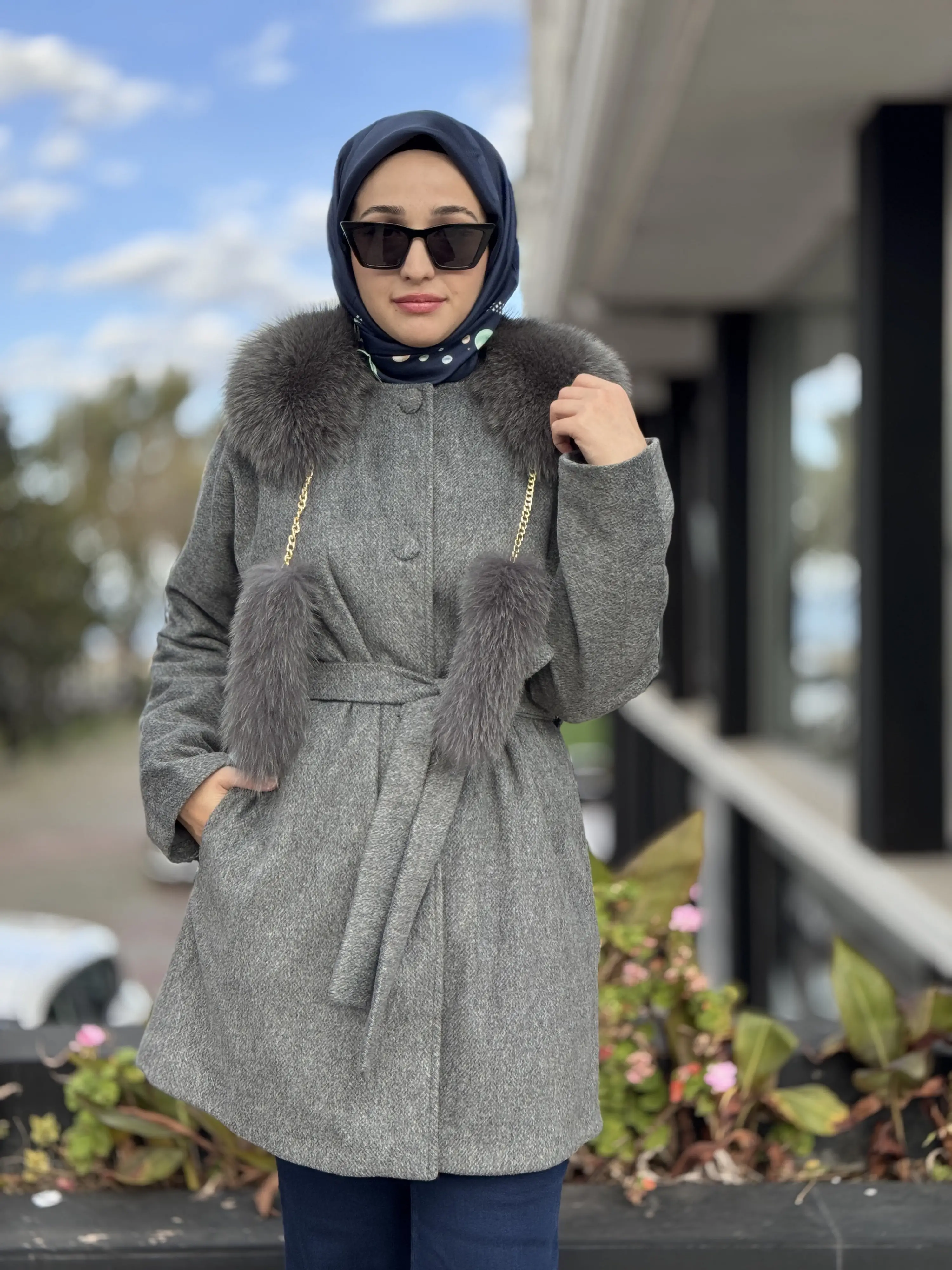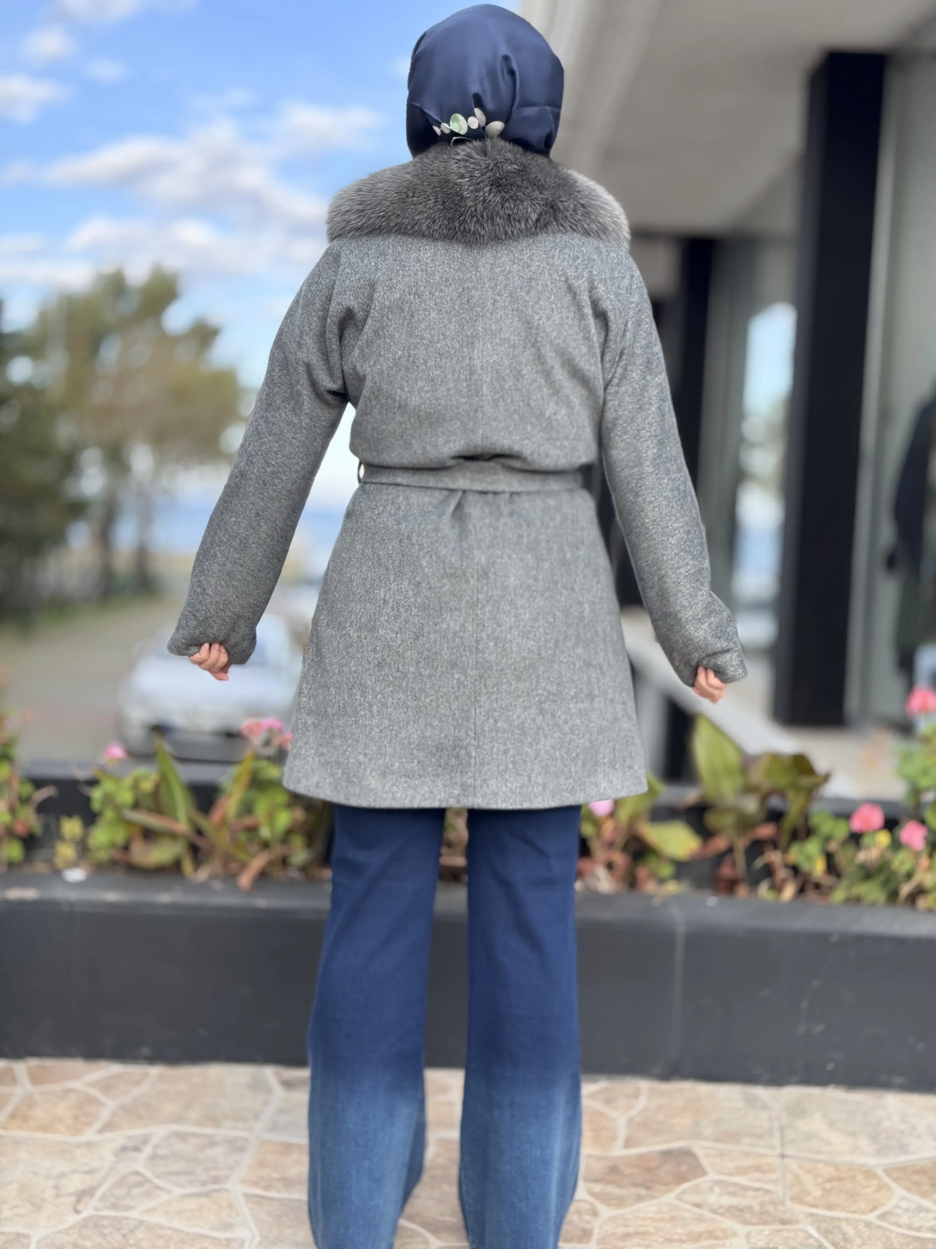 Qupra Seyyar Kürk Yakalı Kaşe Kaban WAC91010