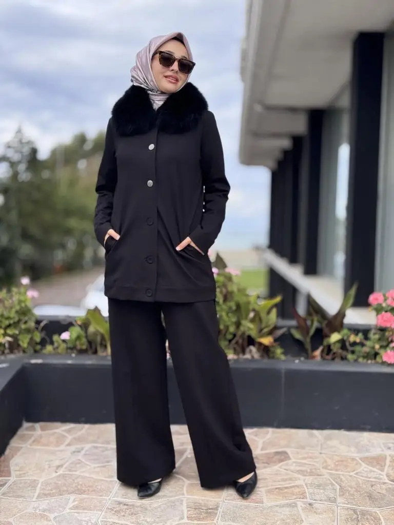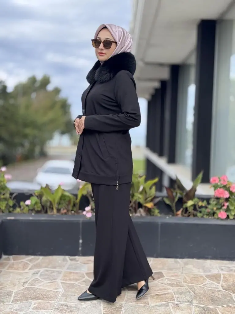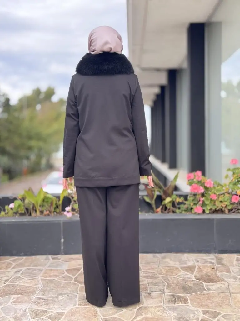 Qupra Seyyar Kürklü Metalik Düğmeli Kap Pantolon Takım WAC92003