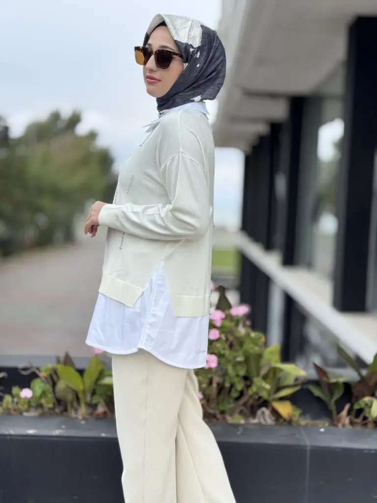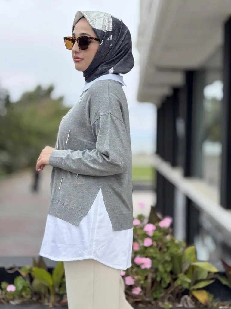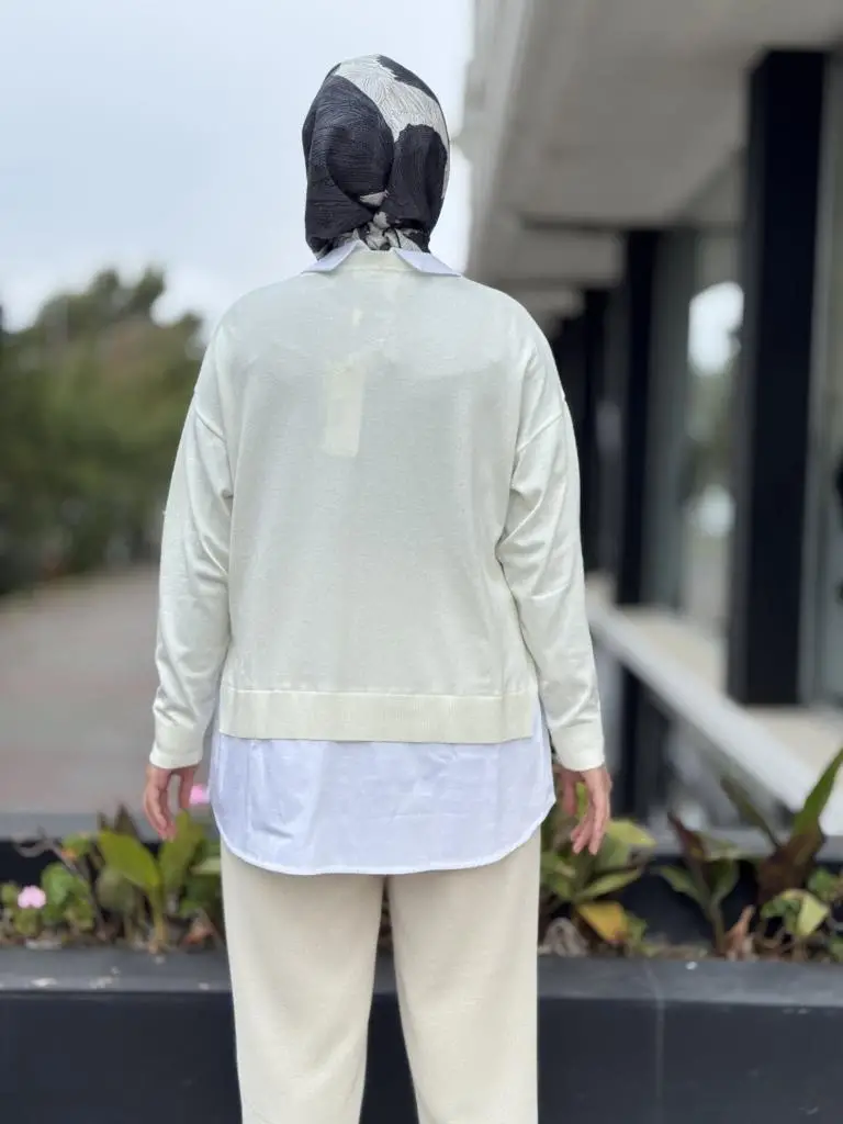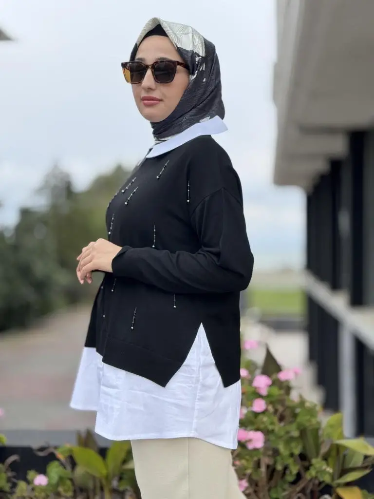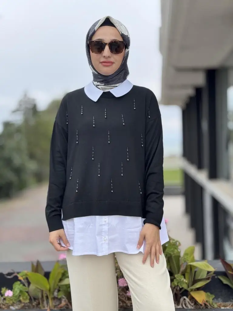 Tığ Triko Boncuk İşlemeli Gömlek Detaylı Tunik TNK21704